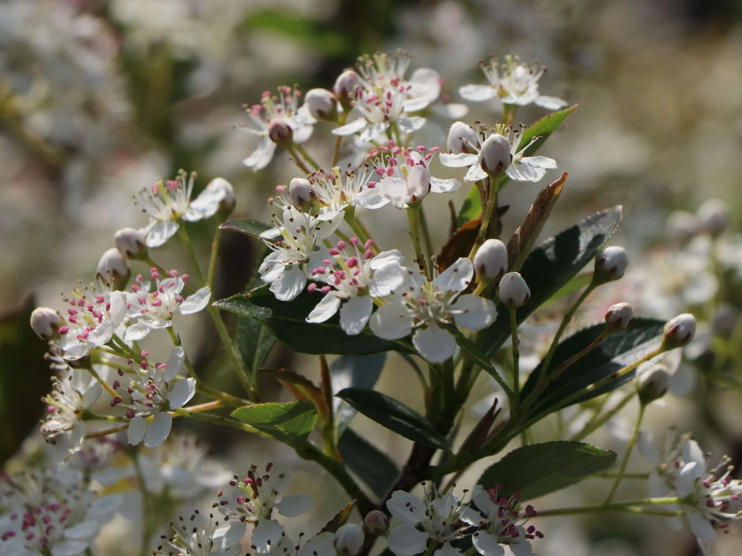 Die Apfelbeere (bot. Aronia) liefert ausgesprochen gesunde Früchte und verzaubert den Garten im Herbst mit ihrer sensationellen Laubfärbung. Zudem zeigt sie sich robust, widerstandsfähig, standorttolerant und absolut frosthart. Mehr Gründe sind nicht nötig, um diesem schönen Strauch einen sonnigen bis halbschattigen Platz auf normalem Gartenboden zu sichern. Aus der Familie der Rosengewächse stammend, ist die Apfelbeere ‚Hugin‘ ein kompakt wachsender Strauch. Die Pflanze erreicht eine Höhe zwischen 100 bis 130 Zentimetern. In der Breite misst sie circa 80 bis 110 Zentimeter. Sie gewinnt jährlich circa 15 bis 30 Zentimeter an Zuwachs. Die Apfelbeere ‚Hugin‘ dient als Flächenpflanze und erfreut während ihrer Blüte im Mai Bienen und Hummeln mit ihrem reichhaltigen Nahrungsangebot. Üppig erscheinen die wunderschönen weißen Blüten in dieser Zeit. Ab August folgen auf die zauberhafte Blütenpracht die auffallend schwarzen Früchte, die bis in den September hinein erscheinen. Die herbstlich rote Färbung der Blätter bildet einzigartige Kontraste zu den Beeren.