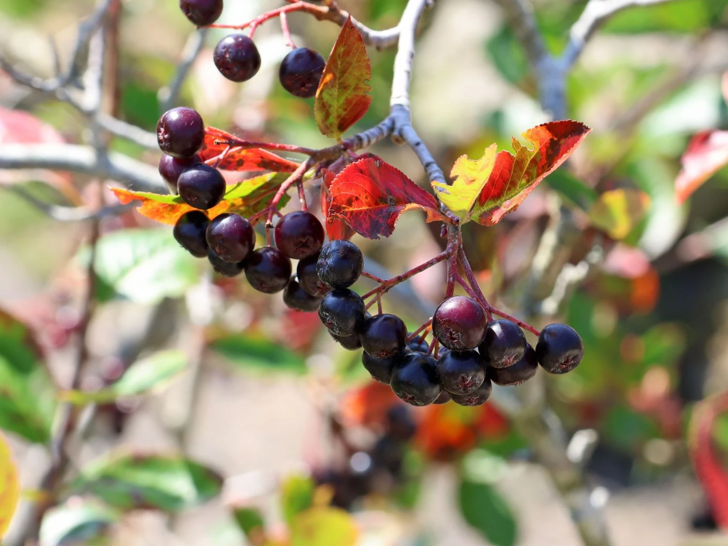 Aroniabeeren haben ihren Ursprung in Nordamerika. Die finnische Züchtung ‚Viking‘ stammt aus der wilden Aronia. Sie ist seit den 1970er Jahren bedeutungsvoll und mehr als ein Geheimtipp. Unter dem Namen Apfelbeere ‚Viking‘ hat sich die Pflanze als Zier- und Nutzgehölz einen festen Platz in heimischen Gärten erobert. Es bedarf keiner speziellen Böden, um die robuste und anpassungsfähige (bot.) Aronia melanocarpa ‚Viking‘ anzubauen. Der ideale Zeitpunkt zur Pflanzung, als einzeln stehender Strauch oder als Hecke, ist vom Frühjahr bis zum Spätherbst. Schon im zweiten Standjahr stellen sich erste Erträge ein. Ein winterlicher Auslichtungsschnitt des Strauches, ist alle drei bis vier Jahre zu empfehlen. Die winterlichen Frostperioden in mitteleuropäischen Gefilden überstehen die Pflanzen in den meisten Fällen ohne Schwierigkeiten. Auch aus diesem Grund punktet die Apfelbeere ‚Viking‘ mit einer einfachen gärtnerischen Handhabung. Eine Aroniapflanze bringt bis zu 25 Jahre regelmäßig gute Ernten. Im Mai, zur Blütezeit, zeigen die Aroniasträucher ihre weißen, kleinen Blüten in Doldenform, die der Weißdornblüte ähneln. Im Sommer reifen kugelige kleine Beeren an den Dolden heran. Zur Erntezeit, ab Ende August bis in den Oktober hinein, erfreuen Aroniabeeren mit ihrer intensiven schwarz-violetten Färbung das Auge. Neben der herbstlichen Beerenpracht geht das Laubkleid vom satten Sommergrün in herrlich leuchtendes Rot über. Mit diesem Farbenspiel lässt sich der berühmte Indian Summer vor der eigenen Haustür erleben.