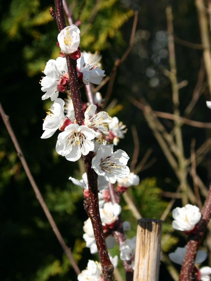 In sonnigem Orangegelb leuchten die Früchte aus dem dichten Laub hervor und laden mit ihrer weichen Schale zum Hineinbeißen ein. Ihr Fruchtfleisch ist fest und wunderbar saftig. Mit ihrem charakteristischen, aromatisch süßen Geschmack erinnern die Früchte an sonnige Urlaubstage in südlichen Ländern. Die Aprikose ‚Temporao de Villa Franca‘ stammt aus Portugal und begeistert den Gartenbesitzer mit ihrer reichen Ernte. Mit ihrer lieblichen Blüte, dem dekorativen Laub und den wunderschönen Früchten, ist sie eine Augenweide im Garten. Aprikose ‚Temporao de Villa Franca‘ wächst stark und aufrecht, ihr jährlicher Zuwachs beträgt 30 bis 50 Zentimeter. Sie erreicht eine Höhe zwischen 300 und 450 Zentimetern und eine maximale Breite von 350 Zentimetern. Von März bis April ist sie mit dichten Blütendolden übersät. Die kleinen Einzelblüten sind von einem zarten, lichten Rosa überhaucht. Bienen, Hummeln und andere Insekten besuchen sie zur Nahrungsaufnahme. Im Laufe des Frühsommers entwickelt die Aprikose ‚Temporao de Villa Franca‘ ihre köstlichen Früchte. Sie sind mittelgroß, oval bis rund geformt und besitzen eine weiche, feinsamtige Hülle. Ihr leuchtendes Orangegelb ist teilweise leicht gerötet. Aus dem festen Fruchtfleisch lässt sich der Stein leicht lösen. Prunus armeniaca ‚Temporao de Villa Franca‘ zeichnet sich durch rundliche, frischgrüne Laubblätter mit gesägtem Rand aus. Im Herbst nehmen sie einen goldgelben bis bräunlichen Farbton an. Die Erntezeit der Aprikose ‚Temporao de Villa Franca‘ reicht von Mitte bis Ende Juli. Direkt vom Baum gepflückt, sind ihre Früchte ein unvergleichlicher Genuss. Ihr süßes Fruchtfleisch zergeht auf der Zunge und belebt die Sinne mit dem köstlichen Saft. Die Aprikosen schmecken herrlich und sind gesund. Zu ihren Inhaltsstoffen gehören wertvolle Vitamine und Mineralstoffe.