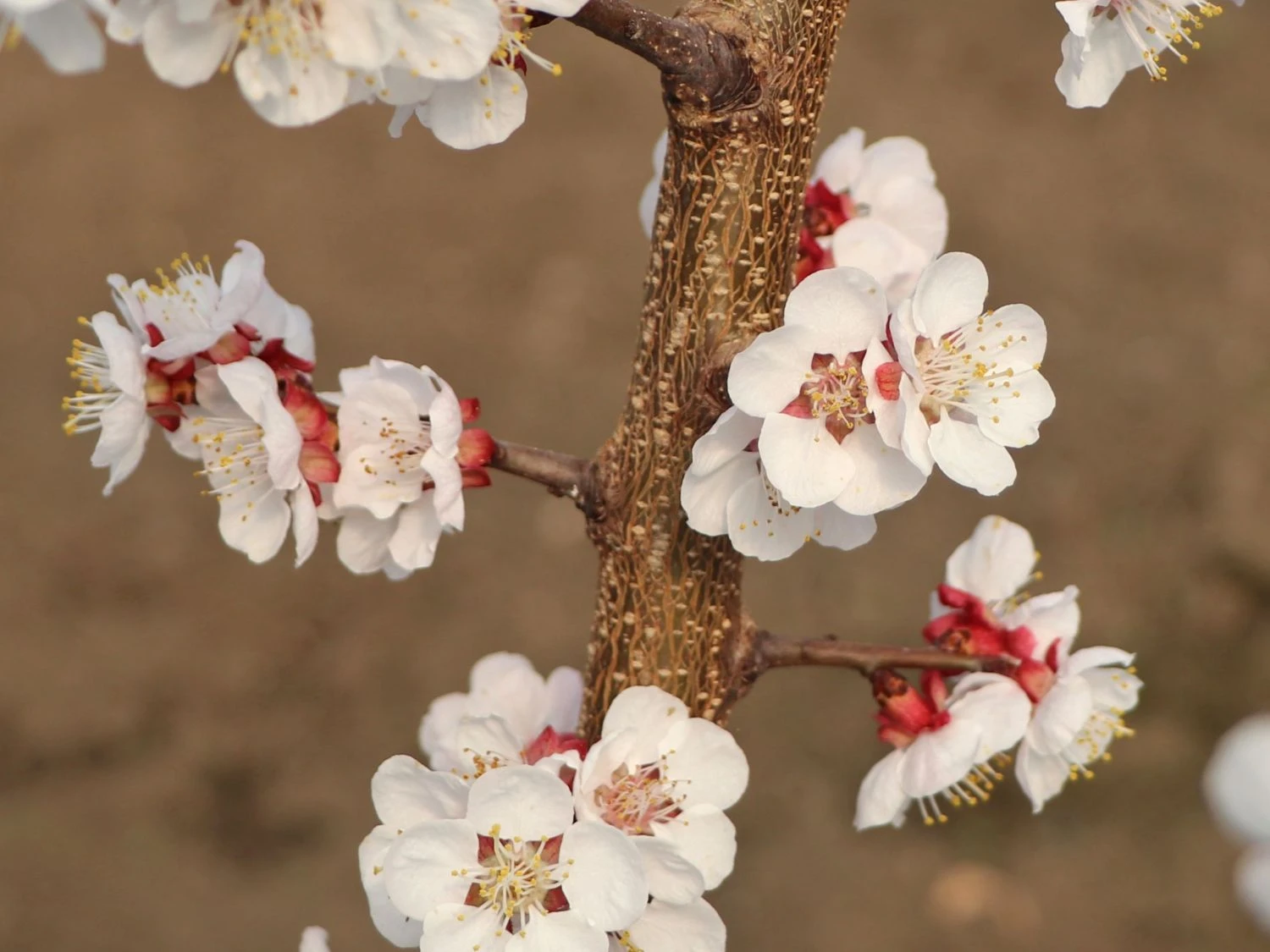 Die Aprikose in Zwergform ist die kleine Schwester der bekannten Aprikosenbäume. Der Vorteil der Zwergform liegt ganz klar auf der Hand: Alle guten Eigenschaften von (bot.) Prunus armeniaca (Zwergform) sind wie bei den großen Vertretern vorhanden – nur auf Miniformat. Die gelben Früchte der Aprikose (Zwergform) sind mittelgroß und herrlich saftig. Die runden Vitaminbomben der Zwergaprikose sind süß im Geschmack und eignen sich sowohl für den direkten Verzehr als auch für die Weiterverarbeitung in der Küche. Aus den Früchten entstehen köstliche Gelees, Marmeladen, Säfte, Liköre oder auch Desserts und Kuchen. Die Aprikose (Zwergform) ist auch als Marille oder als Malete bekannt. Die Gattung Prunus zählt zur Familie der Rosengewächse (Rosaceae). Die Zwergaprikose wächst zu einem kleinen Baum mit einer breiten und dichten Krone heran und wirkt optisch wie ein Strauch. Der Stamm hat eine glänzende, rötlich-braune bis dunkelbraune Rinde. Die jungen Triebe sind grün oder rot in der Farbe. Sie nehmen erst ab dem zweiten Jahr die Rindenfarbe in dunkelbraun an. Die herzförmigen Blätter von Prunus armeniaca (Zwergform) sind gestielt und zugespitzt. Sie erreichen eine Länge von 5-10 cm und eine Breite von 2-7 cm. Besonders schön ist der doppelt gesägte Blattrand. Die zwittrigen Blüten sind fünfzählig und erscheinen im zeitigen Frühjahr bereits vor dem Blattaustrieb. Der flaumig behaarte Blütenstiel ist rund 5 mm lang und zumeist rötlich gefärbt. Die schalenförmigen Blüten haben weiß bis rosarot gefärbte Kelchblätter mit innenliegend gelben Staubbeuteln. Dieses zauberhafte Blütenfest findet in der Zeit von Ende März bis April statt.