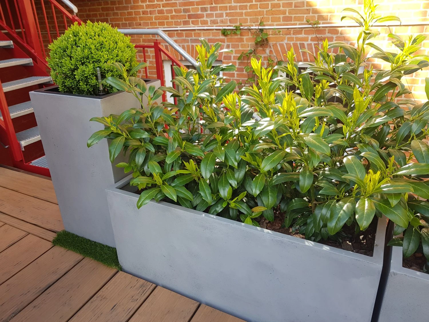 Halbhohe Kirschlorbeer-Hecken lassen sich hervorragend für die Abtrennung von unterschiedlichen Gartenbereichen verwenden. Als natürlicher Sichtschutz ist eine Höhe von mindestens 1,80 Meter notwendig. Der Einsatz von verschiedenen Heckenarten in einem Garten kann spannend wirken. Der Einsatz unterschiedlicher Blattfarben wird oftmals als besonders reizvoll empfunden. Die Kombination von immergrünem Kirschlorbeer wie dem außergewöhnlichen ‚Herbergii‘ mit laubabwerfenden Hecken bietet im Herbst ein besonders abwechslungsreiches Bild. Ebenfalls verleiht eine intelligente Heckengestaltung Gärten mehr Weite und gibt größeren Grünanlagen eine ästhetische Struktur.