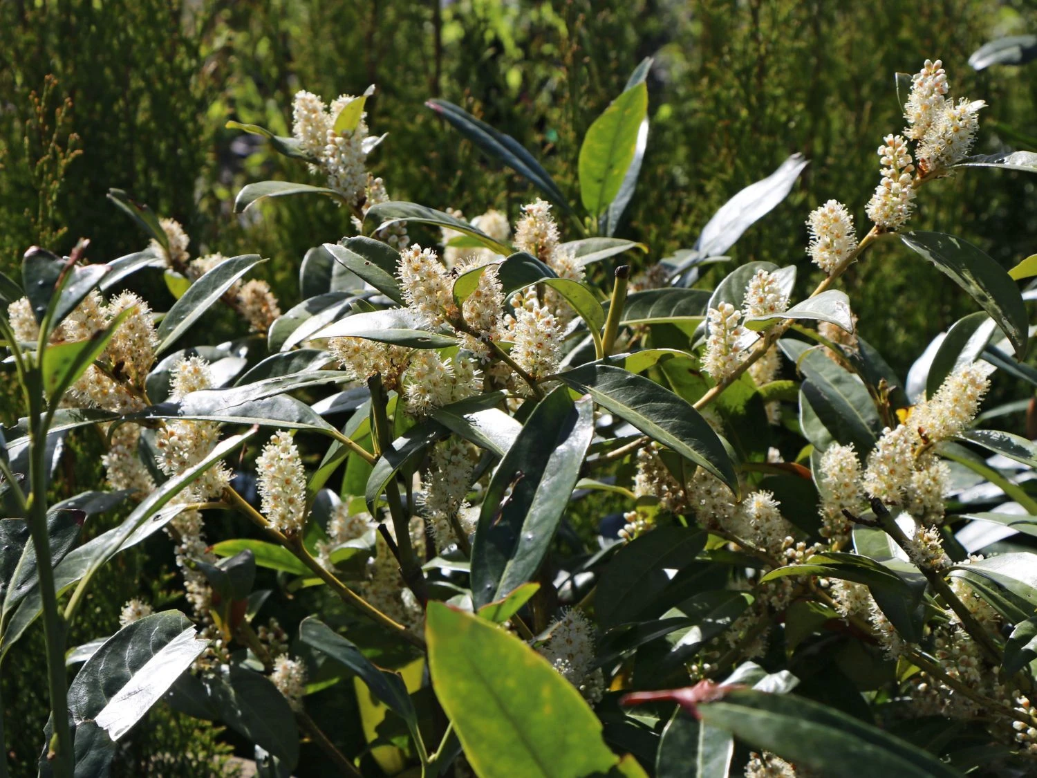 An waldreichen, schattigen Standorten sowie im Zusammenspiel mit Bodendeckern, Rhododendron Sträuchern, Azaleen und Nadelhölzern fügt sich der Kirschlorbeer ‚Herbergii‘ harmonisch ins natürliche Grün ein. Seine feingliedrigen, weißen Blüten korrespondieren gut zu Maiglöckchen oder Herzblattlilien. Auch an sonnigen Standorten fühlt der Kirschlorbeer ‚Herbergii‘ wohl, doch Staunässe sollte vermieden werden. Zwar zeichnet sich der Kirschlorbeer ‚Herbergii‘ durch eine hohe Kälteverträglichkeit aus. Für einen umfassenden Schutz bei langen und intensiven Frostperioden empfiehlt es sich jedoch, einen windgeschützten Standort zu wählen.