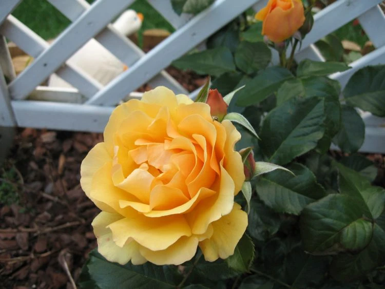 Auch als Schnittrose ist sie hervorragend geeignet und bildet im Haus einen wahren Blickfang. In sommerlichen Sträußen und frischen Bouquets bilden ihre leuchtend gelben Blüten einen herrlichen Mittelpunkt. Durch ihre Blütezeit von Juli bis September schenkt die öfterblühende Rosa ‚Amber Queen‘ ® lange Freude. Stetig entfalten sich die gefüllten Blütenwunder in ihrer prächtigen Farben! An einem sonnigen Standort zeigt sich die Beetrose ‚Amber Queen‘ ® blühfreudig und gedeiht hervorragend. Halbschatten toleriert sie, schenkt dem Gärtner hier weniger Blüten und ist zudem krankheitsanfälliger. Spielend verträgt sie große Hitze und ihre Blüten kommen mit einem Regenguss gut zurecht. Der Rosenfreund achtet bei der Wahl des Standorts darauf, dass die Beetrose ‚Amber Queen‘ ® vom Winde umweht steht. So trocknen ihre schönen Blätter nach dem Regen und streifen den Morgentau rasch ab. Das Blattkleid zeigt sich dadurch gesund und hat weniger mit Pilzen zu kämpfen. Zwar ist die Beetrose ‚Amber Queen‘ ® ausreichend winterhart, doch der Gärtner sorgt vor. Einen raschen Neuaustrieb im Frühjahr unterstützt er mit einem Schutz vor Frost. Der Rosenfreund bedeckt die Veredelungsstelle der Rose sowie den untersten Zweigbereich circa 15 bis 20 Zentimeter hoch mit Erde oder Gartenkompost. Nach den letzten Frösten, entfernt er die aufgehäufte Erde wieder. Die Beetrose dankt diese schützenden Maßnahme im nächsten Sommer mit einer fantastischen Blüte. Um der Pflanze zu ermöglichen, sich auf den Winter vorzubereiten, ist es wichtig ab August nicht mehr zu düngen. Im Frühjahr gibt der Gärtner der Pflanze gerne etwas Rosendünger, um ihr den neuen Austrieb zu erleichtern. Die Beetrose ‚Amber Queen‘ ® ist ein Tiefwurzler und und macht häufiges Gießen überflüssig.
