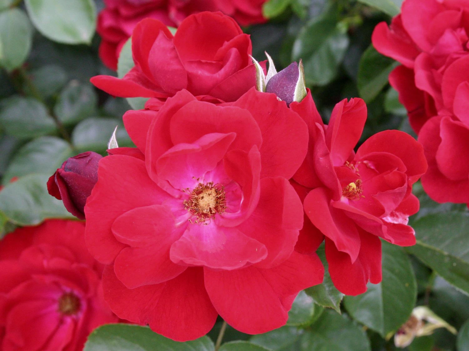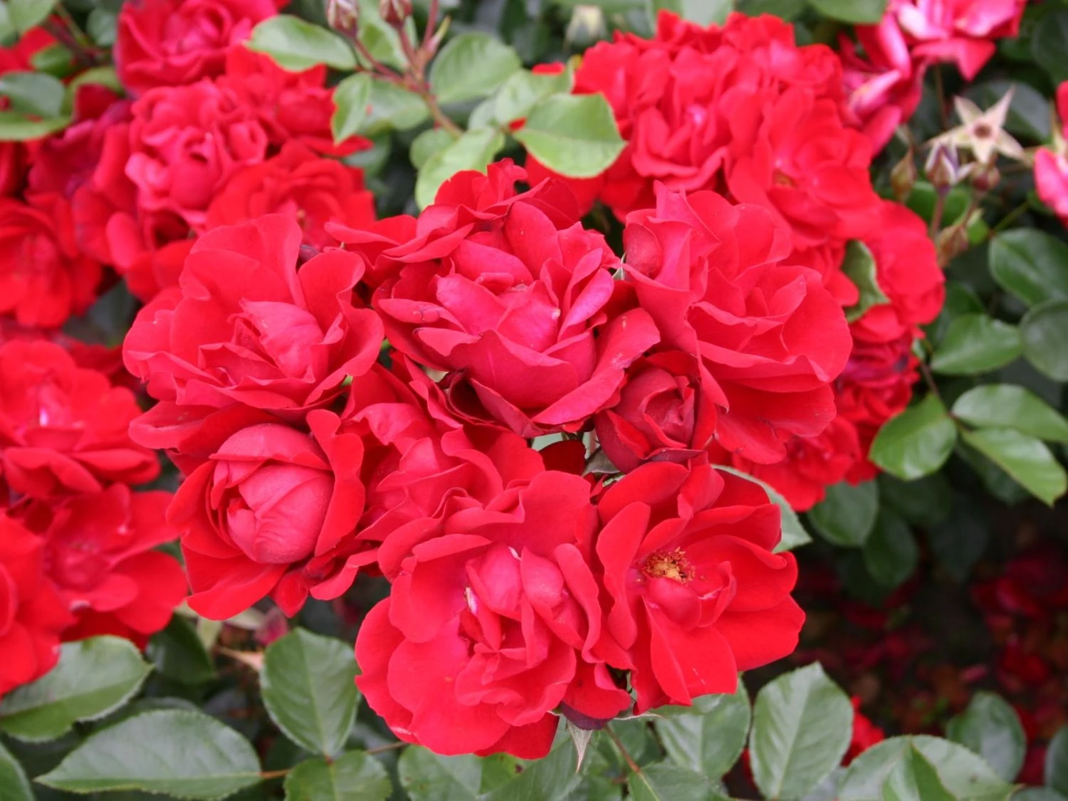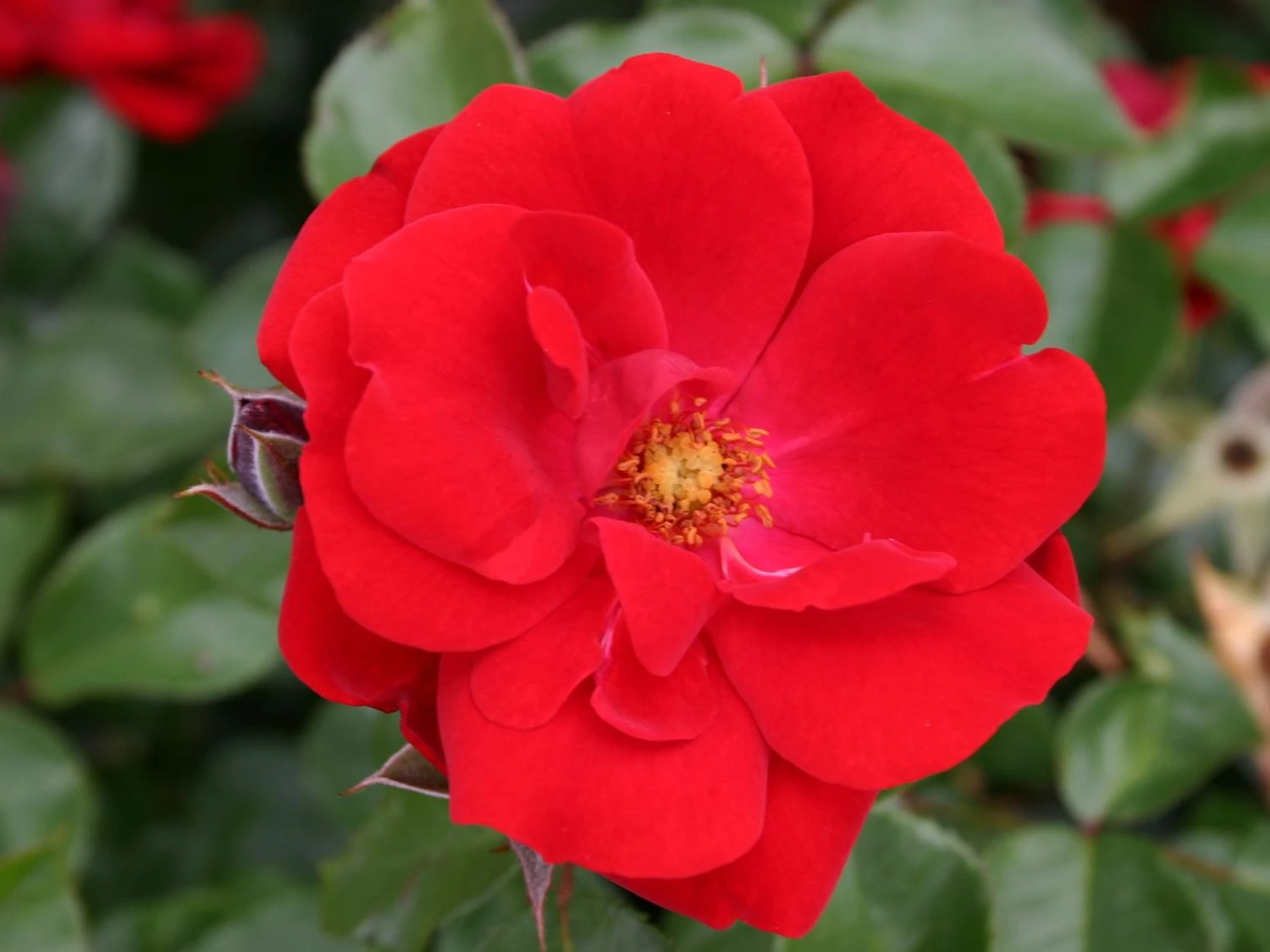 Die Beetrose ‚Andalusien‘ ® ist mit ihren blutroten Blüten ein Schmuckstück in jedem Garten. (Bot.) Rosa ‚Andalusien‘ ® verkörpert mit ihrer Leuchtkraft die Pracht und Eleganz andalusischer Gärten. Sie stammt aus dem renommierten Hause W. Kordes‘ Söhne und ist seit 1977 auf dem Markt. Diese Beetrose ist mit ihren samtigen Blüten ein Highlight in jedem Rosengarten. Die Beetrose ‚Andalusien‘ ® begeistert mit ihren bis zu zehn Zentimeter großen halbgefüllten Rosen jeden Betrachter. Die Blütezeit ist äußerst lang und dauert von Mai bis in den Oktober. Mit einer Wuchshöhe von rund 60 Zentimetern und einer Breite von bis zu 50 Zentimetern fügt sich diese Sorte perfekt in Beete und Rabatten ein. Die Beetrose wächst kompakt und aufrecht. Sie schmückt naturnahe Bauerngärten genauso wie moderne Stadtgärten. Traumhaft schön sieht die Pflanze im Kübel aus und verschönert Balkon oder Terrasse. Auch als Hecke oder in öffentlichen Grünanlagen ist sie die erste Wahl. Die blutroten Blüten sind halb gefüllt und werden im Durchmesser bis zu zehn Zentimeter groß. Die Blüten stehen in Büscheln und heben sich von den dunkelgrünen Laubblättern markant ab.