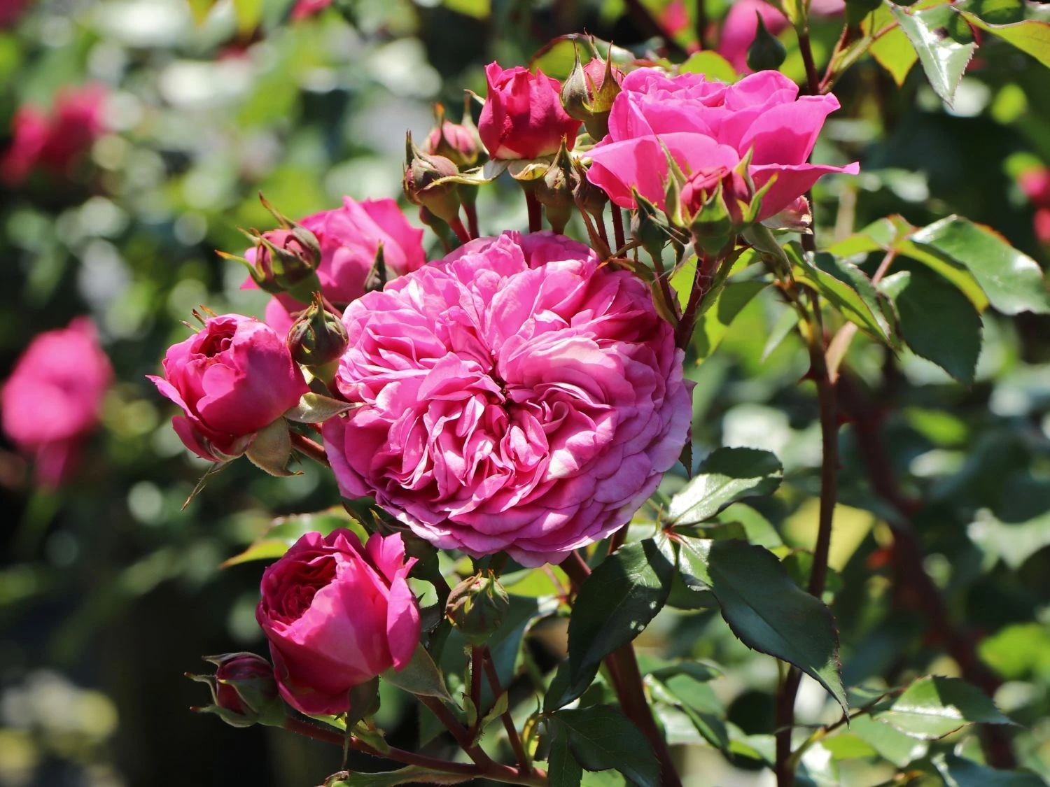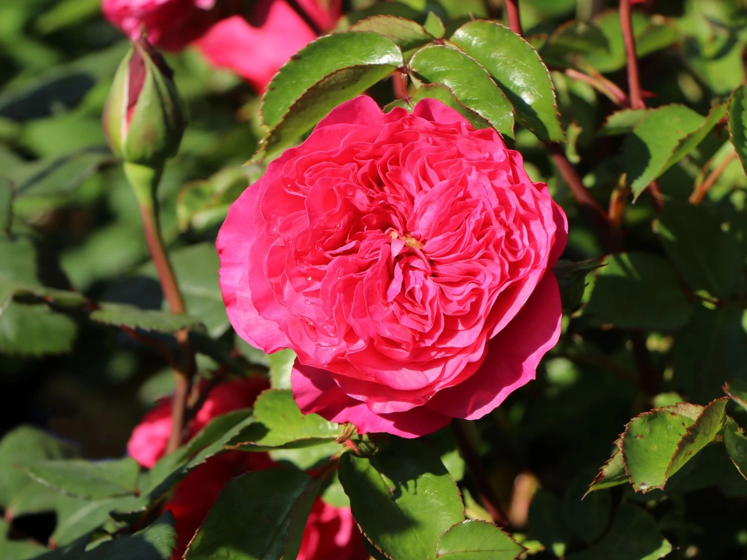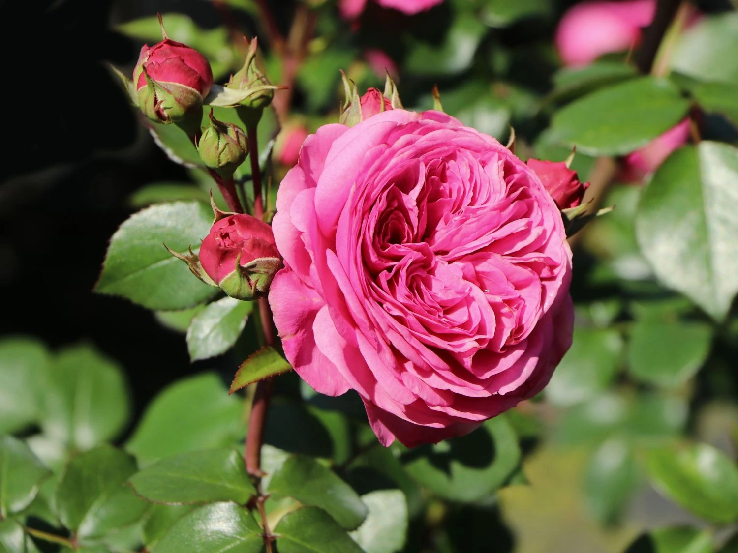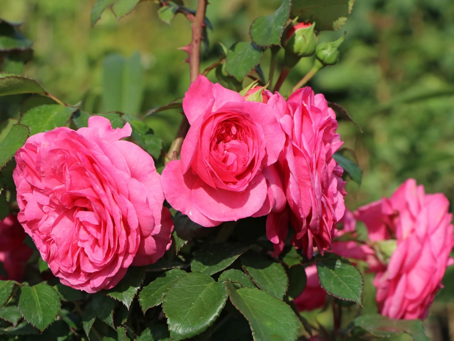 Die Beetrose ‚Baronesse‘ ® besticht mit ihrem prächtigen Flor und der langen Blütezeit. Ihren Namen verdankt sie den nostalgisch anmutenden, edel geformten Blüten, die sehr stark und rosettenartig gefüllt sind. In ihrem kräftigen Magentapink entfalten die Blüten eine einzigartige Leuchtkraft und sind im Garten weithin sichtbar. Von Juni bis Oktober bildet die öfterblühende Beetrose immer wieder neue Knospen. Die schalenförmigen Blüten erscheinen in üppigen Dolden. Ein weiterer Pluspunkt von (bot.) Rosa ‚Baronesse‘ ® ist ihre ausgezeichnete Blattgesundheit. Sie verfügt über gefiedertes Laub mit gesägtem Blattrand. Mit ihrem glänzenden Dunkelgrün bilden die Blätter einen fabelhaften Kontrast zu der leuchtenden Blütenfarbe. Die Beetrose ‚Baronesse‘ ® zeichnet sich durch ihren aufrechten, buschigen und kompakten Wuchs aus. Sie erreicht eine Höhe von 50 bis 80 cm. Ihre Breite beträgt 35 bis 40 cm. Die Sorte stammt von dem renommierten Rosenzüchter Tantau und kam im Jahr 2009 auf den Markt. Sie erhielt bereits mehrere Auszeichnungen. Dazu zählt aus dem Jahr 2011 die Goldmedaille in Rom sowie im gleichen Jahr die Rosa de la Gent Gran in Barcelona.