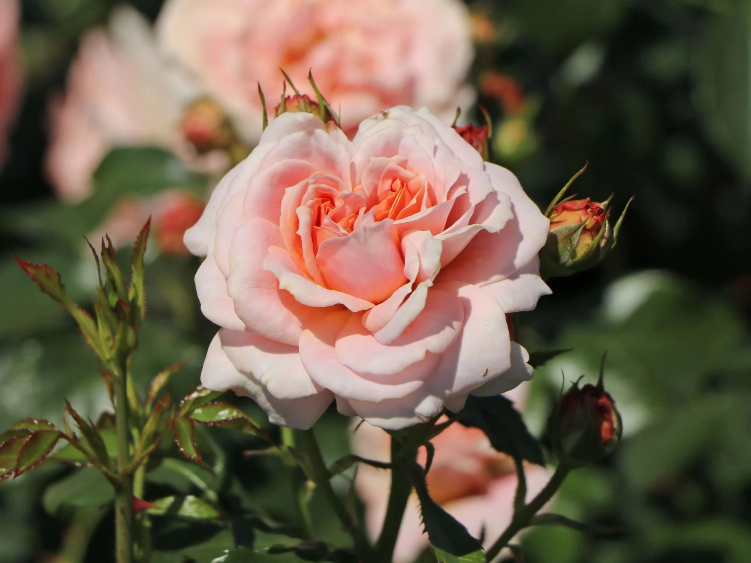 Die Beetrose ‚Cremosa‘ ® besitzt pastell-rosa Blütenstände, die der Rose einen lieblichen Charme verleihen, der die Seele mit Freude erfüllt. Auch in größeren Gruppen bewahren sich diese eleganten Schönheiten eine vornehme Zurückhaltung. Die Pflanzen werden 70 Zentimeter hoch und erreichen eine Breite von 40 Zentimetern. Buschige Zweige mit glänzenden dunkelgrünen Blättern schaffen den perfekten Hintergrund für die sanfte Aura der Blüten. Bereits im Jahr 2016 hat Rosa ‚Cremosa‘ ® ADR-Rose den begehrten Status als ADR-Rose (Anerkannte deutsche Rose) erhalten. Seit 2018 ist die reizvolle Pflanze im Handel erhältlich. Bei der flächigen Bepflanzung genügen vier bis fünf Exemplare pro Quadratmeter, um das Beet mithilfe der Rosen in ein malerisches Blütenmeer zu verwandeln und zugleich den Boden durchgängig zu beschatten. Das ist im Sommer ein großer Vorteil. Wasser verdunstet auf beschattetem Boden nicht so schnell und der Aufwand beim Gießen sinkt deutlich. Der erste Blütenflor der Beetrose ‚Cremosa‘ ® ist ungewöhnlich reichhaltig, danach blühen die Blumen fortlaufend bis in den Herbst hinein. Sonnige Rosenbeete, über die hin und wieder ein kühlendes Lüftchen weht, sind als Standort für die attraktiven Blumen des Züchtern W. Kordes‘ Söhne ideal.