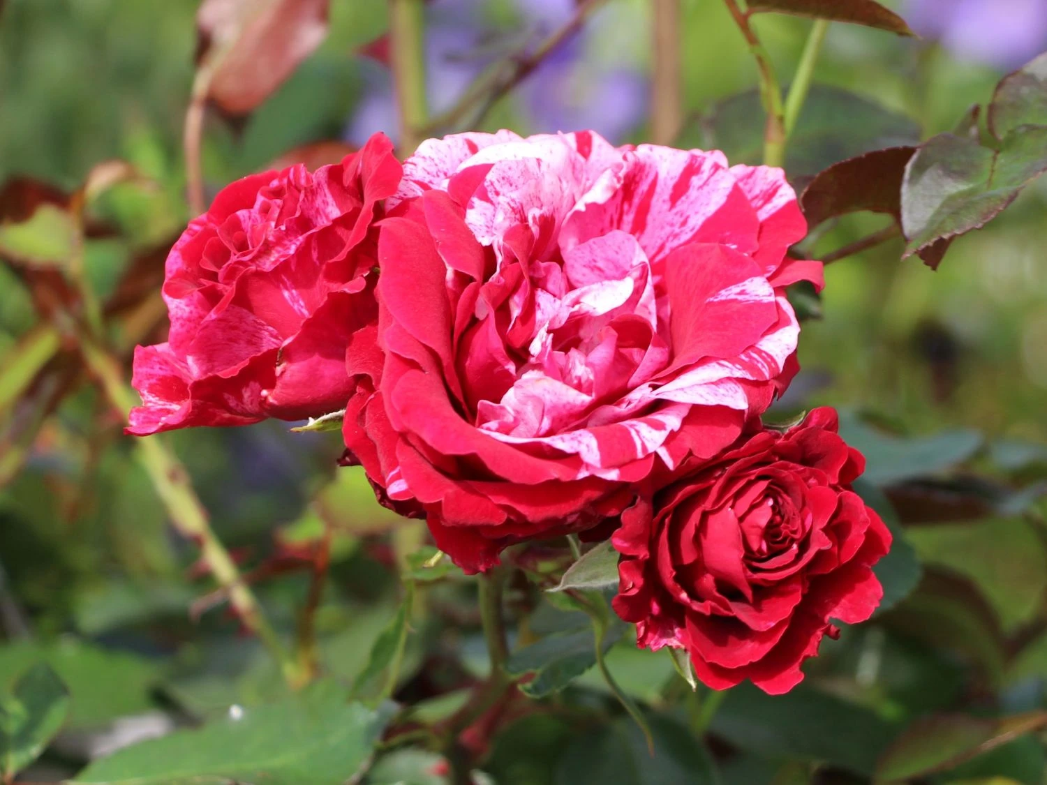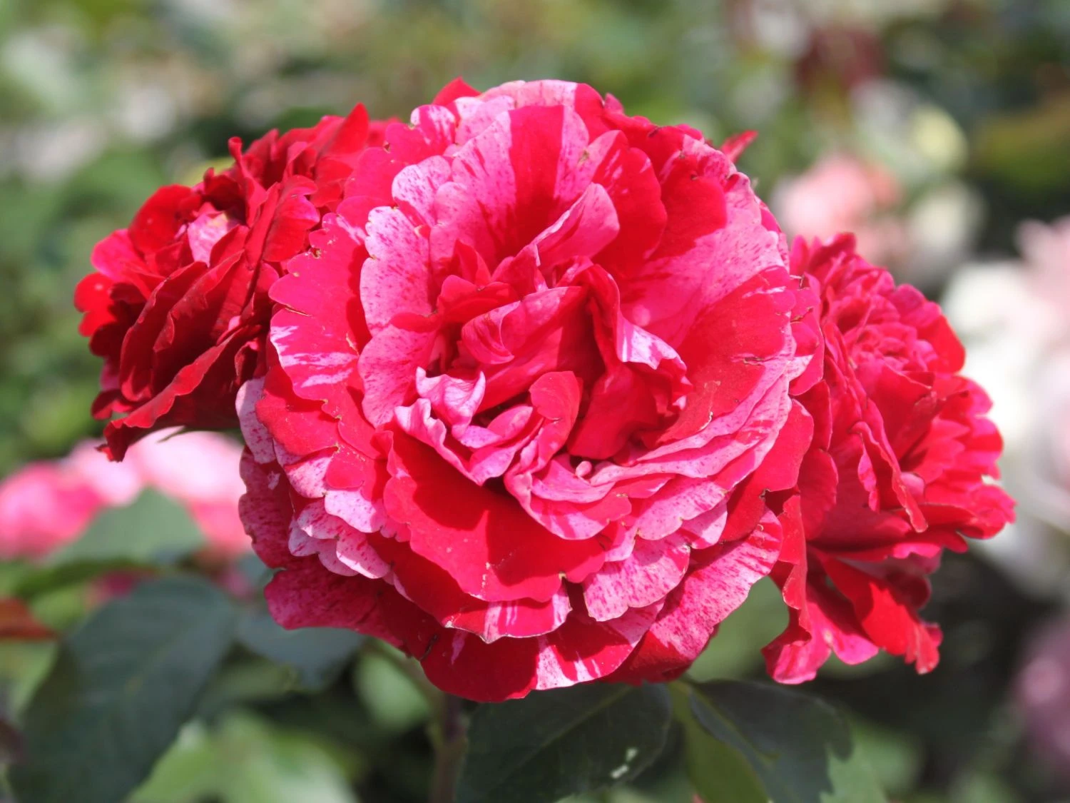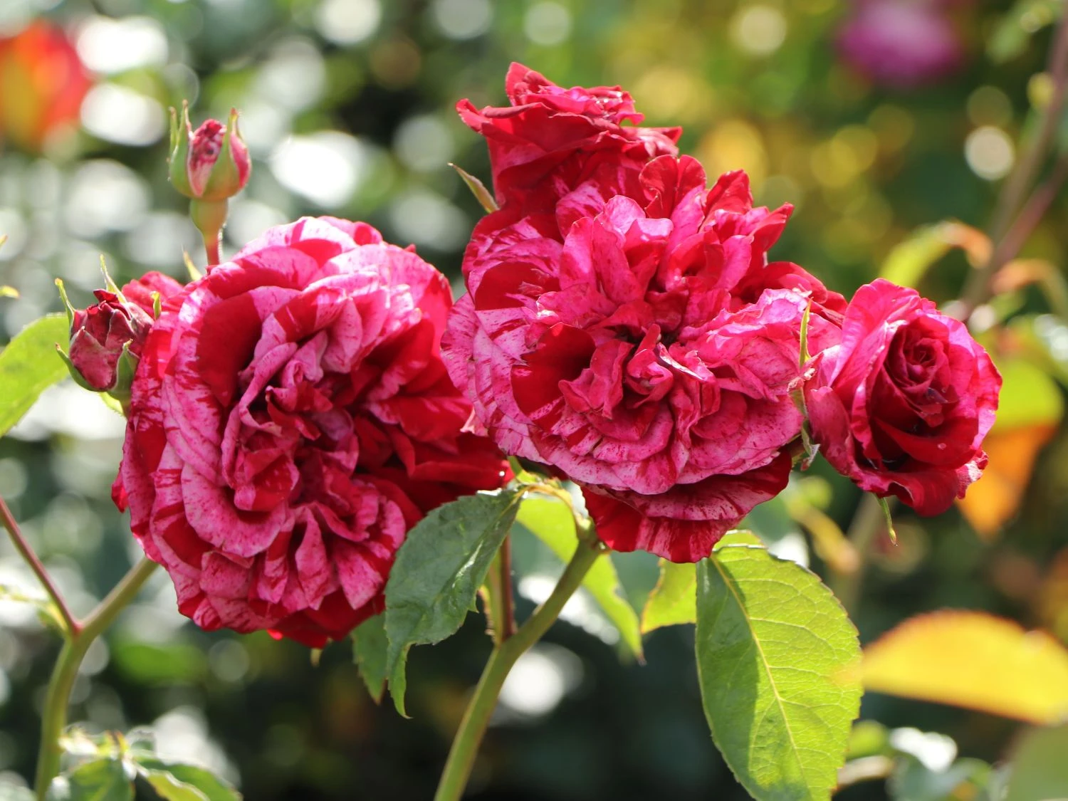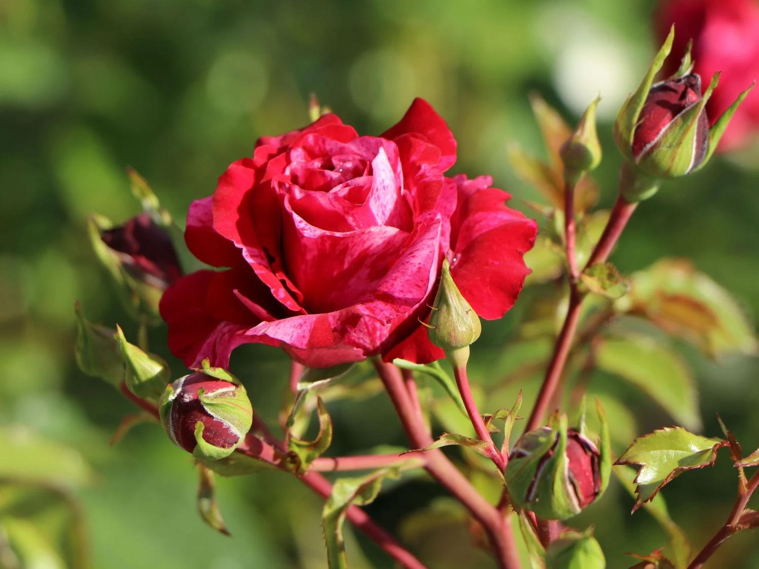 Die Beetrose ‚Deep Impression ®‘ setzt in jedem Garten einen besonderen farblichen Akzent. Die mittelgroßen, halbgefüllten Blüten der Pflanze bezaubern durch ihren dunkelroten Farbton, der wiederum mit pinken Streifen durchsetzt ist. Die Blütenköpfe sind in dunkelgrünes, glänzendes Laub eingebettet. Beides steht in einen schönen Kontrast zueinander. Die Beetrose ‚Deep Impression ®‘ verströmt einen leicht fruchtigen Duft, der an reife Himbeeren erinnert. Rosa ‚Deep Impression ®‘ blüht in der Zeit von Juni bis Oktober. Sie ist eine öfterblühende Sorte und erfreut durch den ganzen Sommer mit ihrer Blütenpracht. Das Entfernen verwelkter Blüten fördert das Wachstum neuer Blüten. Die Früchte der Beetrose sind Hagebutten. Diese haben einen süßlichen Geschmack und dienen Vögeln als winterliche Nahrungsquelle.