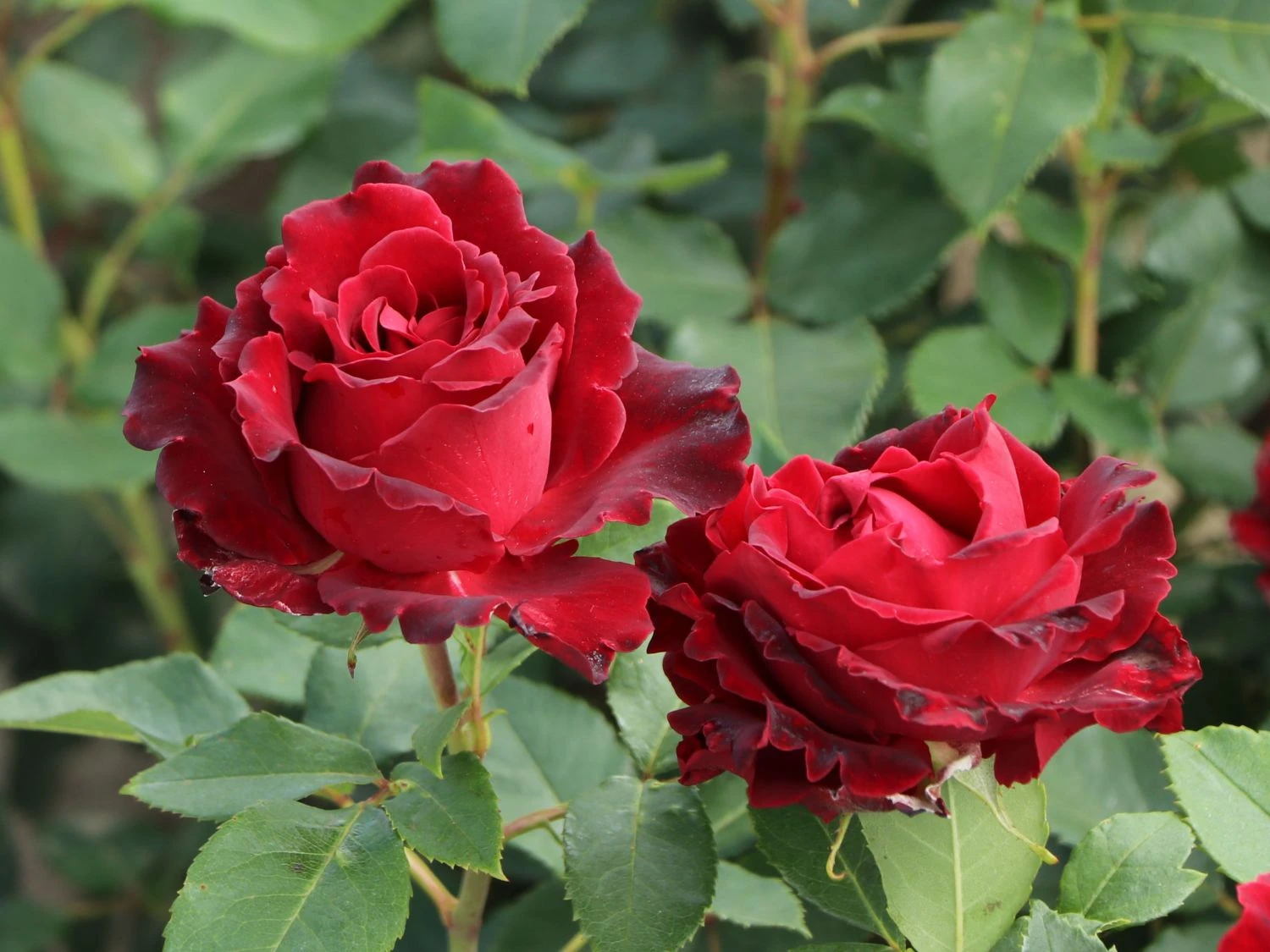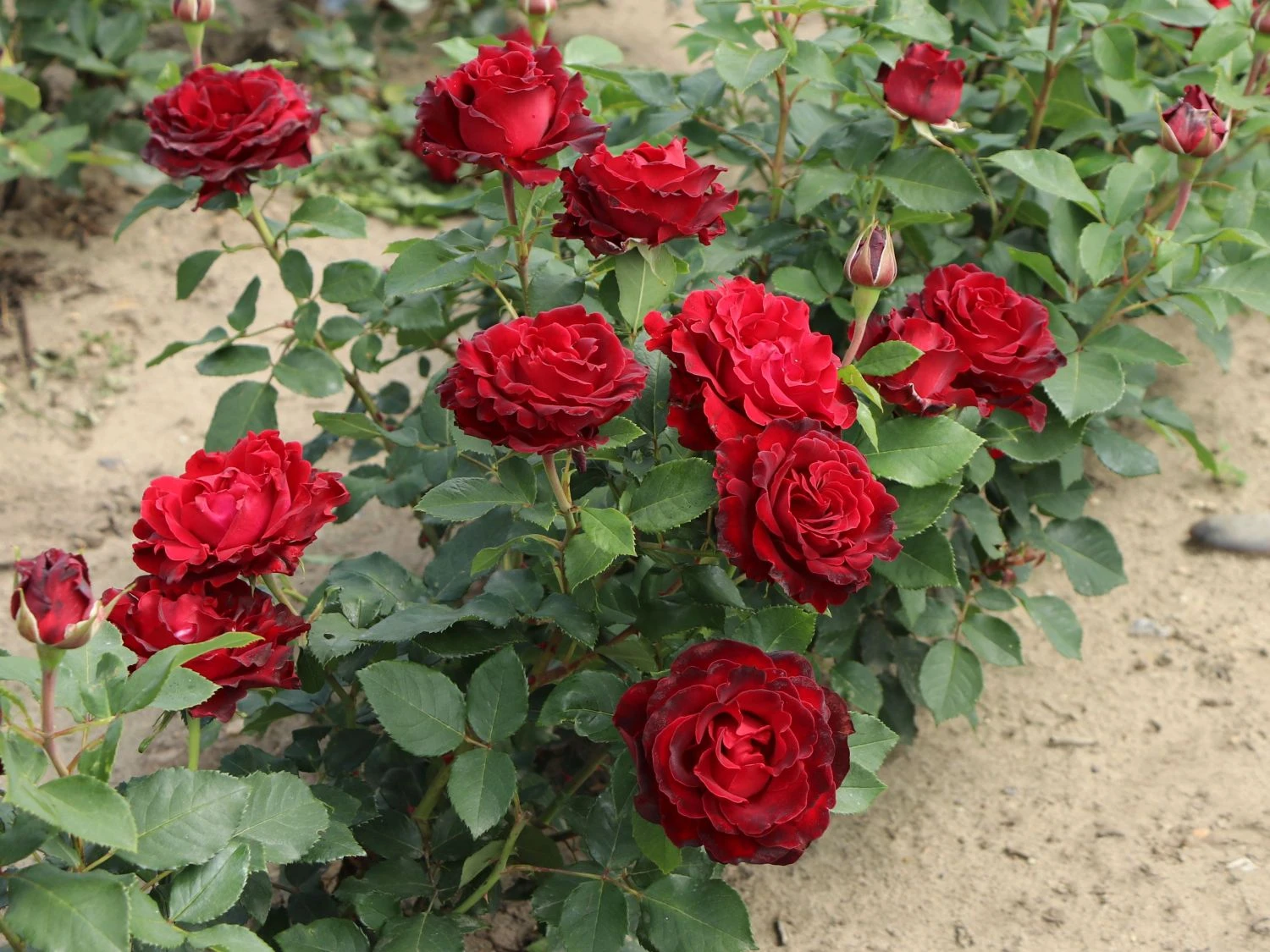 Die Beetrose ‚Heinz Winkler‘ wächst zu einem schmalen, klein bleibenden Strauch mit kräftigen Zweigen und glänzendem, dunkelgrünem Laub heran. Ihre Blütenknospen öffnet sie bereits Mitte bis Ende Mai, danach folgen bis Ende September eine große Anzahl weiterer Blüten. Stets sind voll erblühte Rosen und Knospen in jedem Stadium zu bewundern. Jede Blüte fasziniert durch ihre dicht stehenden Blütenblätter, die dunkelrot gefärbt sind, in ein samtiges, dunkles Rot übergehen und am Saum in ein Schwarzrot auslaufen. Sogar die Form der Blütenblätter ist ansehnlich, denn jedes Blatt von (bot.) Rosa ‚Heinz Winkler‘ hat einen Rand, der in dichten, kleinen Bogen endet. Die Pflanze bietet rundum ein schönes Bild. Der Kontrast zwischen Laubblättern und Blüten ist faszinierend. Ist der Strauch nicht zu sehen, erinnert ein zarter, fruchtiger Duft des Blütenflors an die Beetrose ‚Heinz Winkler‘. Vor allem in lauen Abendstunden und am frühen Morgen bereichert die Rosensorte mit intensiv leuchtenden Blüten und Duft einen Garten.