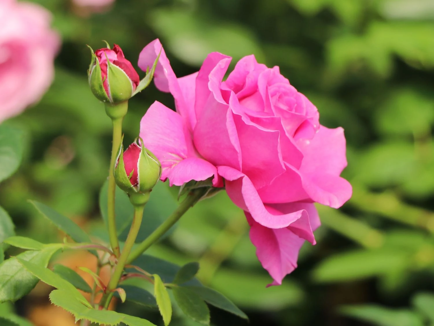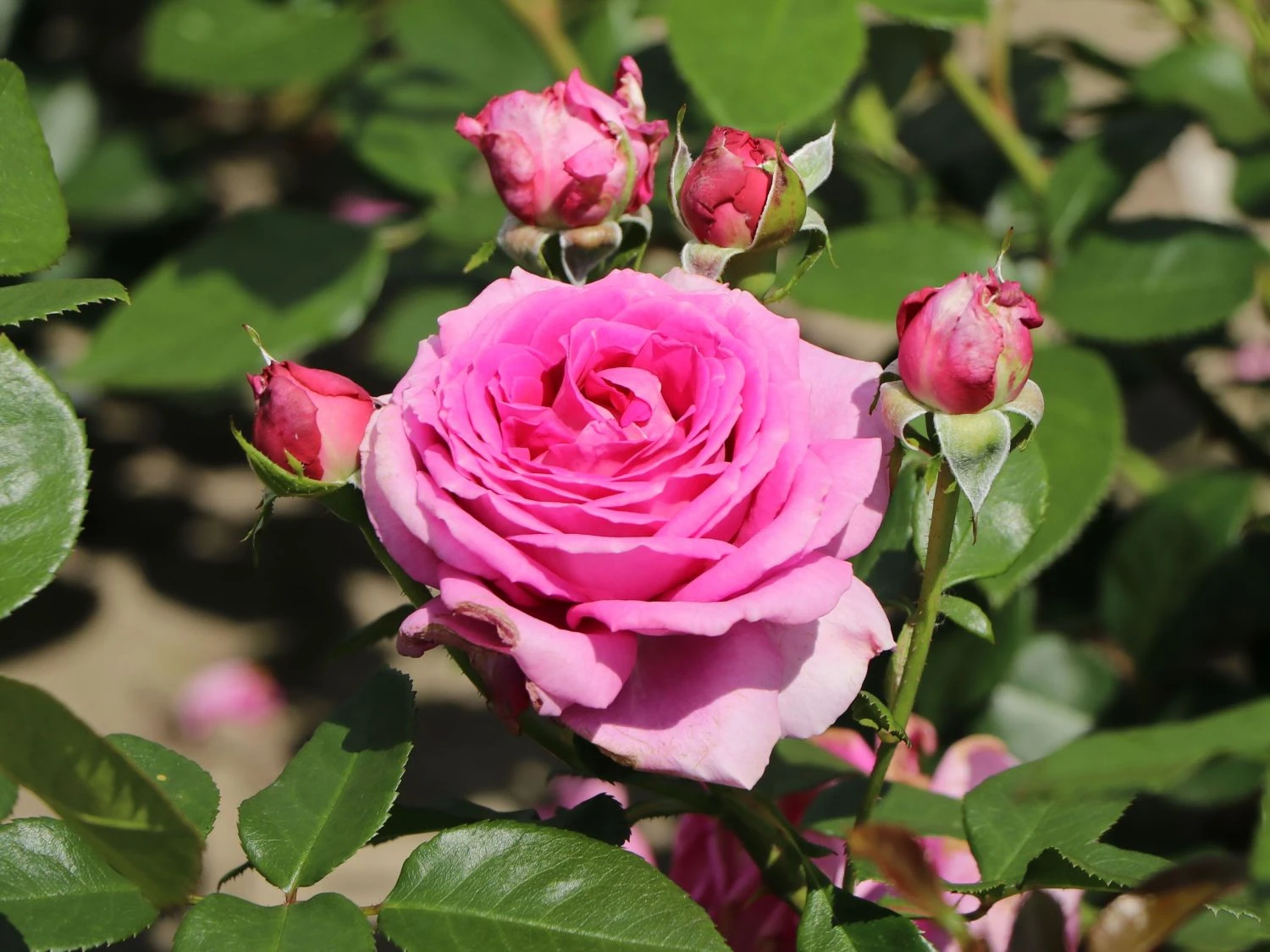 Die Beetrose ‚Jennifer Rose‘ spielt im Garten ihre ganz eigene große Rolle. Diese wundervolle Sorte begeistert mit reicher Blütenpracht und einer ganz besonders schönen Blütenfarbe. Die Blütenblätter der stark gefüllten Blüten sind in einem intensiven Magenta zu bewundern. Zudem verströmen sie – besonders an warmen, sonnigen Sommertagen – ihren unvergleichlich schönen Duft. Die Blüten erreichen eine Größe von sechs bis zehn Zentimeter und sind damit nicht zu übersehen. Dieses traumhafte Schauspiel lässt sich während der Zeit von Juni bis September, mancherorts auch bis in den Oktober hinein, genießen. Als perfekte Nebendarsteller für (bot.) Rosa ‚Jennifer Rose‘ eignen sich Lavendel, Salbei oder auch niedrig wachsende Stauden. Mit einem solchen Arrangement wird der Garten zur großen Bühne auf der die Beetrose ‚Jennifer Rose‘ ihr ganzen Können unter Beweis stellt.