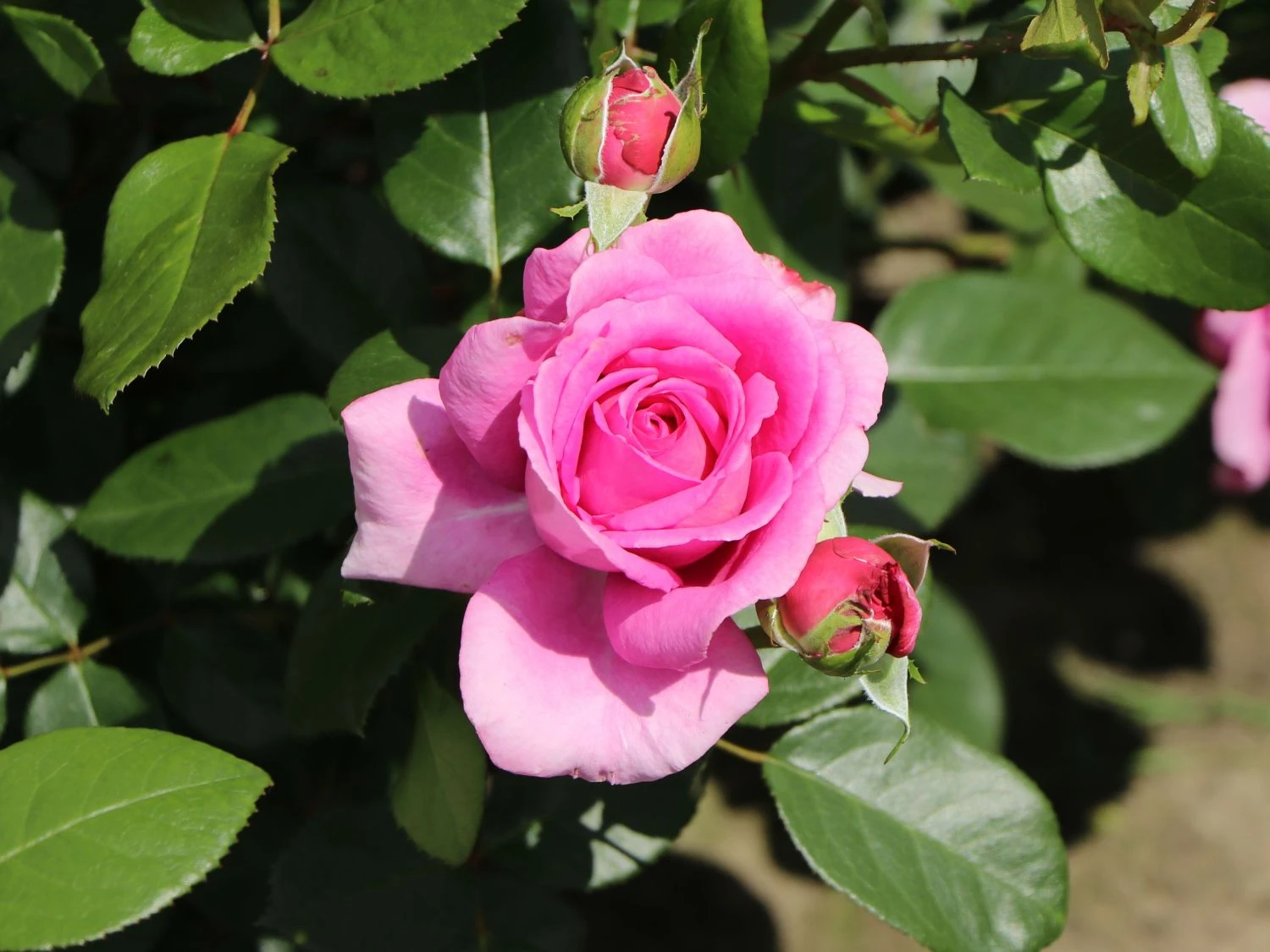 Um der Beetrose ‚Jennifer Rose‘ einen guten Standort zu geben, ist ein Bereich in sonniger bis halbschattiger Lage zu wählen. Der ideale Boden ist nährstoffreich, frisch bis feucht, humos und gut durchlässig. Um Rosa ‚Jennifer Rose‘ in ihrem Wuchs zu unterstützen, empfehlen sich ab dem zeitigen Frühjahr regelmäßige Düngergaben. Der buschige und aufrechte Wuchs lässt ausreichenden Spielraum für viele kreative Gartenideen. So lässt sich die Beetrose ‚Jennifer Rose‘ beispielsweise als blühende Hecke kultivieren, die blühend und duftend für ein Erlebnis sorgt. Der sommergrüne Strauch schmückt sich zu den auffallenden Blüten mit einem dunkelgrünen, gefiederten und wechselständig angeordneten Blattwerk. Sowohl in der Höhe als auch in der Breite erreicht der Kleinstrauch Ausmaße von etwa 60 bis 80 Zentimeter. Damit lässt sich die Beetrose ‚Jennifer Rose‘ auch in kleineren Gärten oder auch im großen Kübel kultivieren.