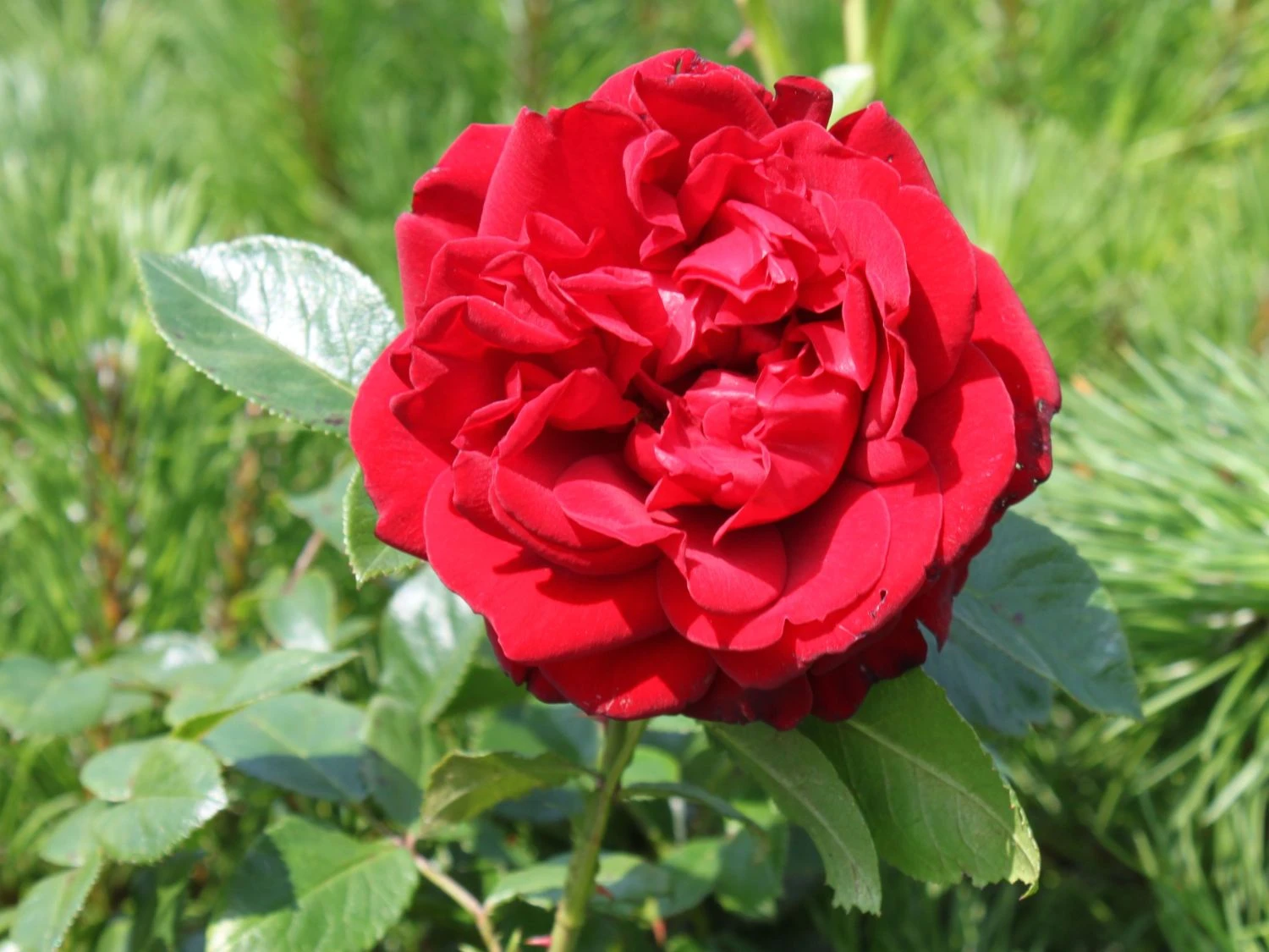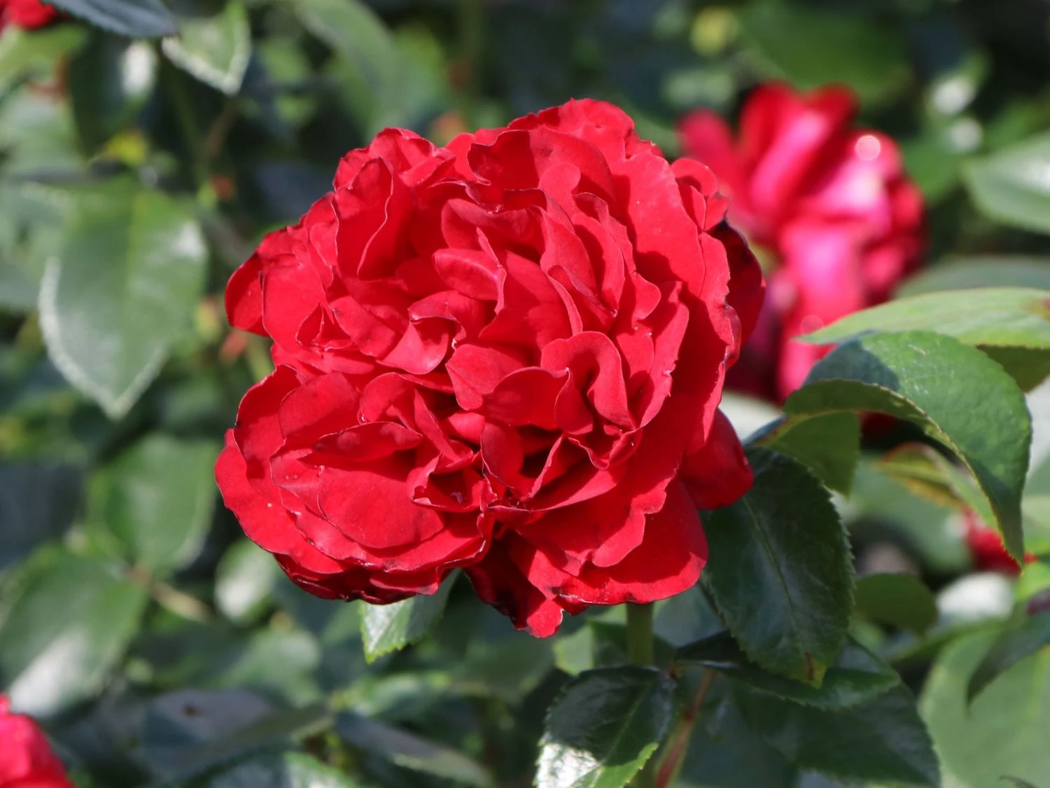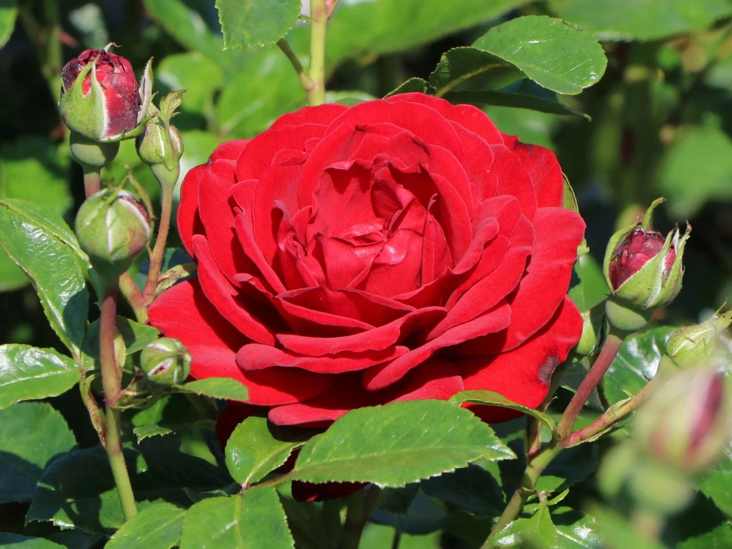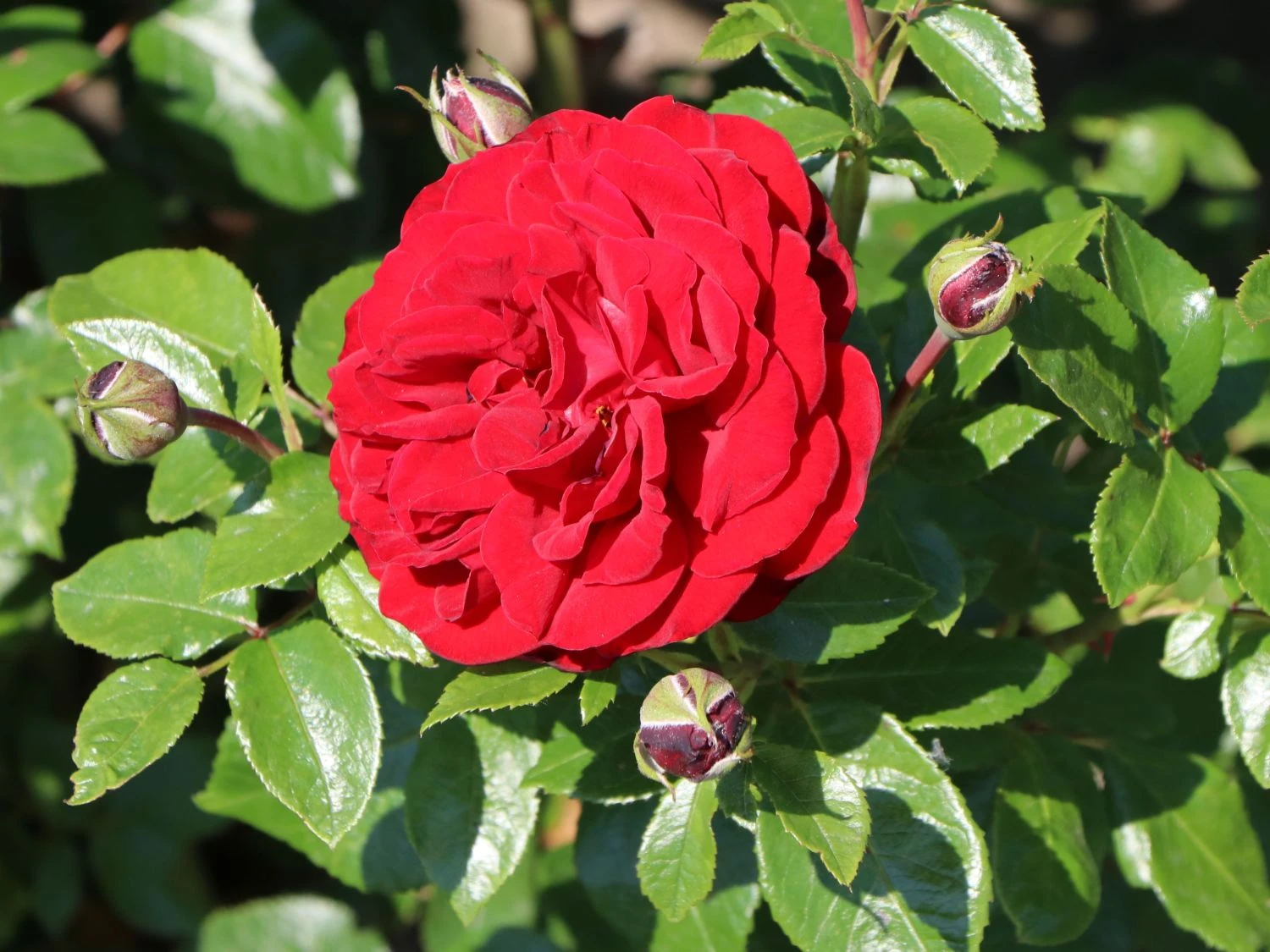 Die Beetrose ‚Jugendliebe‘ ® ist mit ihren traumhaften, weithin leuchtenden Blüten ein Highlight im Garten. Sie überzeugt mit ihrem Blütenreichtum, der langen Blütezeit und den robusten Eigenschaften. Ihre großen, elegant geformten Blüten sind stark gefüllt. Sie funkeln in einem intensiven Dunkelrot. Von Juni bis Ende September entzücken sie den Gartenfreund mit ihrer flammenden Pracht. Die Blüten verströmen einen dezenten, angenehmen Rosenduft. Neben ihrem reichen Flor punktet (bot.) Rosa ‚Jugendliebe‘ ® mit kräftigem, attraktivem Laub. Sie zeichnet sich durch eine hervorragende Blattgesundheit aus. Ihre gefiederten Blätter besitzen einen gesägten Rand und präsentieren sich in sattem Dunkelgrün. Die Beetrose ‚Jugendliebe‘ ® wächst aufrecht und gleichmäßig als buschiger, gut verzweigter Strauch. Sie wird 70 bis 80 cm hoch und 30 bis 40 cm breit. Der bekannte Rosenzüchter W. Kordes‘ Söhne brachte sie 2010 auf den Markt. Ihren Namen verdankt die Sorte dem Lied Jugendliebe der Sängerin Ute Freudenberg.