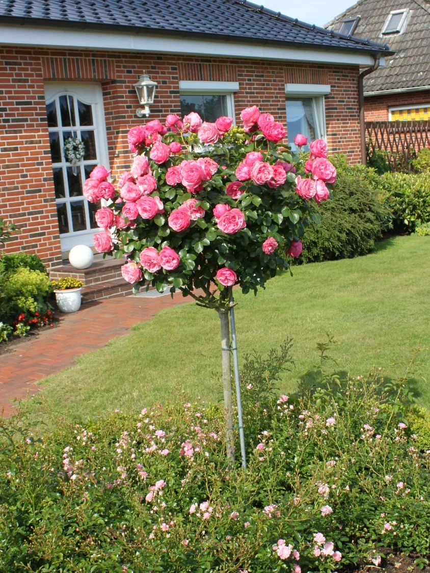 Diese Beetrose wächst aufrecht, kompakt und buschig. Obwohl sie sonnige Plätze sehr gern hat, gedeiht sie auch im Halbschatten, benötigt aber auch hier mindestens 5 Stunden Sonne am Tag. Auch mit rauen Lagen kommt sie zurecht und ist für Gruppen und Flächenbepflanzung geeignet.