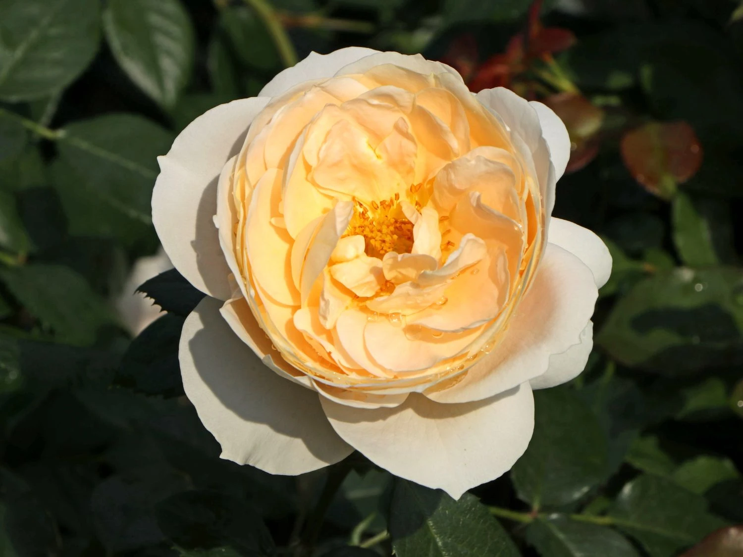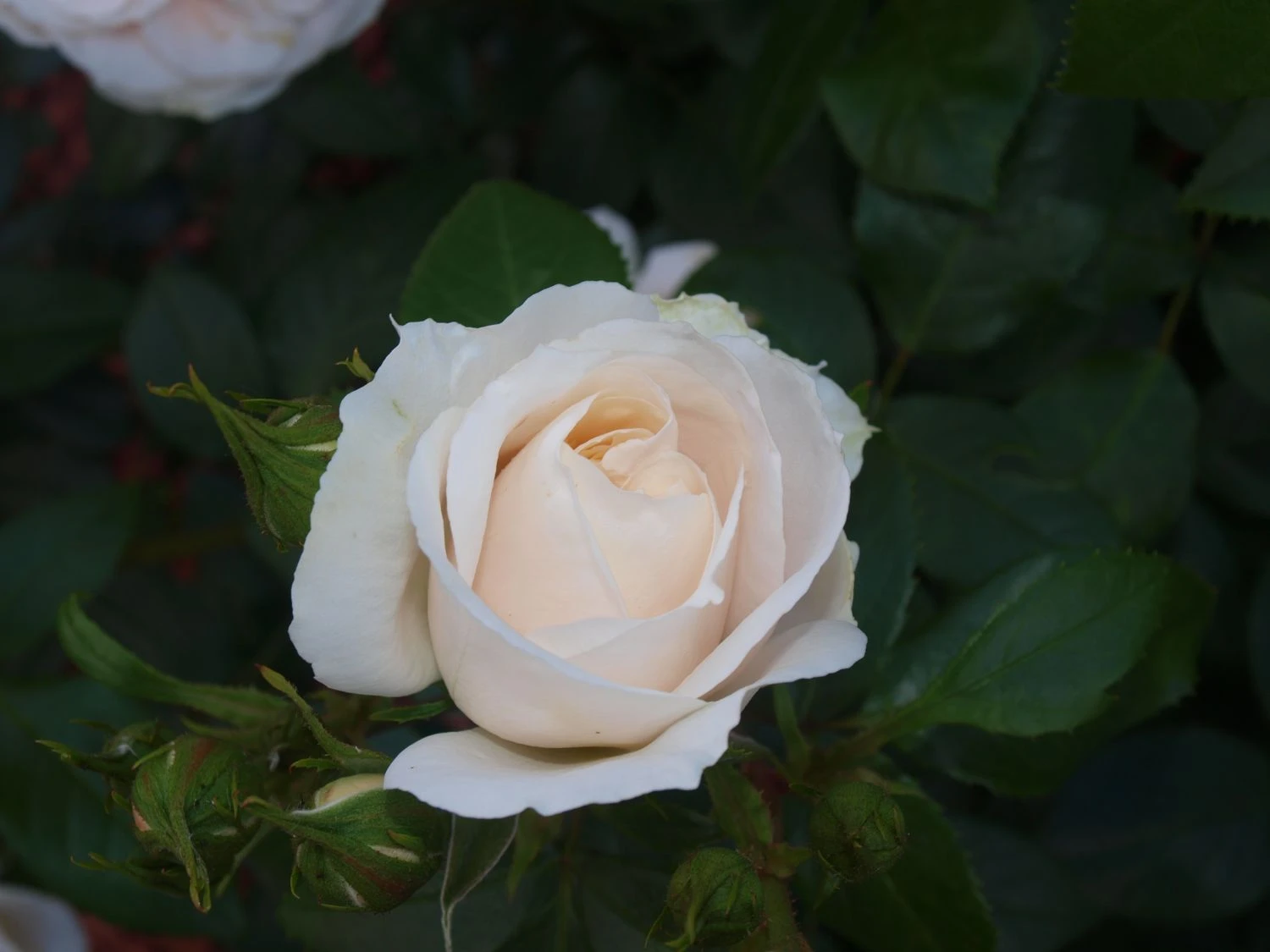 Die Beetrose ‚Lions-Rose‘ schmückt sich mit dunkelgrünen und gefiederten Blättern. Sie wirken als toller Hintergrund für die Blütenpracht der Pflanze und heben das elegante Cremeweiß wunderschön hervor. Bei all der Anmut überrascht es beinahe, wie wenig arbeitsaufwendig und robust diese Rosensorte ist. Nicht ohne Grund trägt sie die ADR-Auszeichnung, die sie als widerstandsfähig und blattgesund kennzeichnet. Die Rosa ‚Lions-Rose‘ ADR-Rose bevorzugt einen sonnigen bis halbschattigen Platz im Garten. Perfekt ist ein humoser, tiefgründiger und frischer Boden. Bei sommerlicher Hitze benötigt die Beetrose ‚Lions-Rose‘ zusätzlich Gießwasser, was ihr der Gartenfreund regelmäßig zukommen lässt. Damit das Erscheinungsbild der Beetrose stets perfekt ist, schneidet der Rosenfreund die verwelkten Blüten zurück. Dadurch regt er die Rose zu einem frischen Austrieb an. Die Beetrose ‚Lions-Rose‘ ist ein schöner Solitär im Rosenbeet. Hinreißend sieht sie in einer Pflanzgruppe aus. In diesem Fall setzt der Gärtner pro Quadratmeter 3 bis 5 Exemplare. Harmonischen Pflanzpartnerschaften ist die Beetrose nicht abgeneigt. Neben Stauden oder Gräsern läuft sie zur Bestform aus. Fantastisch sieht eine Kombination mit blau blühendem Salbei, Lavendel oder Rittersporn aus. Edel wirkt ein Arrangement mit immergrünem Buchsbaum. Die Pflanze ist winterhart und benötigt keinen Schutz. Lediglich bei strengem Kahlfrost bedeckt der Gartenfreund den Boden mit Reisig oder Mulch. Im Frühjahr schneidet der Gärtner die Beetrose circa auf die Hälfte zurück. Der Rosa ‚Lions-Rose‘ ADR-Rose macht das nichts aus. Sie treibt frisch und munter wieder aus. Die Pflanzzeit ist ganzjährig an frostfreien Tagen. Beim Einpflanzen achtet der Rosenliebhaber darauf, dass die Veredelungsstelle rund 5 cm tief liegt. Auch in der Vase sieht die Beetrose ‚Lions-Rose‘ märchenhaft aus und bringt ihren nostalgischen Charme in jeden Raum.