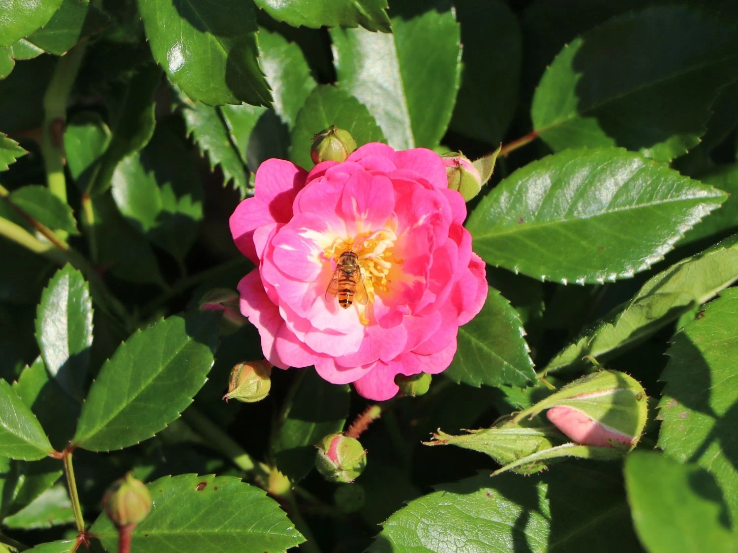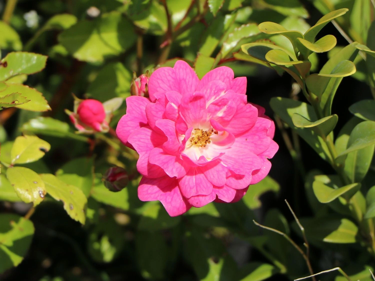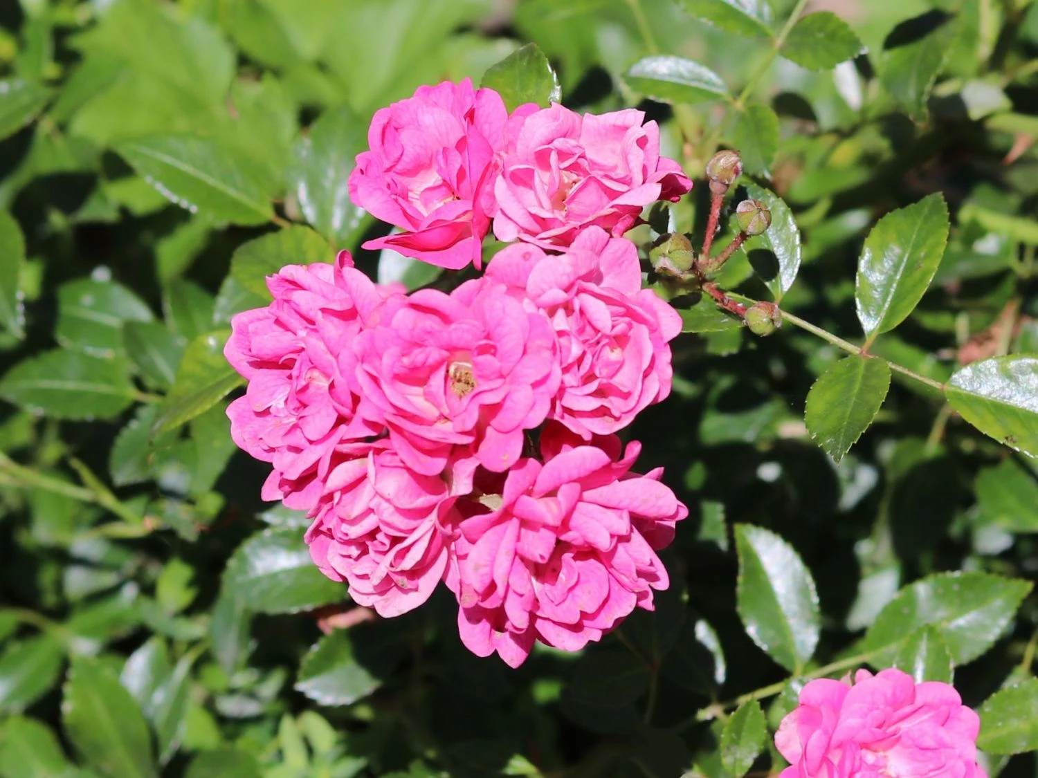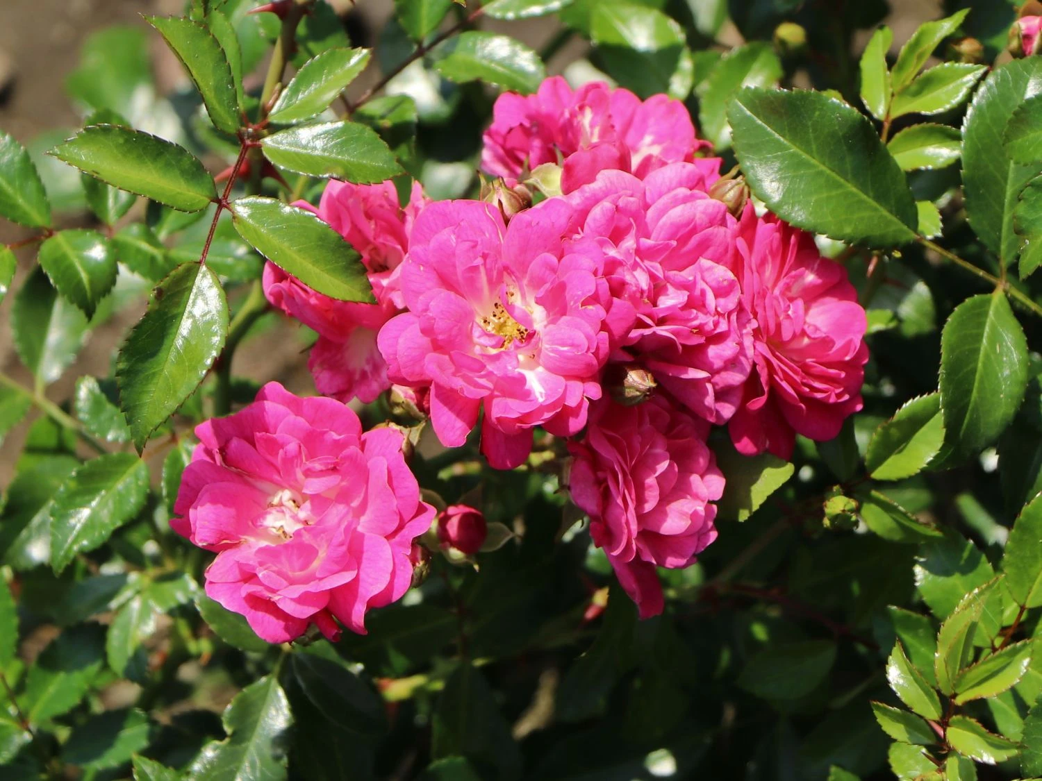 Die Beetrose ‚Lovely Fairy‘ ® aus der Familie der Rosaceae, weiß ihre Betrachter zu faszinieren. Ab Ende Juni beginnen sich die zahlreichen Knospen des Rosenstrauchs allmählich zu öffnen. Die schalenförmig arrangierten Blüten sind leicht gewölbt und erreichen einen Durchmesser von drei bis vier Zentimetern. Das intensive Rosa der einzelnen Blütenblätter, beschreibt zur Mitte hin einen aufhellenden Farbverlauf. In hübschem Kontrast dazu, zeigen sich die leuchtend gelben Staubblätter dieser dezent duftenden Zierpflanze. Sobald die Blühphase im Herbst endet, ist es ratsam, die verbliebenen Blütenstände zurückzuschneiden. Auf diese Weise stärkt der Gärtner die Pflanzenkraft. Zudem verhilft er der Rosa ‚Lovely Fairy‘ ® zu einer Blüte im darauffolgenden Jahr in gänzlicher Intensität. Die Beetrose ‚Lovely Fairy‘ ® zeichnet sich neben den optischen Vorzügen durch ihre Qualität als Bodendecker aus. Im Jahr 1992 vom Züchter Vurens-Spek kultiviert, überzeugt das Rosengewächs mit üppiger Blüte und kräftigem Wuchs. Das dichte Blattwerk in glänzendem Mittel- bis Dunkelgrün, entsprießt den mehrfach verzweigten Trieben der Rose. Die fünfzähligen Blätter weisen eine elliptische Form auf und sind unpaarig gefiedert. Die Bodendeckerrose eignet sich für den Einsatz in Rabatten und Rosenbeeten ebenso wie für Gruppen-Arrangements auf Freiflächen. Auch in ausreichend großen Töpfen und Kübeln entfaltet sich ihre Optik wunderbar. Bei einer ganzjährigen Pflanzzeit, an einem sonnig bis halbschattigen Standort gesetzt, erreicht die Beetrose eine Wuchshöhe von 40 bis 70 Zentimetern. Aufgrund der maximalen Wuchsbreite von bis zu 60 Zentimetern, ist auf einen ausreichenden Pflanzabstand zu achten. Optimal verteilt der Gärtner bis zu vier Pflanzen auf einem Quadratmeter. Am wohlsten fühlt sich die Beetrose ‚Lovely Fairy‘ ®in einem nährstoffreichen und durchlässigen Boden mit leichtem Lehmanteil. Auch ist die schöne Rose kalkverträglich. Sofern ihre Triebe zu dicht gewachsen sind, ist ein partieller Schnitt möglich. Auch ein kompletter Rückschnitt ist möglich. Dafür schneidet der Gärtner alle Grundtriebe bis auf drei bis vier Augen herunter. Es reicht aus, wenn das alle zwei bis drei Jahre passiert. Witterungsbedingt ist nach der Frostperiode die Zeit für den Rückschnitt der Beetrose ‚Lovely Fairy‘ ®. Ansonsten entfernt der Gärtner nur alle beschädigten und abgestorbenen Triebe. Wählt der Gärtner den passenden Standort und schneidet er die wunderbare Beetrose fachgerecht zurück, dankt sie es ihm mit gesundem Wachstum. Auch die reiche Blüte der Rosa ‚Lovely Fairy‘ ® zeigt sich auf diese Weise jedes Jahr erneut.