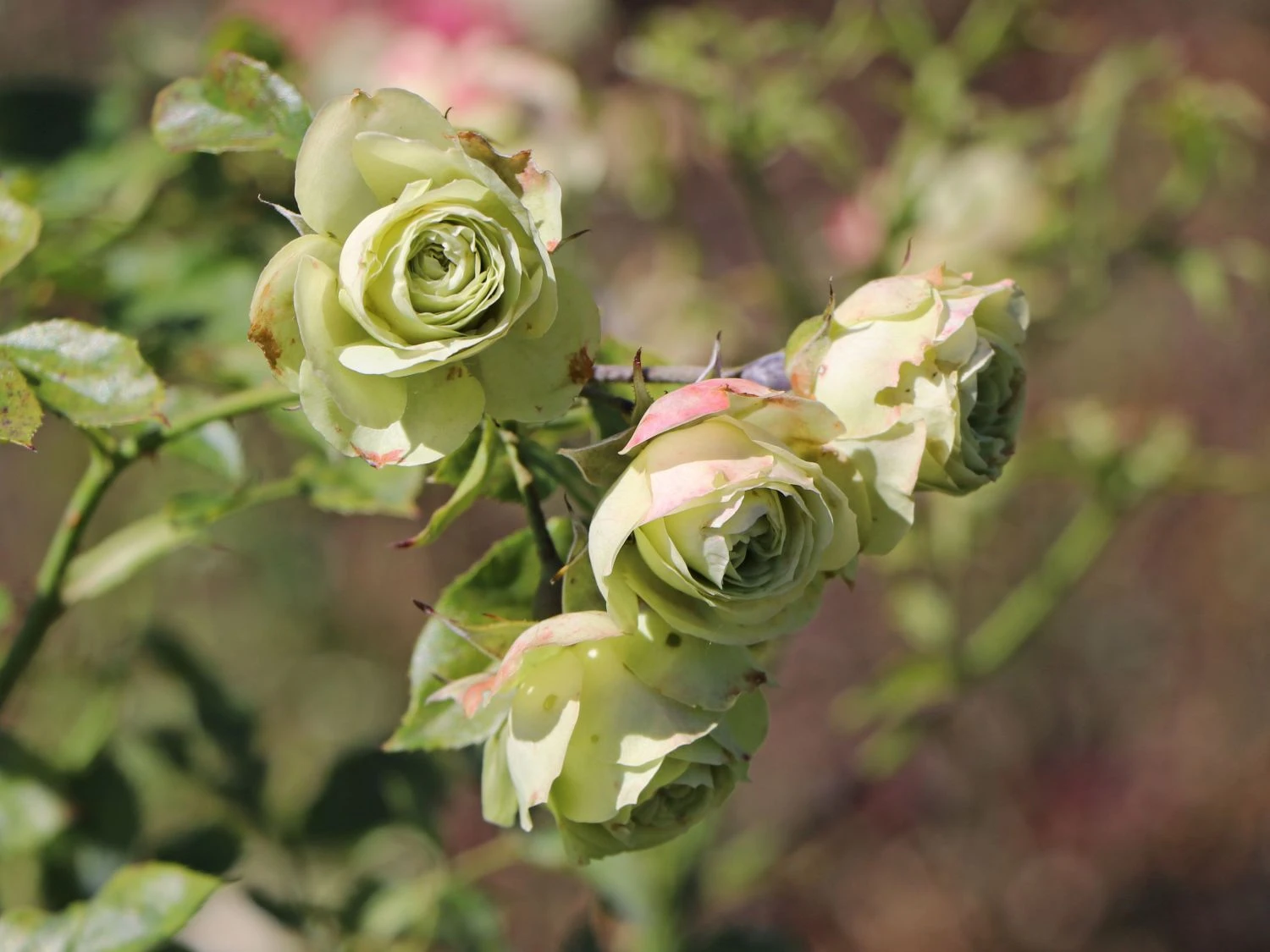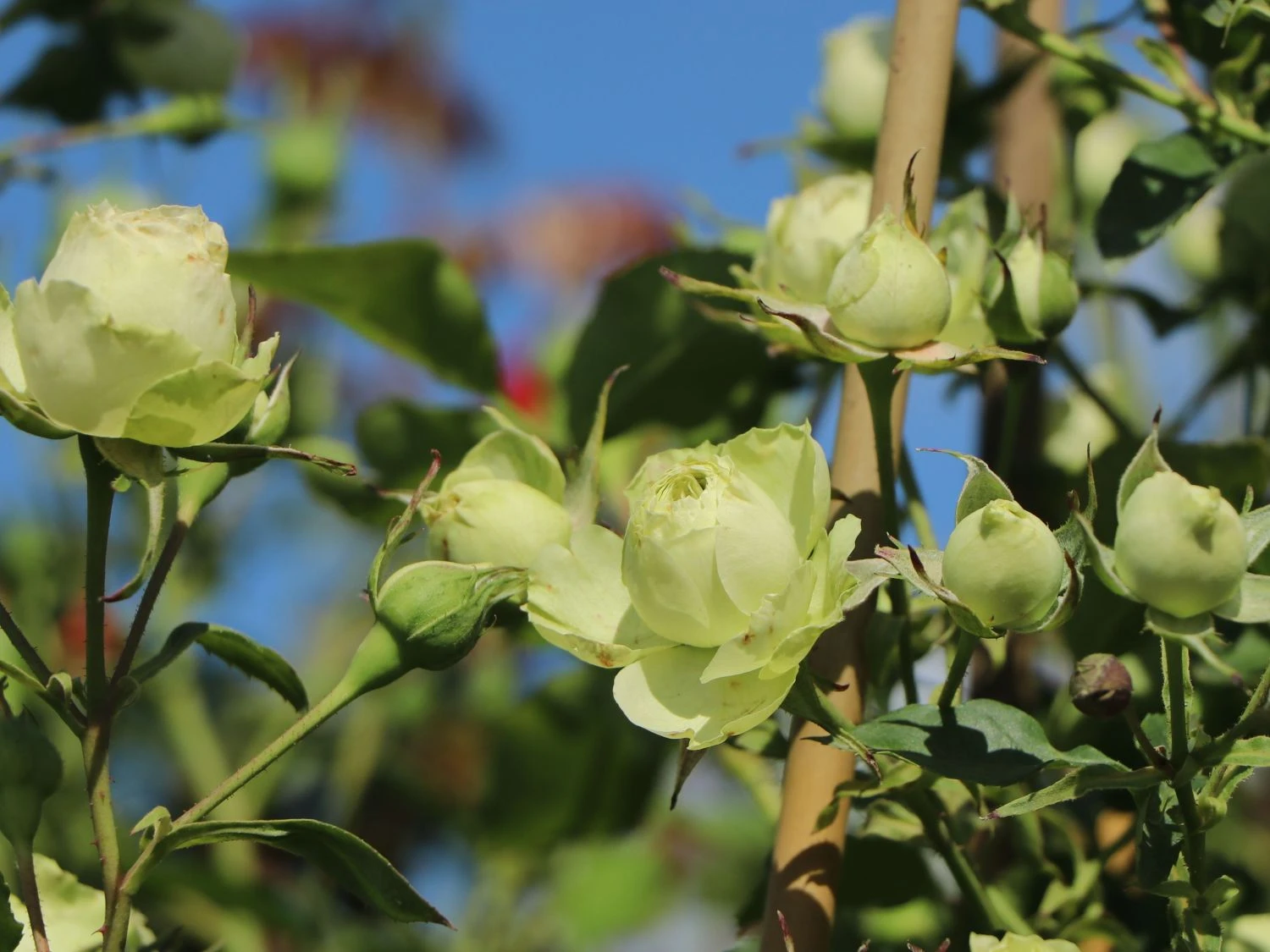 Die Beetrose ‚Lovely Green‘ zeigt eine faszinierende Eleganz. Das Besondere an dieser Rose sind ihre edlen, cremeweißen Blüten, die grünlich schimmern. Die (bot.) Rosa ‚Lovely Green‘ gehört zu den Floribundarosen. Diese Rosenklasse entstand in den 1930er-Jahren durch eine Kreuzung von robusten und großblütigen Polyantharosen mit Teehybriden. Die Beetrose ‚Lovely Green‘ bildet stark gefüllte Blüten, die es mit denen der Edelrosen in Größe und Duft spielend aufnehmen. Die wunderschönen Blüten der Beetrose ‚Lovely Green‘ stehen in Büscheln, selten einzeln am Stiel. Die eleganten Beetrose ist eine Zuchtsorte aus dem Hause Meilland aus dem Jahre 2004. Der in der Provence ansässige Züchter genießt für seine Rosenkreationen Weltruhm. Die buschig wachsende ‚Lovely Green‘ schmückt sich in überschwänglicher Weise im Sommer und erfreut den Gärtner mit fünf bis acht Blütenköpfen pro Stiel. Die schöne Rose bereitet ihren großen Auftritt im Juni perfekt vor. Bis zu vier Wochen stehen die zauberhaften grünlich schimmernden Knospen an den Trieben und begeistern mit ihrer eleganten Optik. Sie versprechen nicht zu viel: Wenn sich die Knospen langsam entfalten, entwickeln sich aus ihnen bis zu fünf Zentimeter große, dicht gefüllte Blüten von einem edlen Grünweiß. Die Rosa ‚Lovely Green‘ ist öfterblühend und verzaubert das Gartenbeet bis in den September hinein. Ihr zarter Duft ist vornehm zurückhaltend, die wahren Werte dieser Beetrose liegen in ihrer wunderschönen Blütenpracht.