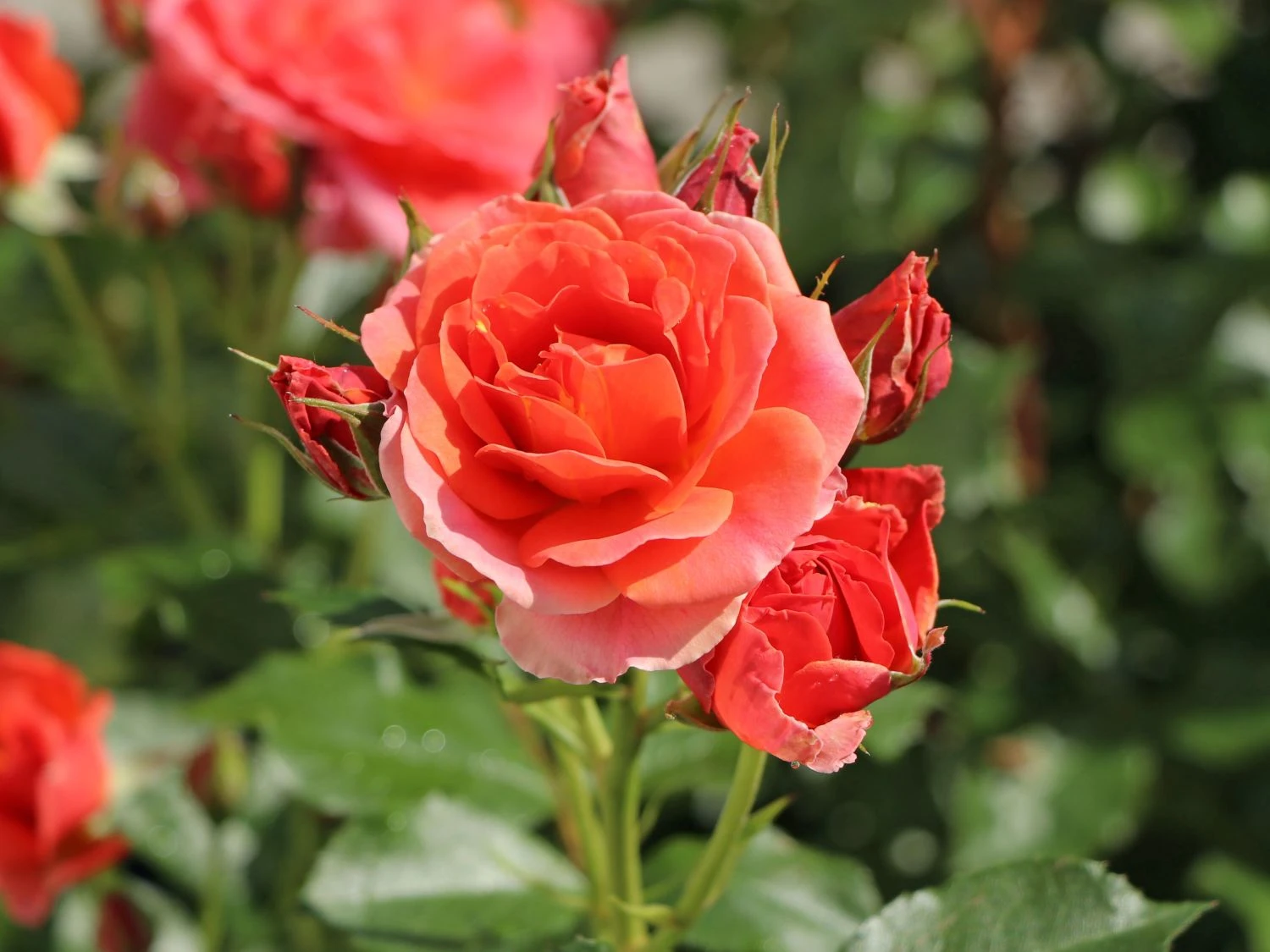 Die ‚Mandarin 2016‘ ® ist ein Sonnenanbeter. Im Schatten ist die lachs-orangefarbige Schöne nicht glücklich. Die ‚Mandarin 2016‘ ® liebt einen sonnige Standorte mit humosem Boden. Die farbenfrohe Schönheit ist öfterblühend und erfreut den Gärtner den ganzen Sommer. Von Juni bis in den Oktober blüht sie ohne Unterlass. Ihr Wuchs ist buschig und reicht verzweigt. Sehr gut eignet sich die Rosa ‚Mandarin 2016‘ ® für Gruppenpflanzungen. Der Gärtner setzt fünf bis sechs Pflanzen pro Quadratmeter in das Beet. Dadurch entsteht ein großartiges lachs-orangenes Farbfeuerwerk im Garten, das alle Blicke auf sich lenkt. Auch als Kübelpflanze macht sie mit ihrer kompakten Form und ihren zahlreichen Blüten viel her. Der Pflanzenfreund setzt mit dieser Beetrose auf Balkon, Terrasse oder im Eingangsbereich großartige, farbenfrohe Akzente! Eine perfekte Figur gibt die ‚Mandarin 2016‘ ® als zauberhafte Beeteinfassung ab. In der Zusammenstellung mit blau blühendem Lavendel oder Salbei ist diese Pflanze ein absolutes Glanzstück im Garten. Auch in der Kombination mit kleinwüchsigen Gräsern ist die Beetrose ‚Mandarin 2016‘ ® zauberhaft! Der kreativen Gestaltung sind keine Grenzen gesetzt. Wohl niemand kann sich dem Anblick dieser intensiven lachs-orangefarbigen Blüten entziehen! Die robuste Rosenschönheit ist winterhart und benötigt keine speziellen Schutzmaßnahmen. Unkompliziert und hinreißend präsentiert sich diese hinreißende Beetrose!