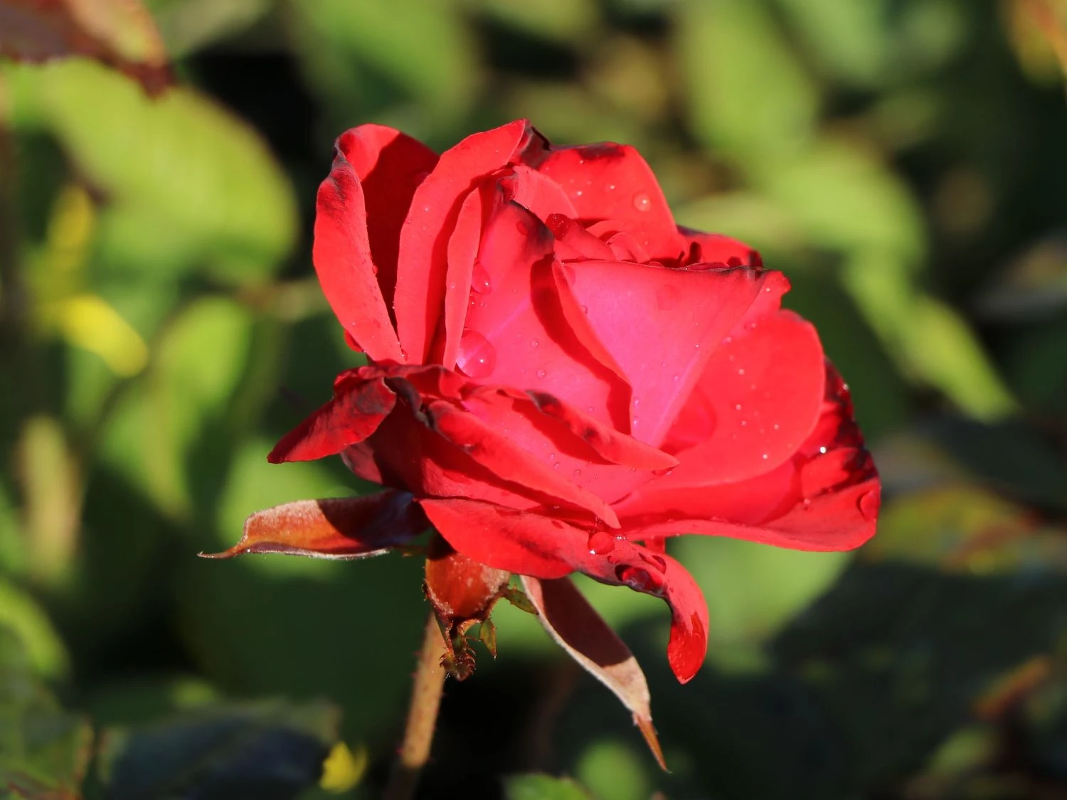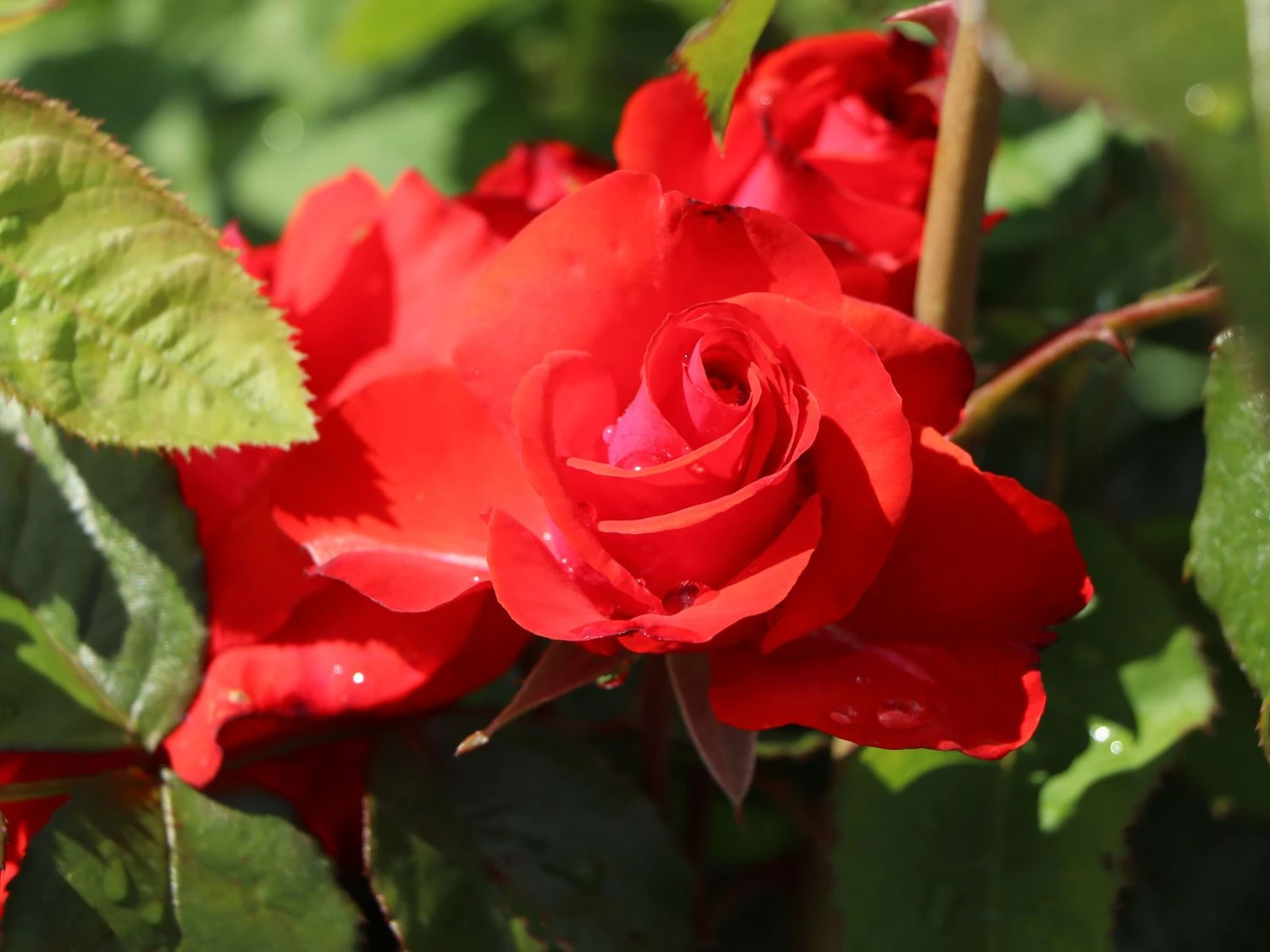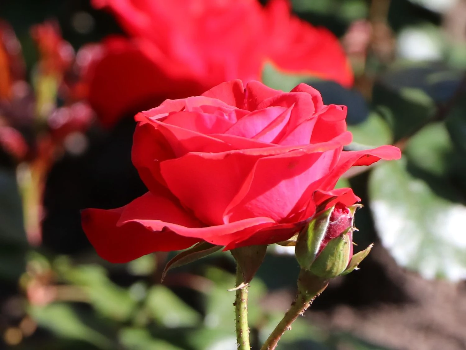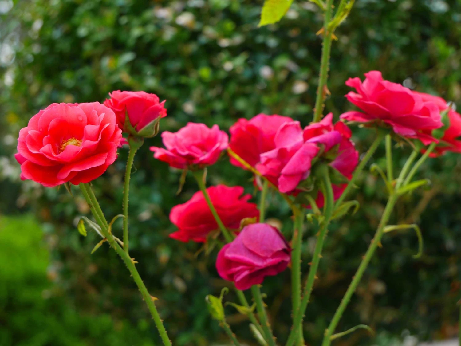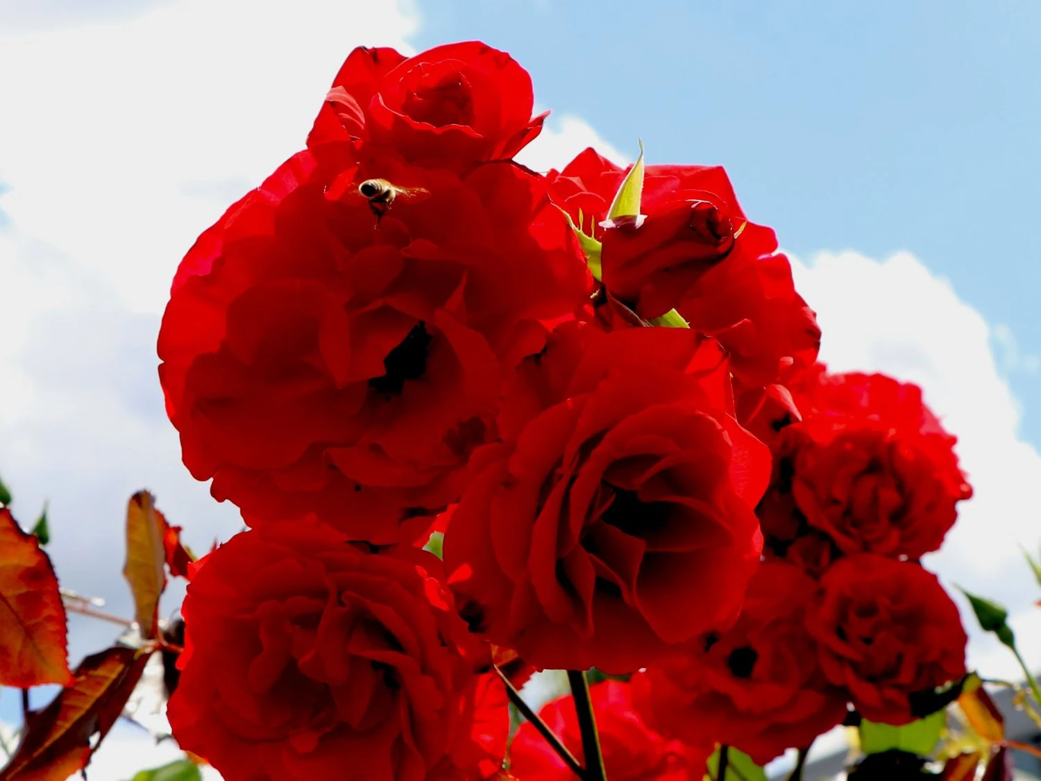 Die roten Blüten sind mittelgroß und erreichen im Durchmesser 5 bis 10 cm. Sie stehen in Büscheln an den stabilen Zweigen. Markant heben sie sich von den dunkelgrünen Laubblättern ab. Die Blätter sind gefiedert und lederartig. Die Rosa ‚Montana‘ ® erweist sich als robust und unkompliziert. Die Beetrose gedeiht am besten an einem sonnigen bis halbschattigen Standort. Optimal ist ein humoser, tiefgründiger, frischer und gut durchlässiger Boden. Sind diese Grundlagen gegeben, entwickelt sich diese rotblühende Rose zu einem Hingucker im Garten. Vor allem in einer Pflanzgruppe überzeugt die blühfreudige Beetrose ‚Montana‘ ® jeden Rosenliebhaber. Auf einem Quadratmeter finden zwischen 5 und 6 Pflanzen dieser Sorte Platz. Der Gärtner putzt die verblühten Blüten regelmäßig aus. Die Beetrose bildet kontinuierlich neue Blüten nach. Die Beetrose ‚Montana‘ ® ist winterhart und benötigt keinen besonderen Schutz. Nur bei starken Kahlfrösten schützt der Rosenfreund den Wurzelbereich mit Reisig oder Mulch. Im Frühjahr schneidet der Gärtner die Triebe um die Hälfte zurück. Damit spornt er die Beetrose ‚Montana‘ ® zu einem frischen Austrieb an.