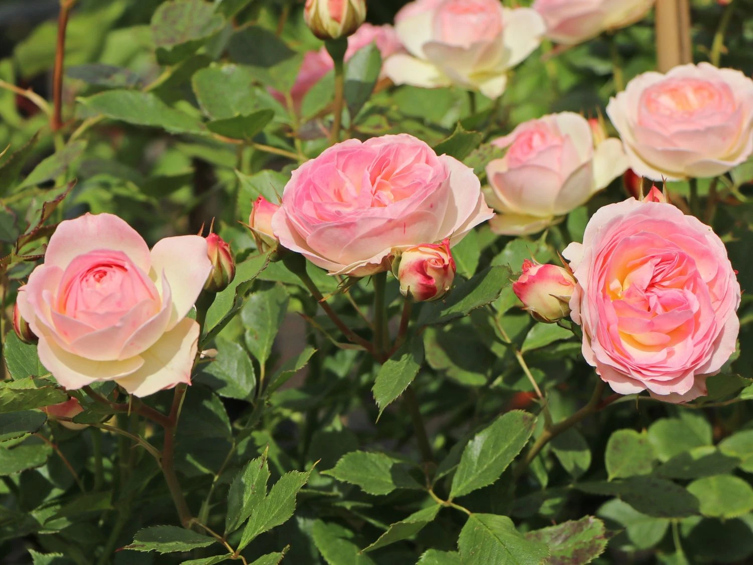 Die Beetrose ‚Pastella‘ ® zeigt einen buschigen und kompakten Wuchs. Sie erreicht eine Wuchshöhe von 60 bis 70 cm und eine Breite von bis zu einem halben Meter. Die Blüten sind mittelgroß und erreichen einen Durchmesser von fünf bis zehn Zentimetern. Die Rosa ‚Pastella‘ ® ist ein Blickfang im Garten und versprüht ein elegantes Flair. Ihre aparten Blüten nehmen es mit denen von Edelrosen spielend auf. Die sommergrüne Beetrose schmückt sich mit gefiedertem Laub und hat eine gute Blattgesundheit. Die Blätter sind hellgrün und harmonieren perfekt mit den cremeweißen Blüten. Die robuste und unkomplizierte Beetrose bevorzugt einen sonnigen bis halbschattigen Standort. Die Beetrose ‚Pastella‘ ® gedeiht auf tiefgründigen, humosen und frischen Böden und schmückt Beete oder Rabatten. Traumhaft schön sieht sie als Schnittblume in der Vase aus oder im Pflanzkübel auf Terrasse oder Balkon. Der Rosenfreund schneidet die verwelkten Blüten regelmäßig zurück, um die Pflanze zu einem frischen Austrieb anzuspornen. Bei sommerlicher Hitze verabreicht der Gärtner regelmäßig Gießwasser. Die Beetrose ‚Pastella‘ ® ist ein zauberhafter Liebling im Garten. Gegen passende Beetnachbarn hat die Rose nichts einzuwenden. Harmonische Partnerschaften geht sie gern mit violettblau blühenden Pflanzen wie Salbei, Rittersporn oder Lavendel ein. Großartig wirkt die Rosa ‚Pastella‘ ® in einer Gruppe von drei bis fünf Pflanzen pro Quadratmeter. Dem Rosenliebhaber eröffnen sich viele fantastische Ideen, um diese Beetrose im Garten einzusetzen. Sie ist gut winterhart und benötigt keinen speziellen Schutz während der kalten Jahreszeit. Lediglich bei Kahlfrösten ist eine dicke Schicht Mulch über dem Wurzelbereich zu empfehlen. Für den Rückschnitt eignet sich das Frühjahr. In dieser Zeit kürzt der Rosenfreund die Triebe rund um die Hälfte ein und entfernt tote oder verholzte Zweige. Die Beetrose ‚Pastella‘ ® erfreut den Gärtner viele Jahre lang mit ihrer sehr guten Blattgesundheit und ihren fantastischen Blüten.