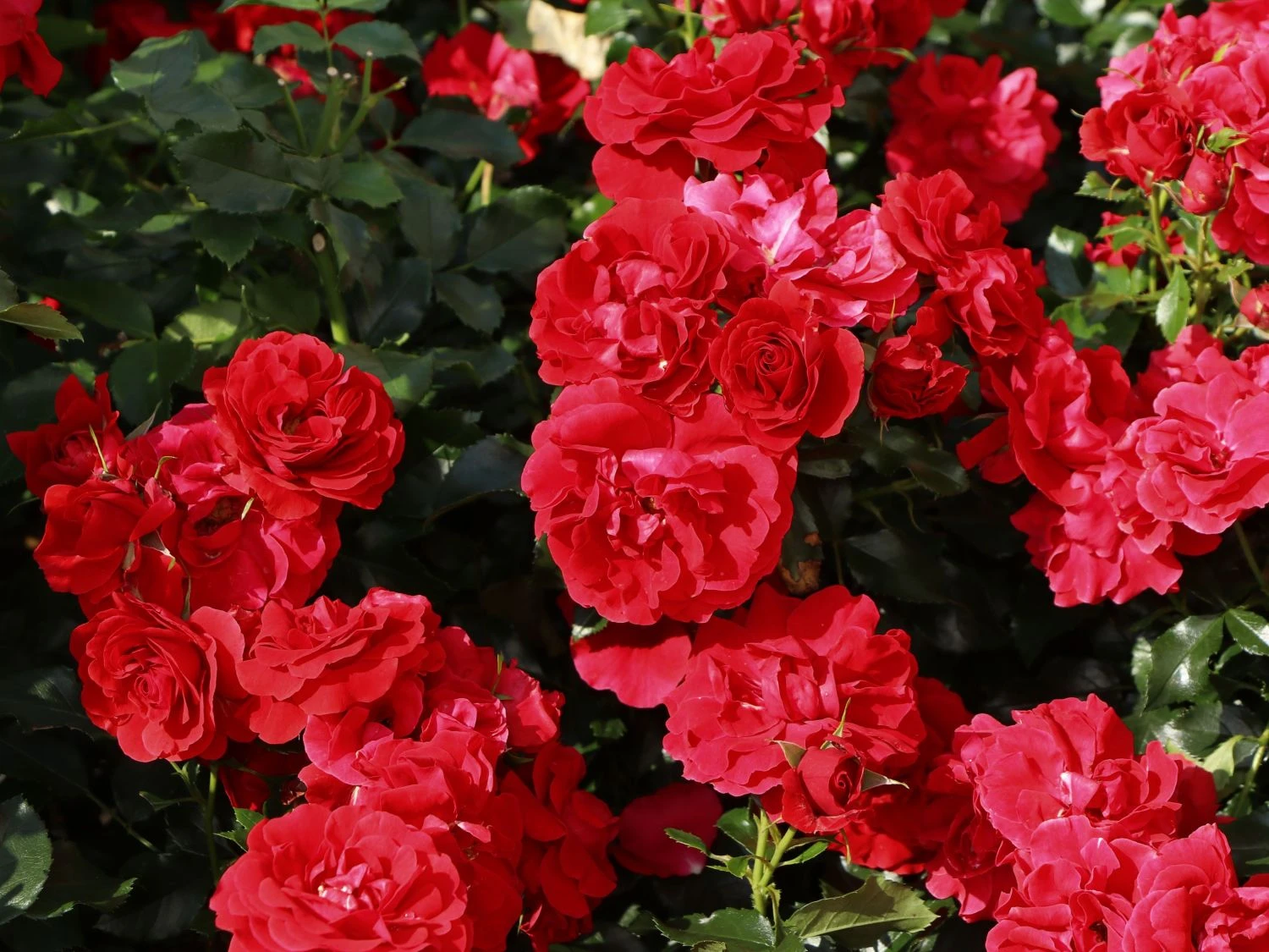 Die Beetrose ‚Pepino‘ ® begeistert mit ihrer dunkelroten Blütenpracht. Der reiche Blütenflor sowie der kissenförmige und kompakte Wuchs machen diese Sorte zur perfekten Besetzung von lückenlos blühenden Beeten. Daneben ist (bot.) Rosa ‚Pepino‘ ® ein exzellenter Begleiter von Stauden oder weniger hoch wachsenden Gräsern. Jede der unzähligen Blüten der Beetrose ‚Pepino‘ ® öffnet sich auf einen Durchmesser von 6 bis 8 cm. Auf einem Quadratmeter Fläche passen 4 bis 5 Pflanzen bei einem Pflanzanbstand von 45 bis 50 cm zusammen. Diese schöne Sorte ist vielseitig einsetzbar. Sie bietet sich für kleine Gruppen im Beet ebenso schön an wie im dekorativen Kübel. Daneben bereichert sie Rosenbeete, lässt sich zu einer blühenden Hecke erziehen und wertet gemischte Pflanzungen optisch auf.