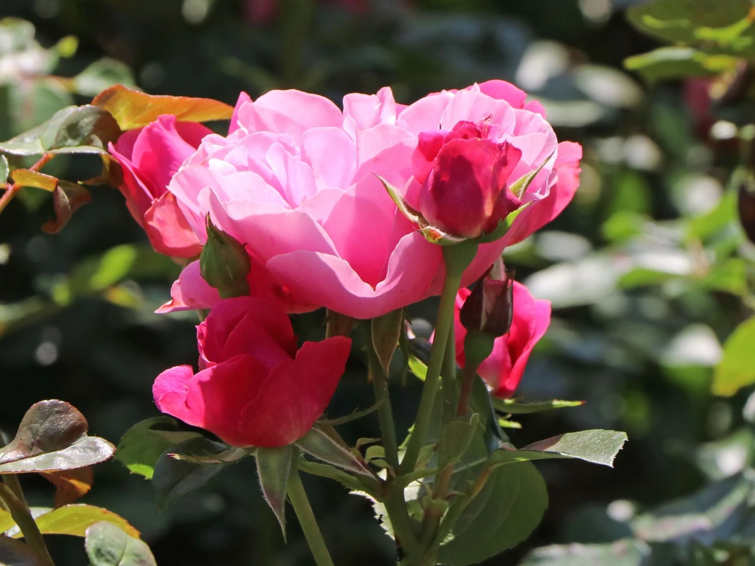 Die Beetrose ‚Playrose‘ ® trägt duftige Blüten, die den Kleinstrauch in eine Attraktion verwandeln. Die rundlichen Blüten sitzen und hängen in dicken Büscheln an den Zweigen. Deren sattes, grünes Laub hebt das leuchtende Karmesinrosa der Beetrose ‚Play Rose‘ ® gut hervor. Gärtner lieben (bot.) Rosa ‚Playrose‘ ® zum flächigen Gestalten repräsentativer Grundstücksbereiche. Die Beetrose ‚Playrose‘ ® wächst auf Stützmauern und Hangabbrüchen und verwandelt eine Brachfläche in ein Rosenmeer. Auf terrassierten Hängen mit magerem Boden, bewachsen von Gräsern, Kräutern und Disteln setzt sie mit ihrer buschigen Gestalt unübersehbare Highlights. Ein Einzelstrauch fällt auf, kleine Gruppen der Strauchrose bilden den Mittelpunkt in vielgestaltigen Rabatten und lange Rosenbänder stellen harmonische Verbindungen zwischen Beeten und Wiesen her. Experimentierfreudige Pflanzenfreunde stellen Rosa ‚Playrose‘ ® zwischen Mangold, Artischocken, Römerkohl und vor Stangenbohnen. Rosenfreunde gestalten mit dem Strauch Hecken, die Wind von Beeten fernhalten und einen idyllischen Anblick bieten. Die Sorte eignet sich für große und tiefe Kübel und bringt einen Miniatur-Rosengarten auf Terrassen und Balkonen.