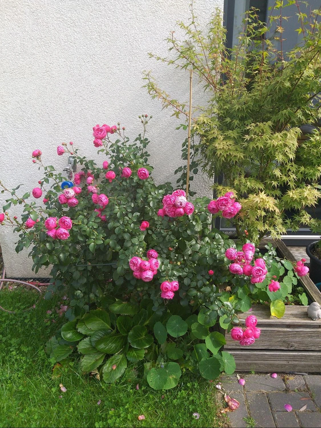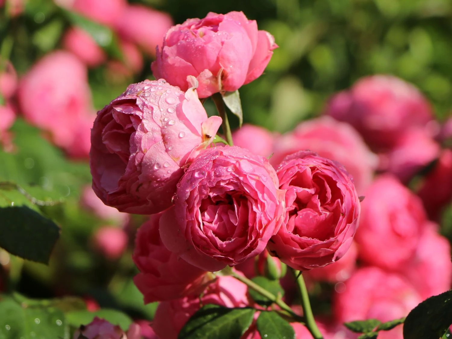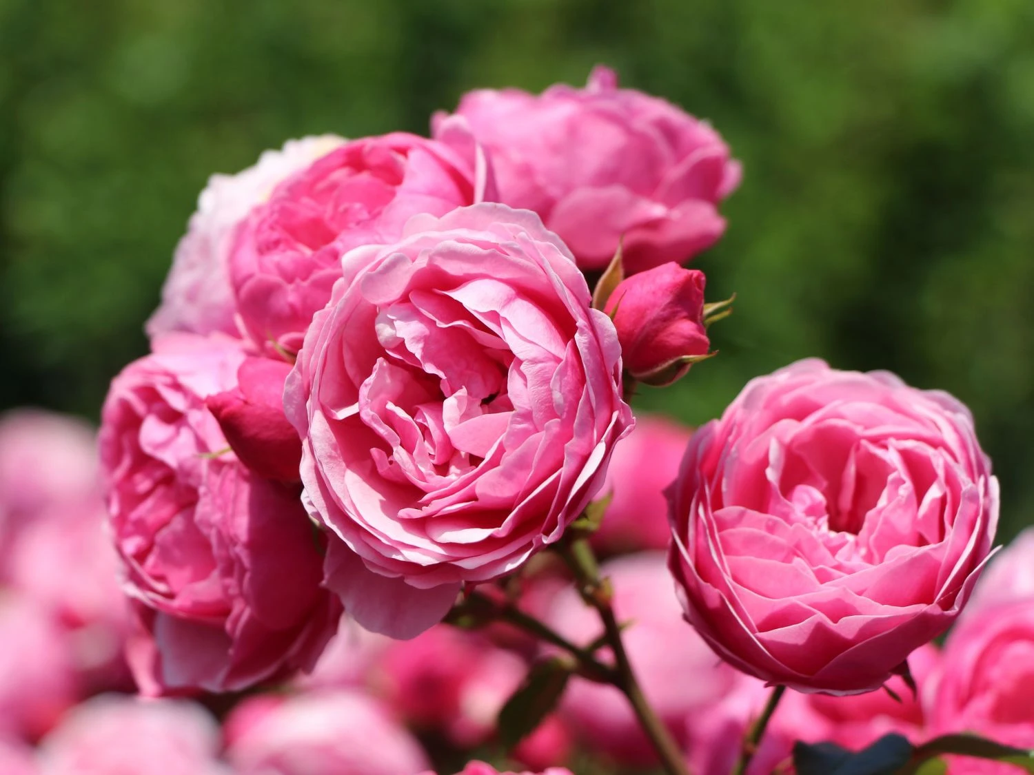 Die Beetrose ‚Pomponella‘ ® vereint in sich die schönsten Eigenschaften, die ein Rosenliebhaber von einer Rose erwartet. Die dunkelrosa Farbe ihrer herrlichen Blütenblätter gibt ihr ein klassisches Flair, die Pompon-Blüten verleihen ihr Stil. Wenn sich im Juni an dem aufrecht wachsenden Strauch die ersten zarten Knospen öffnen, entfaltet die Pflanze neben einem aparten Anblick einen herrlichen Duft. Das Bouquet der (bot.) Rosa ‚Pomponella‘ ® ADR-Rose ist zurückhaltend und unaufdringlich und verströmt besondere Reize. Die herrliche Beetrose blüht kräftig und legt ihre typischen Blütenköpfe in großer Zahl nach. Sie begeistern bis in den August. Die gefüllten Blüten stehen zum Teil bis zum Herbst hinein am Strauch. Dort bilden sie einen aparten Kontrast zum mittelgrünen, glatten Laub. Bis zu 90 Zentimeter Höhe entwickelt die Rosa ‚Pomponella‘ ® ADR-Rose. Mit ihrer lebhaften Attraktivität verleiht sie dem Garten ein sommerliches Flair. Als hübsche Beetpflanze erscheint die Beetrose ‚Pomponella‘ ® apart als Einzelpflanze. Im Kontrast mit blühenden Stauden wertet sie Beete und Rabatten gekonnt auf. Als Gruppe gepflanzt kreiert der Gartenfreund ein Blütenmeer in intensivem Rosa. Bis zu vier Pflanzen passen auf einen Quadratmeter. So haben sie genügend Raum, um ihre Pracht zu entfalten. Eine Kombination mit andersfarbig blühenden Beetrosen bietet sich gleichermaßen an. So erscheinen die Blüten als bunte Melange.