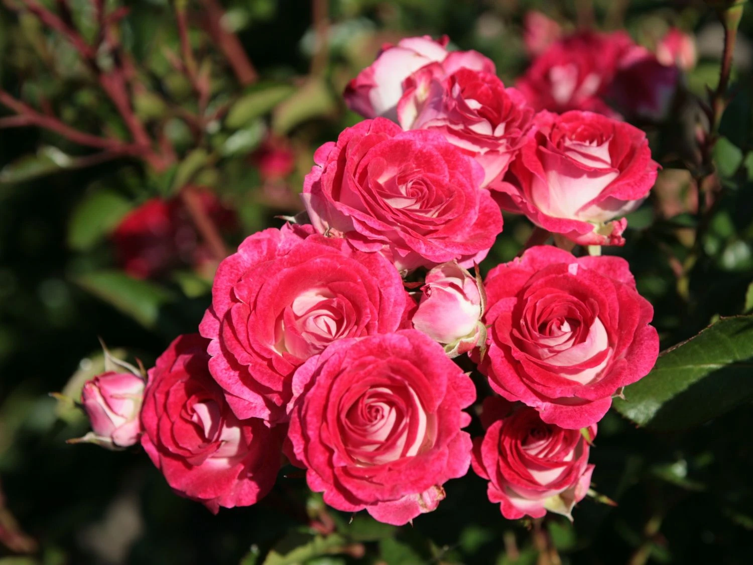 Auch im Kübel verschönert dieses Glanzstück alles um sich herum. So bereichert die Beetrose Terrassen und Balkone mit ihrer blühenden Pracht. Die Blüten der Rosa ‚Schöne Koblenzerin‘ ® / ‚Marie Rottrová‘ bezaubern in ihrer Fülle, ihrer Optik und durch ihre Widerstandskraft. In üppigen Dolden erscheinen die gefüllten Blüten. Jede der kleinen Einzelblüten schmückt sich mit einer Vielzahl an Blütenblättern in schönstem Rot. Zudem sind sie mit zarten weißen Sprenkeln versehen. Die Blütenfarbe variiert mit den Temperaturen. An kälteren Tagen sind die Blüten mittelrot-creme, an warmen Tagen schimmern sie rosa-cremeweiß. Die schönen Blüten sitzen bis zu zwölft in Dolden und erwecken einen romantischen Eindruck. Die Blüten der Beetrose ‚Schöne Koblenzerin‘ ® / ‚Marie Rottrová‘ zeichnen sich als extrem haltbar aus. Sie halten sich lange in ihrer Form und verblühen weniger schnell. Leichte Regengüsse schaden ihnen nicht, sie gehen gereinigt und erfrischt daraus hervor. Selbst nach dem Öffnen zeigen sich die Blüten stabil und haltbar. Daneben ist diese wundervolle Sorte gut winterhart. Sie benötigt keinen besonderen Schutz um die kalte Jahreszeit gut zu überstehen. Dennoch schadet es nicht, den Bereich rund um die Wurzeln anzuhäufeln, weil sich die Kälte des Winters im Vorwege nicht einschätzen lässt.