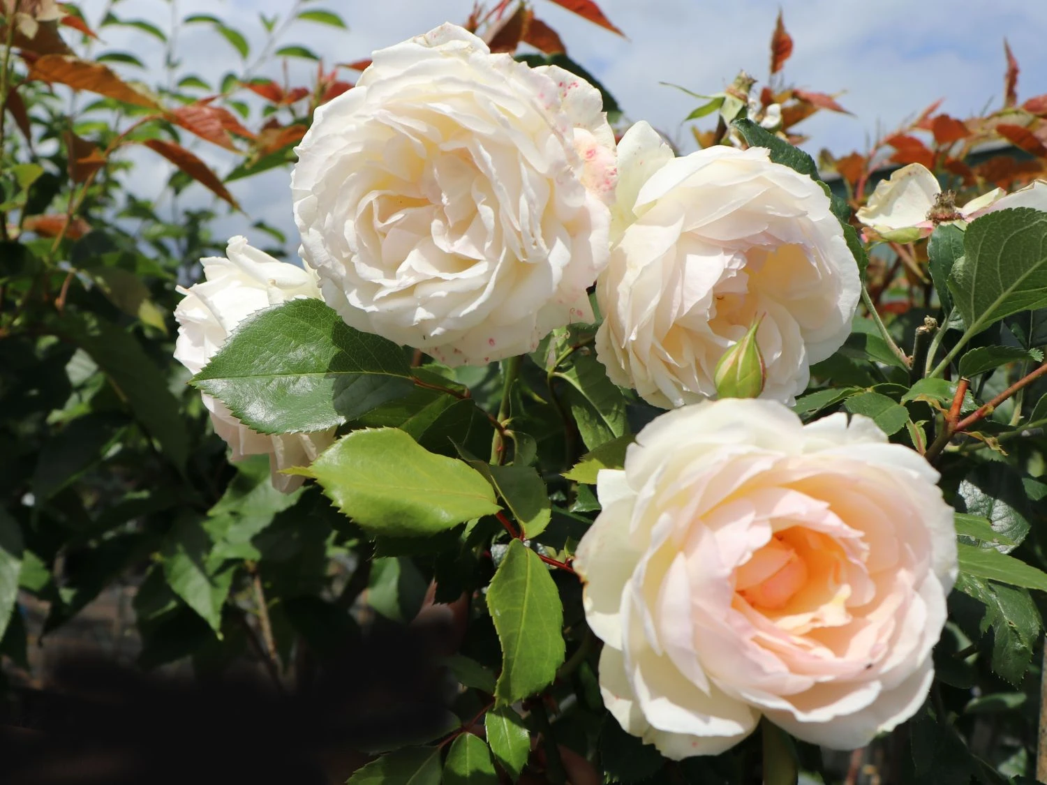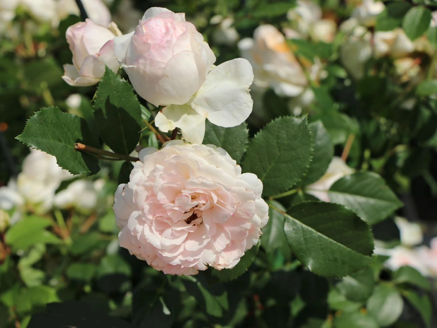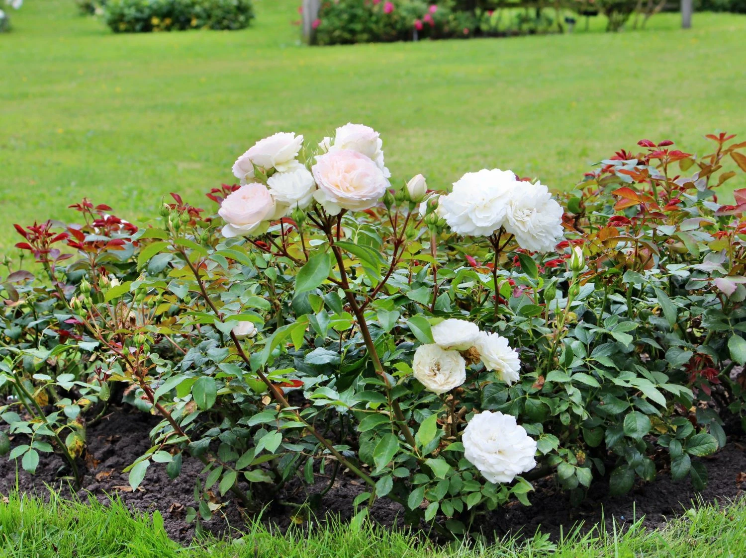 Die Blätter der Beetrose ‚Stephanie Baronin zu Guttenberg‘ sind gefiedert und dunkelgrün. Dadurch heben sie das cremige Weiß der Blüten perfekt hervor. Die Rosa ‚Stephanie Baronin zu Guttenberg‘ bevorzugt einen sonnigen bis halbschattigen Standort im Garten. Am besten entwickelt sich die Beetrose auf einem humosen, frischen und tiefgründigen sowie gut drainierten Boden. Bei sommerlicher Hitze benötigt die Rose regelmäßige Wassergaben. Der Gärtner schneidet die verblühten Blüten regelmäßig ab, damit das Erscheinungsbild perfekt bleibt und die Beetrose frisch wieder austreibt. Die Beetrose ‚Stephanie Baronin zu Guttenberg‘ ist ein aparter Solitär. Fabelhaft wirkt sie auch in einer Gruppe von 3 bis 5 Exemplaren pro Quadratmeter. Die Rose ist bedingt winterhart. Ein Winterschutz aus Vlies oder Mulch ist bei Kahlfrösten und in ungünstigeren Lagen empfehlenswert.