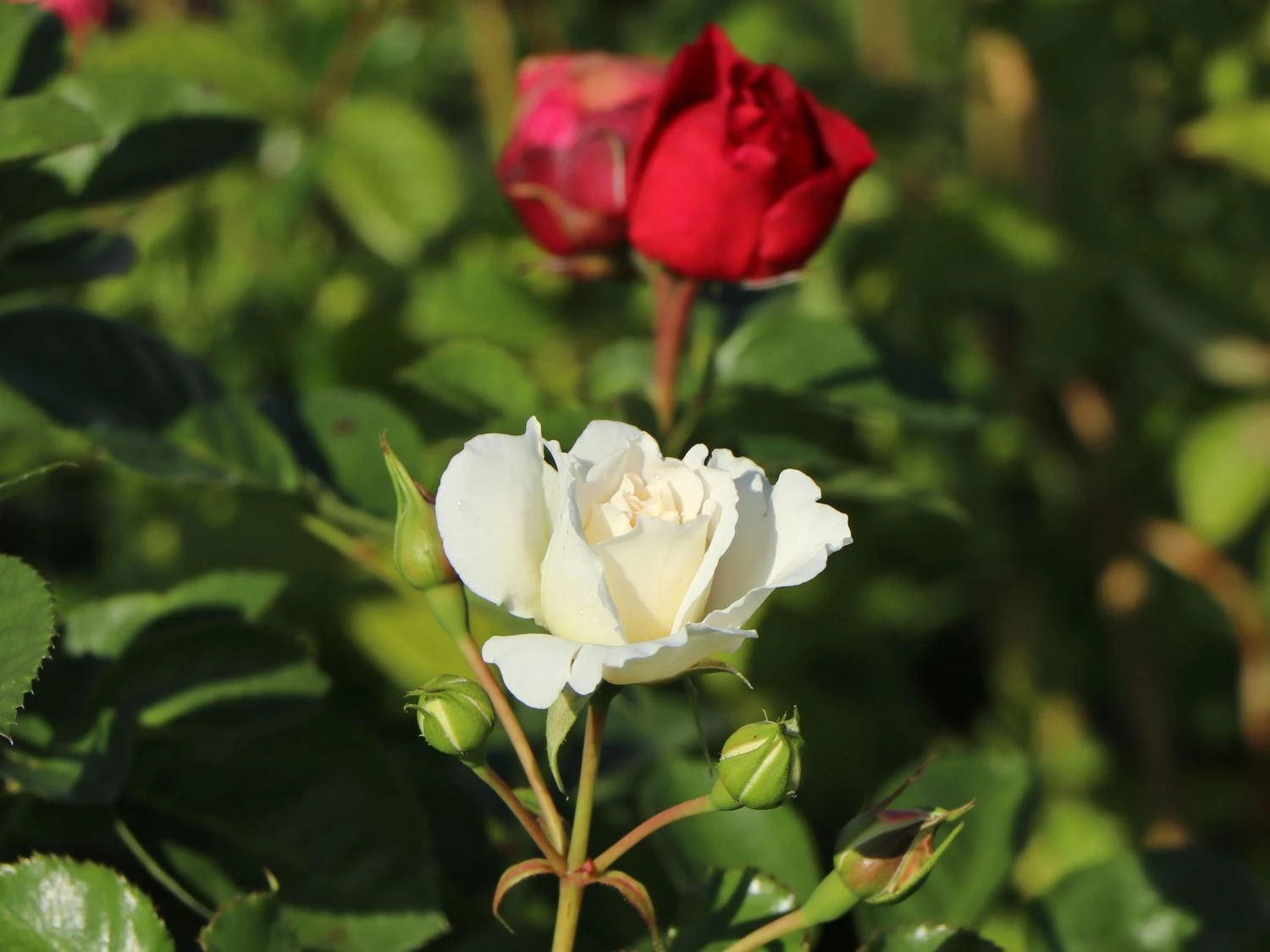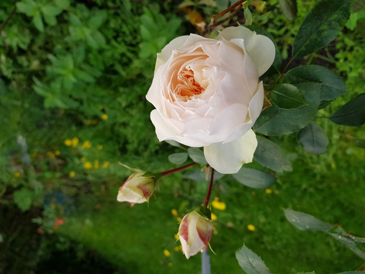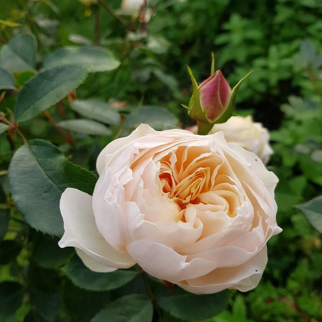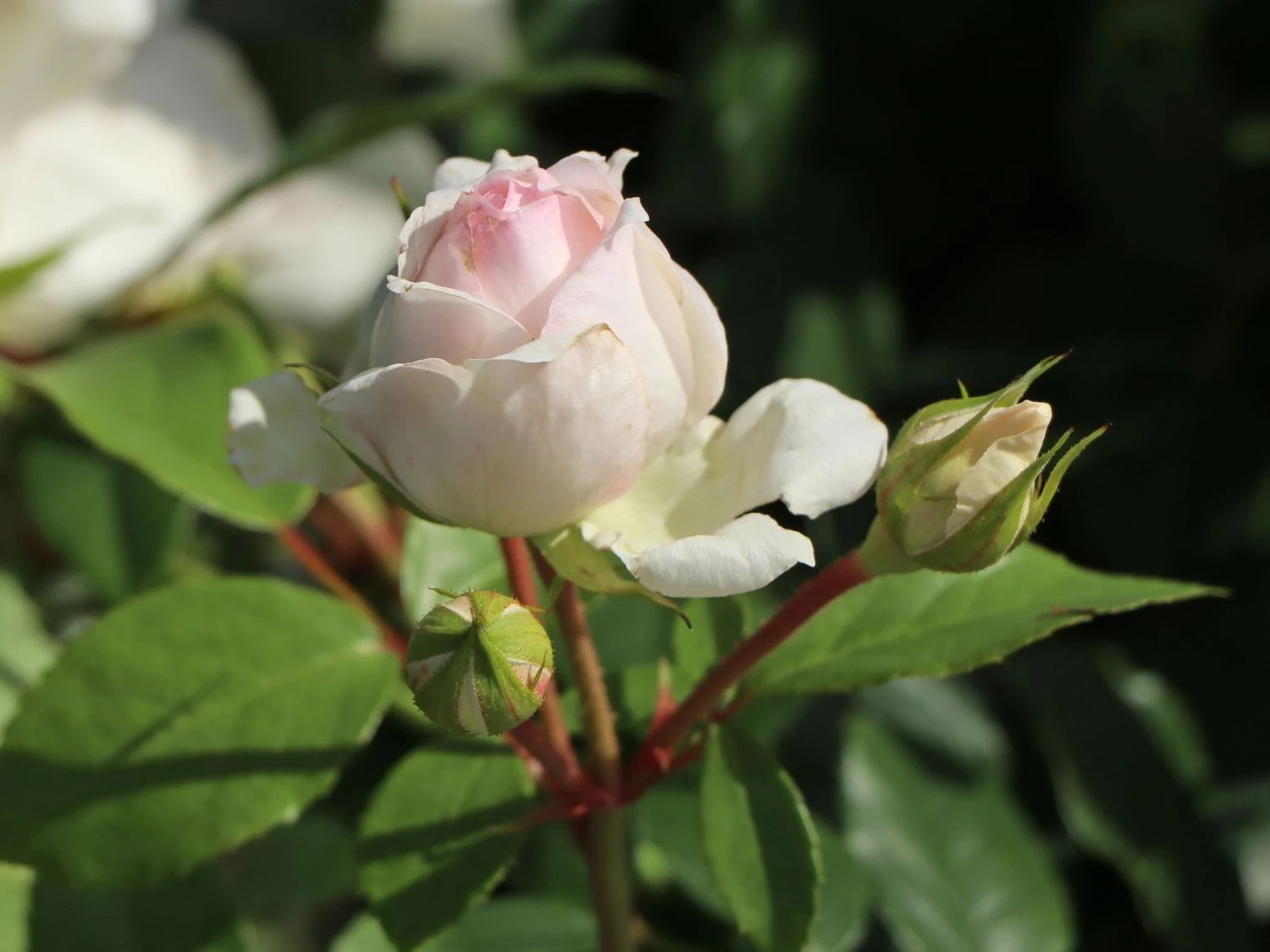 Die Blätter der Beetrose ‚Stephanie Baronin zu Guttenberg‘ sind gefiedert und dunkelgrün. Dadurch heben sie das cremige Weiß der Blüten perfekt hervor. Die Rosa ‚Stephanie Baronin zu Guttenberg‘ bevorzugt einen sonnigen bis halbschattigen Standort im Garten. Am besten entwickelt sich die Beetrose auf einem humosen, frischen und tiefgründigen sowie gut drainierten Boden. Bei sommerlicher Hitze benötigt die Rose regelmäßige Wassergaben. Der Gärtner schneidet die verblühten Blüten regelmäßig ab, damit das Erscheinungsbild perfekt bleibt und die Beetrose frisch wieder austreibt. Die Beetrose ‚Stephanie Baronin zu Guttenberg‘ ist ein aparter Solitär. Fabelhaft wirkt sie auch in einer Gruppe von 3 bis 5 Exemplaren pro Quadratmeter. Die Rose ist bedingt winterhart. Ein Winterschutz aus Vlies oder Mulch ist bei Kahlfrösten und in ungünstigeren Lagen empfehlenswert.
