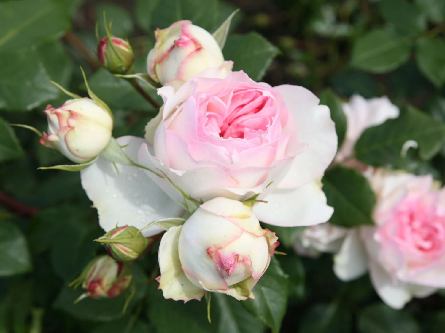 Die Beetrose ‚Stephanie Baronin zu Guttenberg‘ ist eine Beetrose mit cremeweißen Blüten. Mit ihren gefüllten Blüten begeistert (bot.) Rosa ‚Stephanie Baronin zu Guttenberg‘ den Betrachter. Die Blüten versprühen ein elegantes, nostalgisches Flair. Im Mai zeigen sich die ersten Knospen, die sich im Juni öffnen. Sie entfalten sich zu zauberhaften Blüten. Bis in den September produziert die Beetrose unermüdlich neue Blüten. Diese stehen in Dolden an den Zweigen, sind cremeweiß, in der Mitte zartrosa und werden 5 bis 10 cm groß. Die Beetrose ‚Stephanie Baronin zu Guttenberg‘ wächst aufrecht und breitbuschig. Die wuchsfreudige Rose erreicht eine Wuchshöhe von 50 bis 80 cm und im Durchmesser rund einen halben Meter. Sie ist ein hinreißender Anblick in Beeten und Rabatten. Auch im Kübel wirkt sie fantastisch.