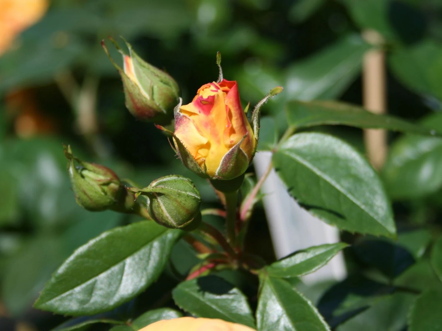 Die Beetrose ‚Tantaus Bernstein-Rose‘ ® bringt mit ihren edel geformten, romantisch gefärbten Blüten ein nostalgisches Flair in den Garten. Sie zeichnet sich durch einen reichen Flor und eine lange Blütezeit aus. Bereits im Mai öffnet die öfter- und frühblühende Sorte ihre ersten Knospen und erfreut das Auge bis September mit ihrem hinreißenden Blütenschmuck. Die acht bis zehn Zentimeter großen Blüten sind stark gefüllt und schalenförmig. Sie präsentieren sich in einem warmen, eleganten Bernsteingelb. Mit ihrem leichten, anmutigen Rosenduft betören sie die Sinne. (Bot.) Rosa ‚Tantaus Bernstein-Rose‘ ® schmückt sich mit glänzend dunkelgrünem Laub, das einen eindrucksvollen Kontrast zu den hellen Blüten bildet. Ihre Blätter sind am Rand gesägt, gefiedert, oval geformt und vorn zugespitzt. Die Beetrose ‚Tantaus Bernstein-Rose‘ ® wächst aufrecht, buschig und kompakt. Sie erreicht eine Höhe von 50 bis 80 cm und wird 35 bis 40 cm breit. Im Jahr 1987 brachte der bekannte Rosenzüchter Tantau die Sorte auf den Markt.