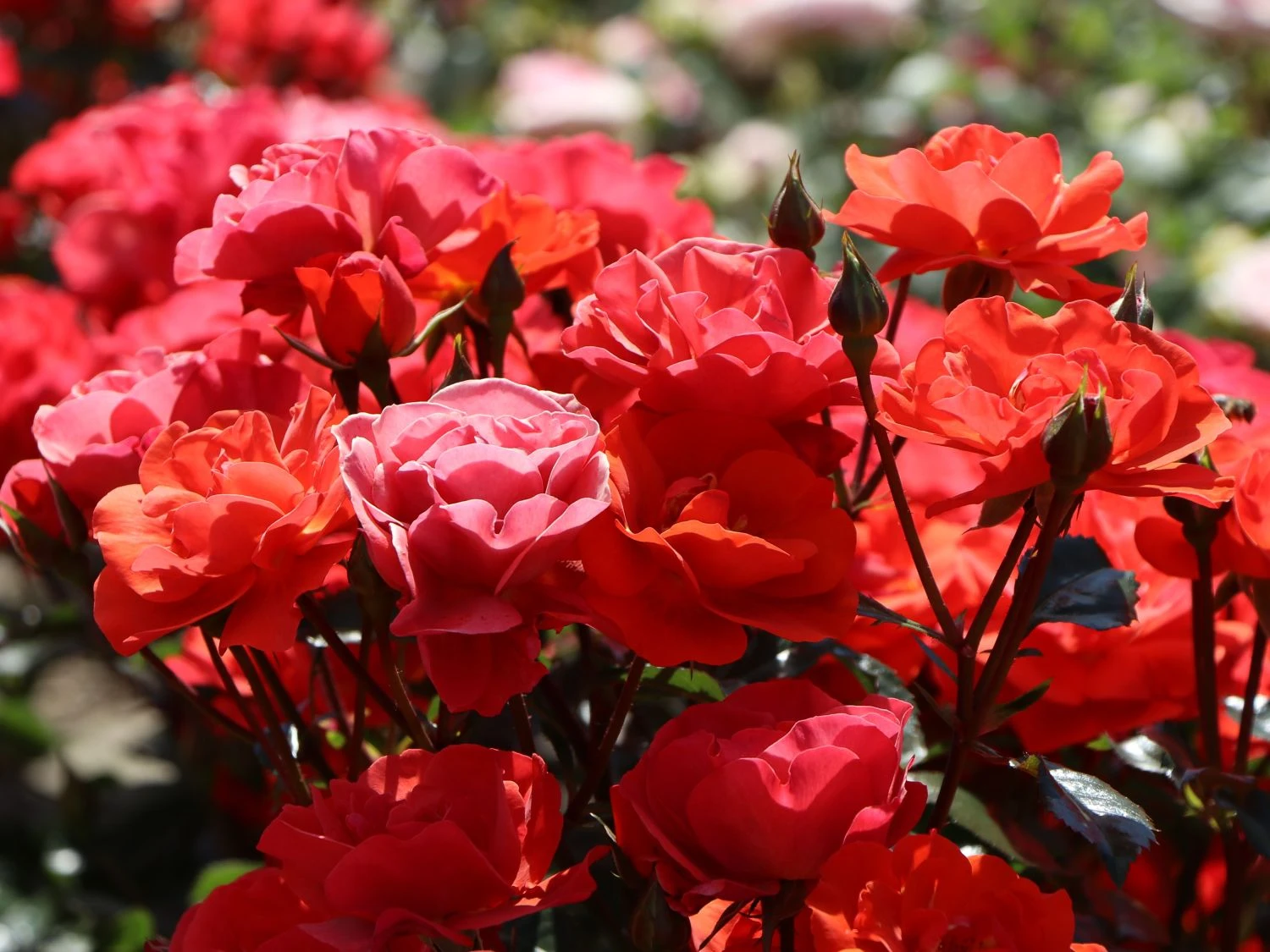 Mit der Beetrose ‚Westpoint‘ ® lässt sich im Garten ein optisches Leuchtfeuer entzünden. Kein Garten vorhanden? Kein Problem! Denn Rosa ‚Westpoint‘ ® entfaltet ihren charmanten Zauber auch in einem Kübel. Somit ist diese fantastische Beetrose auch eine Bereicherung für Balkone und Terrassen, solange hier ausreichend Sonne vorhanden ist. Der Wuchs der Beetrose ‚Westpoint‘ ® ist kompakt und herrlich buschig. Dadurch ist sie an jeder Stelle ein schöner Blickfang und lässt sich perfekt in jede Gartensituation integrieren. Die Beetrose ‚Westpoint‘ ® ist am besten an einem sonnigen bis halbschattigen Standort aufgehoben. Der ideale Boden ist nährstoffreich, humos, locker, frisch bis feucht und gut durchlässig. Rosen sind Tiefwurzler, das heißt, sie möchten ihre Wurzeln sehr tief in den Boden strecken. Um dies auch auf dem Balkon oder auf der Terrasse zu ermöglichen, ist es wichtig, der Rose ein ausreichend hohes Gefäß zu bieten. Auf einer größeren Fläche passen drei bis vier Exemplare auf einen Quadratmeter zusammen. Auf diese Weise lässt sich das großartige Leuchtfeuer der halbgefüllten Blüten noch verstärken. In der Höhe wächst die Rose auf rund 60 bis 70 Zentimeter heran. In der Breite ist mit 30 bis 50 Zentimetern zu rechnen. Der leichte Blütenduft ist angenehm blumig und sorgt an jeder Stelle für einen herrlichen Hauch des Sommers.