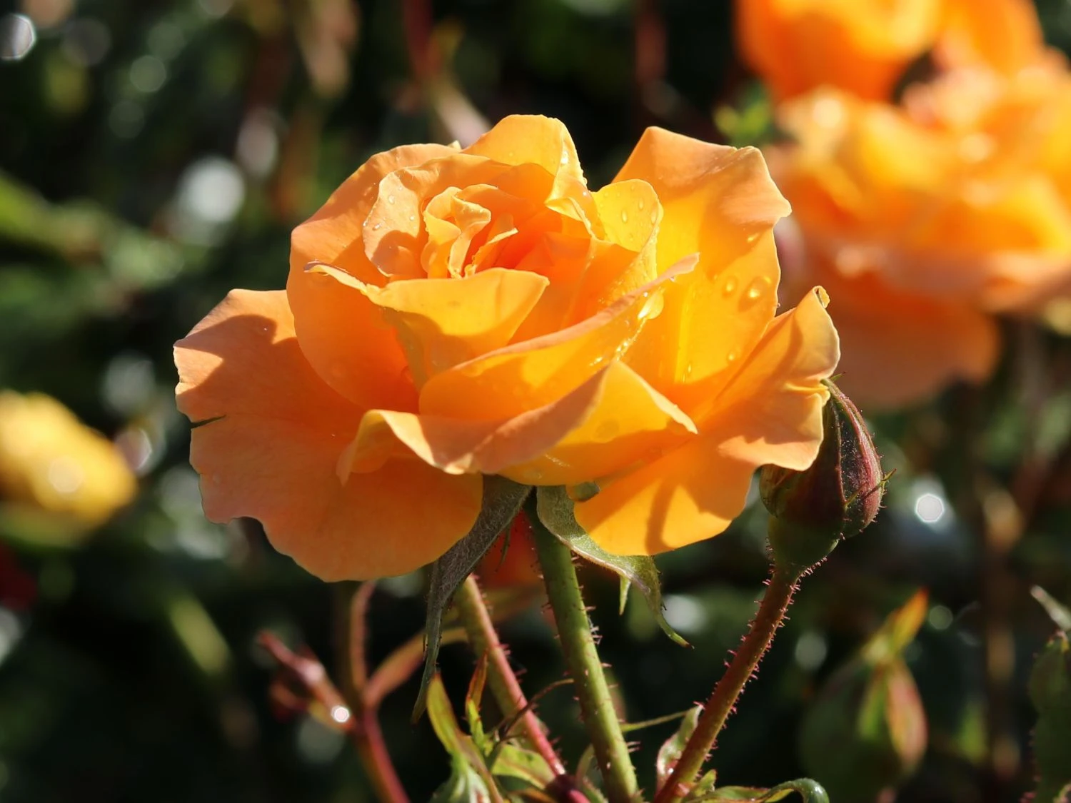 Die Rosa ‚Westzeit‘ ® ADR-Rose verschönert mit ihrem romantischen Charme Beete, Rabatten oder Freiflächen. Auch neben Buchsbaum und zarten Gräsern kommt diese Beetrose groß heraus. Im Pflanzkübel setzt sie auf Balkon oder Terrasse und am Hauseingang tolle Akzente. Außerdem verschönert die Beetrose ‚Westzeit‘ ® als Schnittpflanze in der Vase jeden Strauß. Ihre locker gefüllten Blüten in orange-apricot sind wunderschön anzusehen. Auf einem Quadratmeter finden drei bis vier Exemplare ihren Platz. Der Gärtner achtet beim Pflanzen darauf, dass die Veredelungsstelle gute fünf Zentimeter tief im Boden ist und hält einen Pflanzabstand von rund 50 Zentimeter zu den Nachbarpflanzen ein. Lediglich bei Kahlfrösten bedeckt der Rosenfreund den Boden mit einer Schicht Reisig oder Mulch. Der ideale Zeitpunkt für einen Rückschnitt der Beetrose ‚Westzeit‘ ® ist das Frühjahr. Der Gärtner kürzt die Triebe um rund die Hälfte zurück. Danach bedankt sich die Beetrose mit einem frischen Neuaustrieb. Das Einpflanzen ist ganzjährig an frostfreien Tagen möglich.