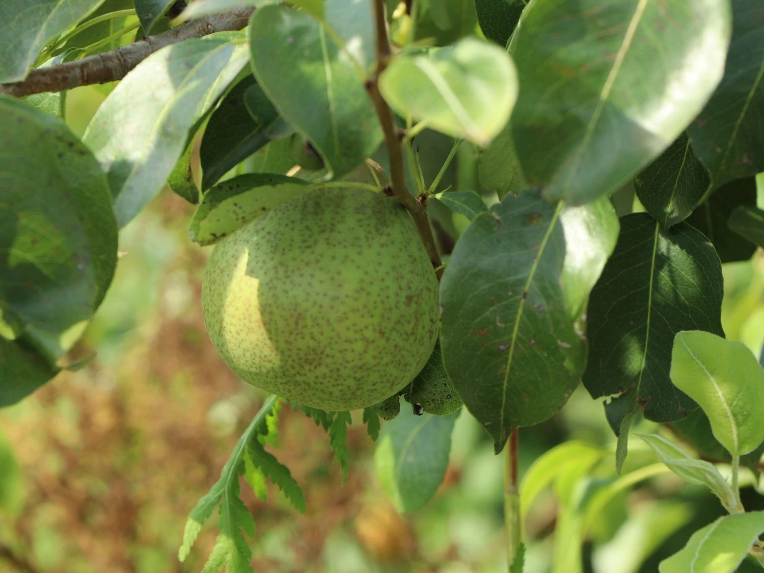 Um bei der Birne ‚Champagner Bratbirne‘ eine besonders ertragreiche Ernte zu erzielen, ist der richtige Standort nicht zu vernachlässigen. Bevorzugt steht das Obstgehölz an einem sonnigen bis halbschattig gelegenen Bereich und benötigt einen lockeren, nährstoffreichen, leicht feuchten und gut durchlässigen Boden. Pyrus communis ‚Champagner Bratbirne‘ ist eine pflegeleichte und winterharte Pflanze. Birnenbäume sind wärmeliebend und regelmäßige Rückschnitte sorgen für eine gute Verzweigung und das Anregen einer großen Blütenbildung. Im Herbst zeigt sich das sommergrüne Laub nochmal in einem leuchtenden Gelb, bevor es vor der Winterruhe zu Boden fällt. Die Birne ‚Champagner Bratbirne‘ ist regional auch als ‚Glasbirne‘, ‚Bollenbirne‘, ‚Ciderbirne‘ oder als ‚Ganzlaubige Bratbirne‘ bekannt.