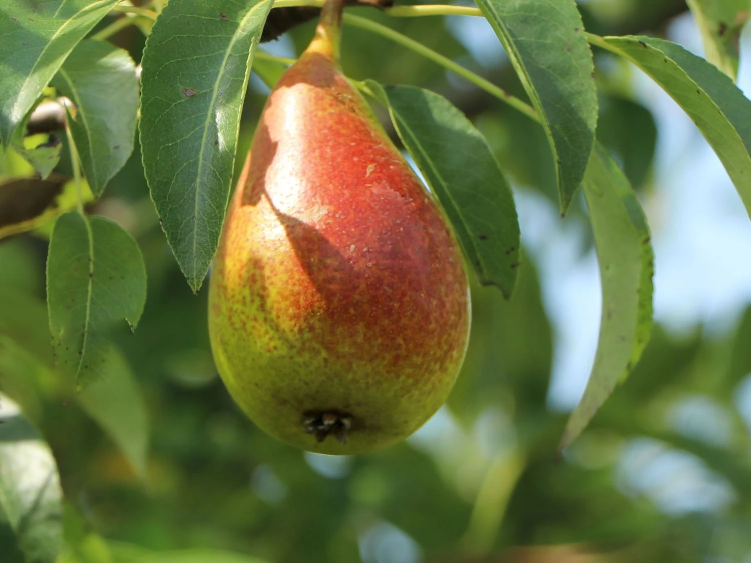 Ab Ende September reifen die charakteristischen, länglichen Früchte. Jede Birne bringt ein Gewicht von rund 200 Gramm auf die Waage. Ihr Fruchtfleisch ist außergewöhnlich süß-saftig und verströmt bei Genuss ein kräftiges Birnenaroma. Ebenso einzigartig wie ihre Form zeigt sich ihre Schale an der sonnenbeschienen Seite in einem kräftigen Dunkelrot. Reife Früchte zeichnen sich durch eine gelbgrüne Farbe aus. Die Birne ‚Talgar Beauty‘ wächst pyramidenförmig auf eine Höhe von vier Metern. Um den kräftigen Haupttrieb verteilen sich die seitlichen, waagerechten Äste. Vor dem Laubaustrieb Ende April öffnen sich die weißen Blüten in dichten Büscheln. Gewöhnlich zeigt sich der Baum zwei Wochen in seinem Blütenflor. Diese Sorte benötigt eine zweite Befruchtersorte in der Nähe. Als Bestäuber haben sich die Sorten ‚Goverla‘, ‚Conference‘ und ‚Pet Klapp‘ bewährt. An einem sonnigen, windgeschützten Standort findet die Birne ‚Talgar Beauty‘ beste Grundlagen für eine ertragreiche Ernte. Diese Sorte toleriert Kälte- oder Hitzeperioden und kommt mit weniger günstigen Standorten bestens zurecht. Ideal ist ein humusreicher, frischer Boden mit einem guten Wasserabzug. Als Tiefwurzler benötigt die Pflanze ein bis in große Tiefen reichendes, lockeres Erdreich. Ausreichende Nährstoffe erhält Pyrus communis ‚Talgar Beauty‘ jedes Frühjahr mit einer kräftigen Schicht Kompost am äußeren Rand der Baumscheibe. Gegen die häufigsten Pilzschäden ist die Birne ‚Talgar Beauty‘ praktisch immun. Wie alle Obstsorten profitiert diese Sorte von regelmäßigen Schnittmaßnahmen.