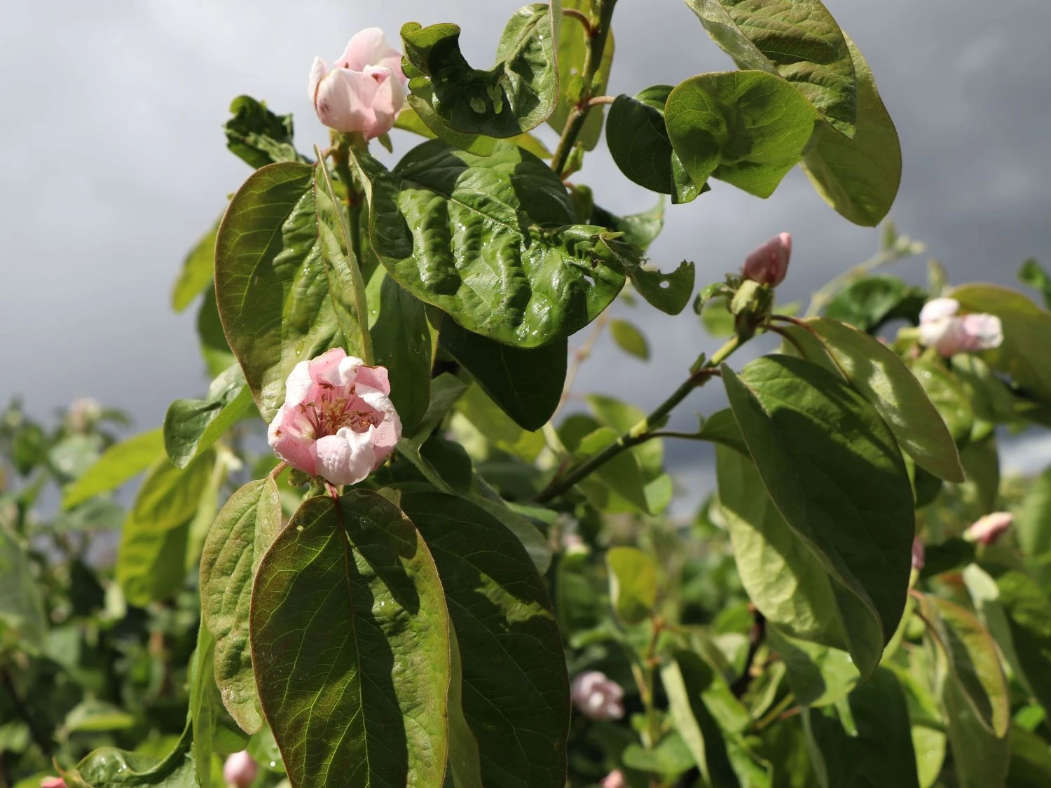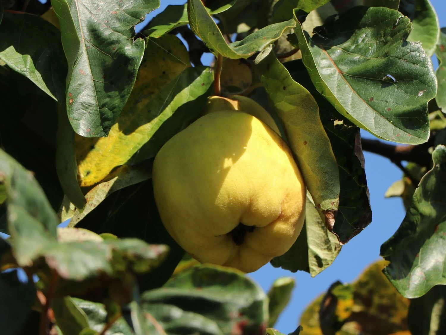 Die Quitte ‚Vranja‘ wächst langsam. Sie entwickelt einen strauchartigen, mittel verzweigten Wuchs. Das sommergrüne Gehölz wächst aufrecht und ausladend. Es bildet eine flache Krone. Dabei erreicht sie Wuchshöhen von drei bis vier Metern und ähnliche Wuchsbreiten. Mit den Jahren wächst dieses Gehölz zu einer echten Augenweide heran. Mit seinen vielseitig verwendbaren, aromatischen Früchten und den wunderschönen Blüten kann es locker mit anderen Obstgehölzen mithalten. Nicht umsonst findet die Birnen-Quitte ‚Vranja‘ mehr und mehr Liebhaber und erlebt eine wahre Renaissance. Aufgrund seiner Größe, eignet sich Cydonia oblonga ‚Vranja‘ gut für kleinere Gärten. Seine Blätter sind mattgrün, glänzend und auf den helleren Blattunterseiten filzig behaart. Sie bilden einen wunderschönen Kontrast zu den farbenprächtigen Blüten und Früchten. Im Herbst präsentiert sich dieser Quittenbaum für kurze Zeit mit gelbem Herbstlaub, bevor sich die Blätter verabschieden und abfallen. Beste Voraussetzungen für eine ertragreiche Ernte bietet ein gut gewählter Standort, die Birnen-Quitte ‚Vranja‘ benötigt ausreichend Platz. Beste Pflanzzeit für Cydonia oblonga ‚Vranja‘ ist im Frühjahr und im Spätherbst. Im Frühjahr gepflanzte Exemplare benötigen den Sommer über regelmäßige Wassergaben. Pflanzen, die sich in einem Container befinden, pflanzt der Gärtner das ganze Jahr, solange der Boden nicht durchgefroren ist. Gut eingewurzelt, ist nur bei andauernder Hitze und trockenen Böden zusätzliches Wässern empfehlenswert. Am wohlsten fühlt sich das Gehölz an warmen und sonnigen Standorten in tiefgründigen, nährstoffreichen Böden. Ein weiterer Vorteil ist, dass dieser wunderschöne Obstbaum keinen weiteren Pflanzpartner benötigt. Er bedarf keiner weiteren Sorte zum Ausbilden von Früchten. Gelegentliches Auslichten der Birnen-Quitte ist empfehlenswert. Nach der Ernte sind die Früchte ab Oktober und bis November verwertbar.