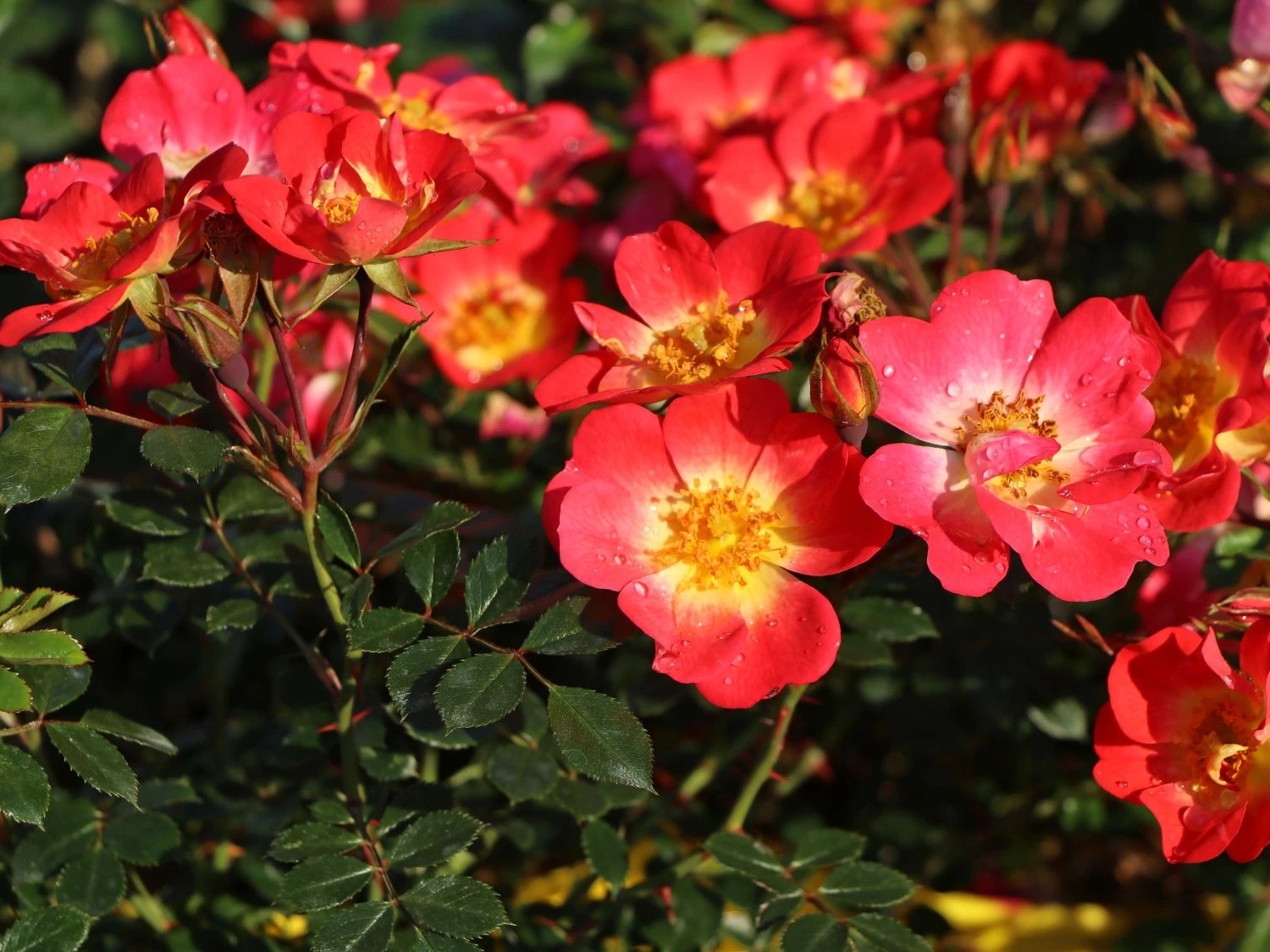 Als niedrig wachsende Rose erreicht die Bodendecker-Rose ‚Bienenweide ® Bicolor‘ eine Wuchshöhe von 40 bis 60 Zentimetern. Damit eignet sie sich für vordere Beetbereiche. Gerne steht sie in Gruppen mit anderen Bienenweide ® -Rosen zusammen. Auf einen Quadratmeter pflanzt der Gärtner bis zu fünf Exemplare in einem Abstand von circa 40 Zentimetern. Auch ziert die schöne Bodendecker-Rose gemischte Beete mit Stauden und ergänzt deren Farbvielfalt. Da die Rosa ‚Bienenweide ® Bicolor‘ weniger ausladend wächst, dient sie gleichermaßen gut als Kübelpflanze und schmückt Terrasse oder Balkon. Mit ihren auffällig zweitönigen Blüten fällt sie an jedem Standort auf. Ein besonderes Spektakel bietet sich, wenn Bienenweide ®-Rosen verschiedener Farben zusammenstehen. Der Wuchs der Bodendecker-Rose ‚Bienenweide ® Bicolor‘ ist kompakt und buschig. Fast wirken die Rosen wie kleine Kissen. An ihren dichten Zweigen erscheint schönes Laub, das sehr blattgesund ist. Die Rosa ‚Bienenweide ® Bicolor‘ zeigt sich robust gegenüber Sternrußtau und Mehltau. Außerdem ist die schöne Rose selbstreinigend und ausgesprochen winterhart. Sie verträgt tiefe Minustemperaturen. Trotzdem bedenkt der achtsame Gärtner die Rose mit einem Vlies oder einer Schicht aus Reisig, sobald strenger Frost einsetzt. Auch ein Anhäufeln des Wurzelbereichs hat sich bewährt und bewahrt die Pflanze vor Schäden an den feinen Wurzeln. Als Standort für die Bodendecker-Rose ‚Bienenweide ® Bicolor‘ kommt ein sonniger Platz im Garten in Betracht. Sie lässt ihre Blüten gerne von den Sonnenstrahlen bescheinen und entfaltet ihre Pracht hier vollständig. An weniger sonnigen Orten erscheinen weniger der prächtigen, lachsrosa-gelben Blüten. Der Boden ist für die (bot.) Rosa ‚Bienenweide ® Bicolor‘ optimaler Weise tiefgründig und durchlässig, sodass keine Staunässe entsteht. Der Gärtner gießt sie regelmäßig, damit die kleine Rose durch trockene Phasen keinen Schaden nimmt. Bis in den Juli nimmt die Bodendecker-Rose ‚Bienenweide ® Bicolor‘ dankbar einen Rosendünger an. Ab August sollte auf eine Düngung verzichtet werden, da nur so die Pflanze zum Winter hin ausreifen und ihre volle Winterhärte erreichen kann.