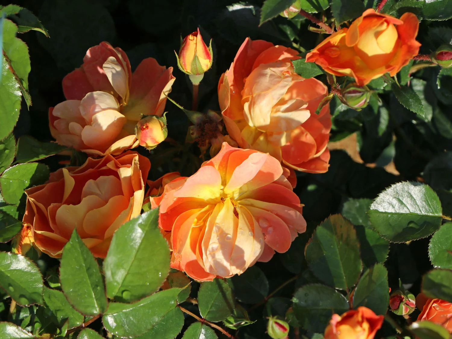 Die öfterblühende Bodendecker-Rose ‚Bienenweide ® mango‘ zeigt ihre Blüten durch den ganzen Sommer hindurch. Laufend zeigen sich neue Knospen, die – außen gelb und innen orange – für ein farbliches Schauspiel sorgen. Die Blüten erreichen einen Durchmesser von zwei bis vier Zentimeter und verströmen einen herrlichen Duft. Rosa ‚Bienenweide ® mango‘ (bot.) wächst an einem sonnigen Standort auf einem durchlässigen und nahrhaften Boden auf eine Höhe von 40 bis 60 cm heran. Auf einem Quadratmeter Fläche finden vier bis fünf Exemplare ausreichenden Platz, um sich in einer blühfreudigen Gruppe zu präsentieren. Die Bodendecker-Rose ‚Bienenweide ® mango‘ zeigt sich widerstandsfähig gegen die gefürchteten Pilzerkrankungen wie Mehl- oder Sternrußtau. Im Winter ist kein besonderer Schutz nötig, die Bodendecker-Rose ist gut winterhart. Im Frühjahr treibt sie auch ohne einen Rückschnitt rasch erneut durch. Diese schöne Sorte begeistert sowohl im Beet, im Kübel auf Balkon und Terrasse als auch in bunten Mischpflanzungen.