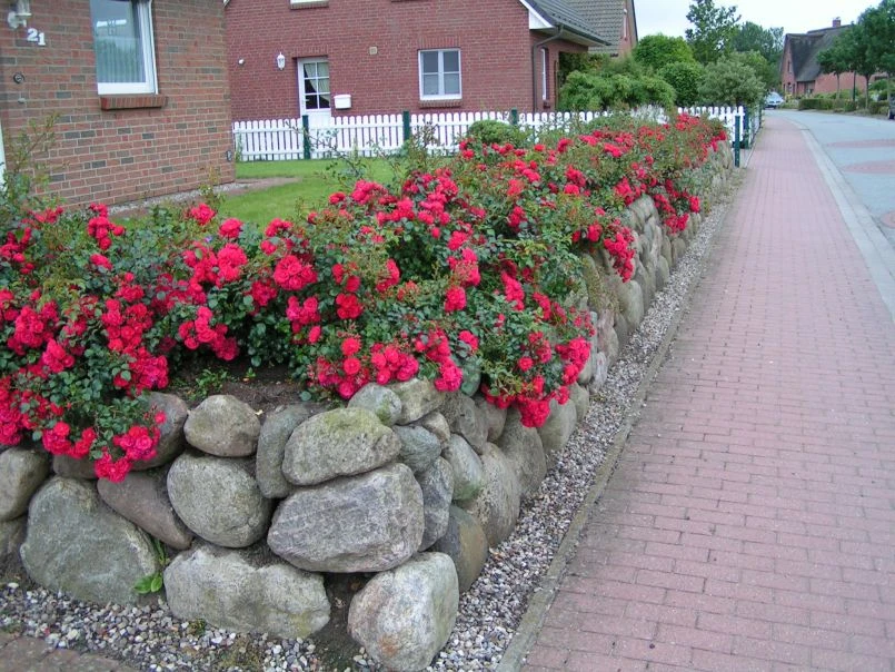 Die Bodendeckerrose ‚Gärtnerfreude‘ ® / ‚Toscana‘ ® entwickelt unzählige, kleine Blütenknospen, die sich ab Juni nach und nach öffnen. Ein rosaroter Farbrausch überzieht das Beet und bringt Freude an viele Standorte. Garten- und Rosenfreunde lieben (bot.) Rosa ‚Gärtnerfreude‘ ® / ‚Toscana‘ ®. Sie verwandelt Beete vor dem Haus in einen traumhaften Blütenrausch. Gerne erweckt sie Zufahrten mit ihren farbenfrohen Blüten zum Leben und setzt in einem Park unübersehbare Fixpunkte. Die Bodendeckerrose ‚Gärtnerfreude‘ ® / ‚Toscana‘ ® ist in kleinen Gärten zu Hause und eignet sich zum Gestalten großer Flächen in weiten Gärten und Parks. Sie gibt mit ihrer Blütenmenge den Sommercharakter vor. Die niedrige Rosa ‚Gärtnerfreude‘ ® / ‚Toscana‘ ® umspielt den Fuß von dunklen Hecken aus Nadelgehölzen.