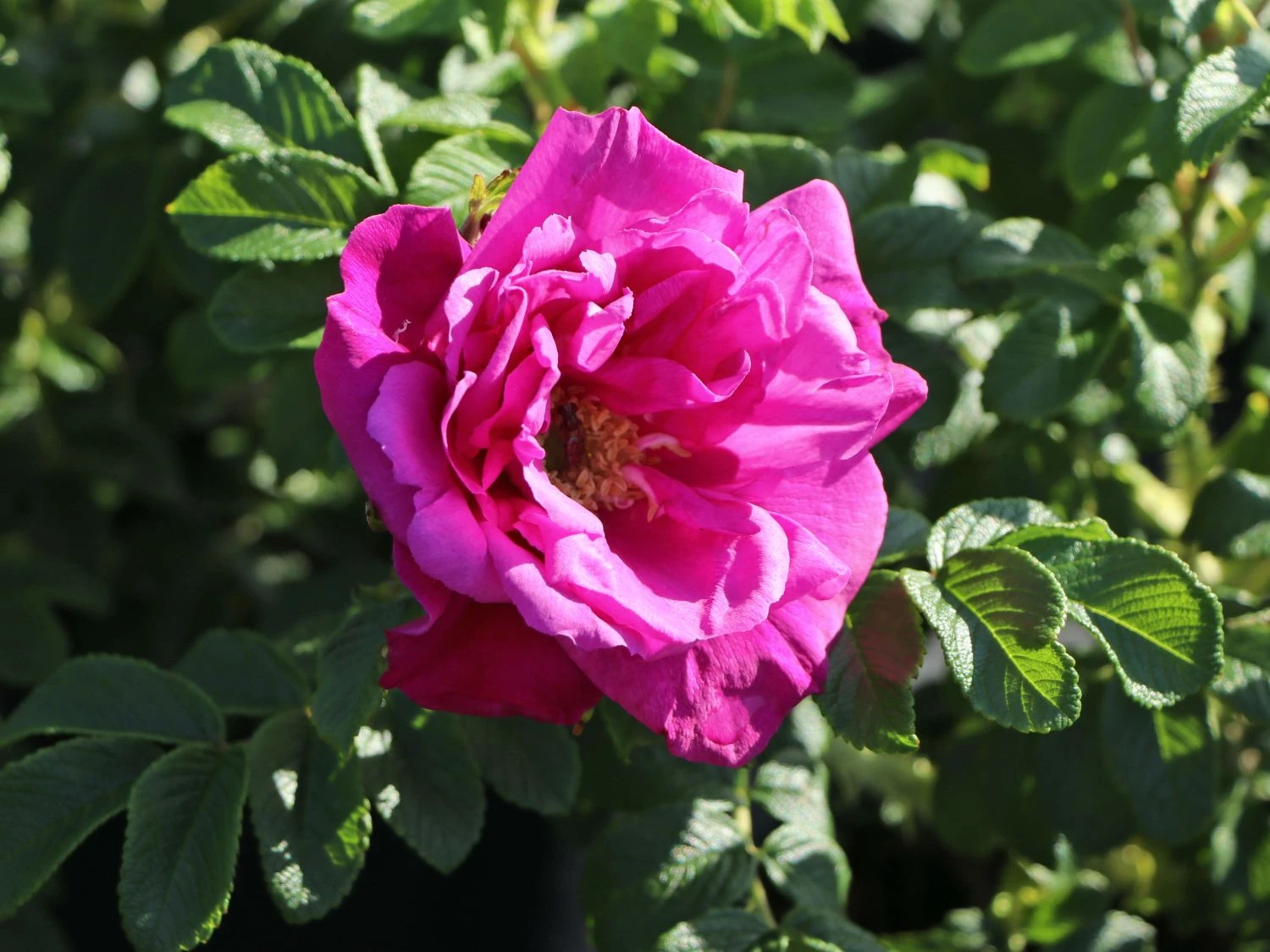 Die Bodendeckerrose ‚Rote Apart‘ mit ihren wunderbar pastellrosa Blüten erfreut jeden Betrachter. Die Blüten sind halbgefüllt und werden bis 10 cm groß. Sie strahlen farbintensiv von Juni bis September, oft sogar bis zum Frostbeginn. Das regelmäßige Entfernen der verwelkten Köpfe, lässt die Rosa ‚Rote Apart‘ laufend neue Blüten austreiben. Diese Rose verbreitet einen intensiven Rugosa-Duft und bietet eine reiche Nahrungsquelle für Bienen und andere Nützlinge. Die Bodendeckerrose ‚Rote Apart‘ trägt orange-rote bis schwarze, langhaftende Hagebutten, die essbar sind und wunderbar süßlich schmecken. Das kleine, hellgrüne Blattwerk ist eher unscheinbar. Das Laub wirft die schöne Bodendeckerrose im Herbst ab.