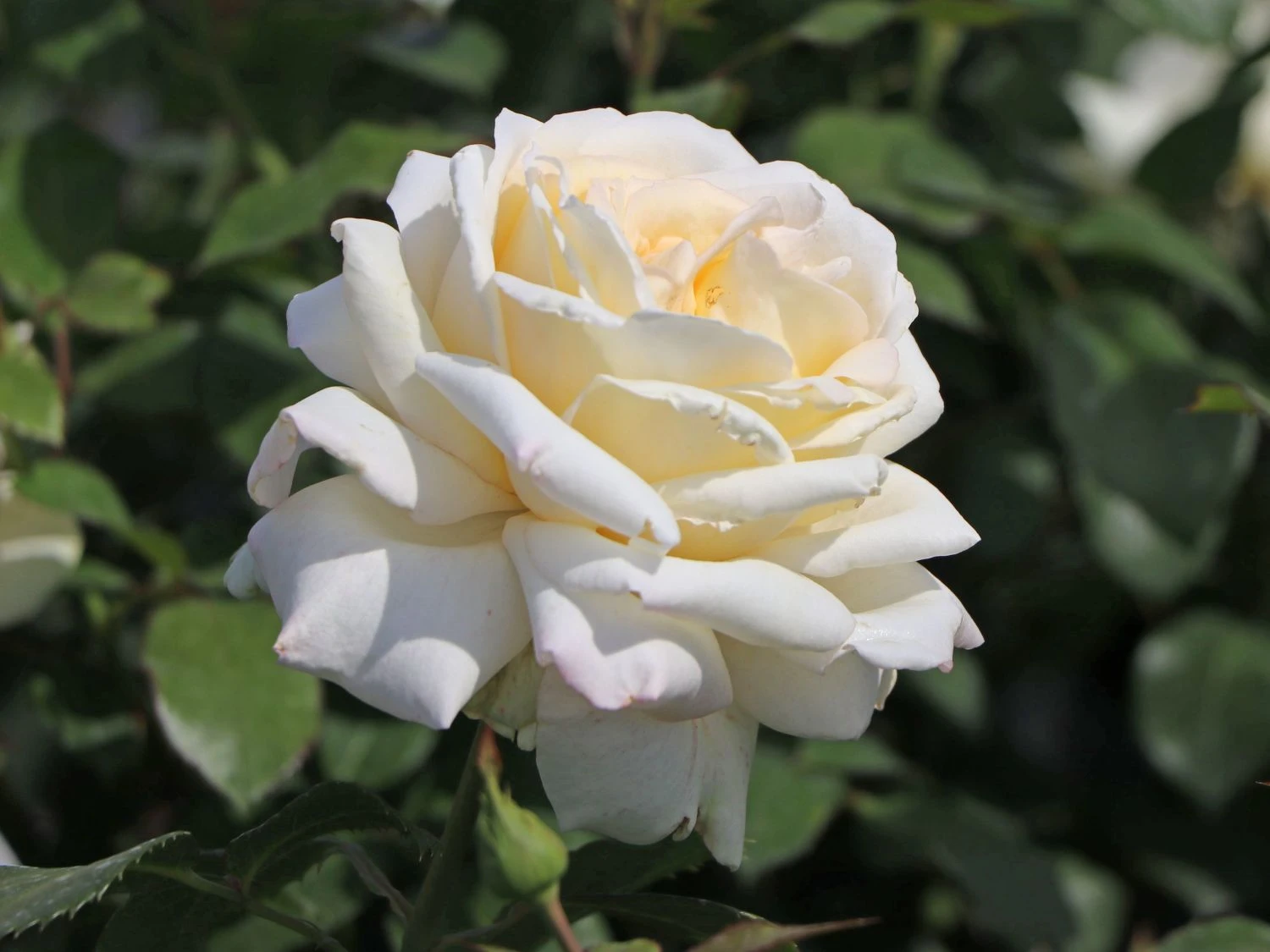 Die Edelrose ‚Ambiente‘ ® setzt mit ihren aparten Blüten romantische Akzente im Garten. Sie begeistert mit ihrer langen Blütezeit, den besonders lange haltbaren Blüten und der hervorragenden Blattgesundheit. Ihr herrlicher Flor verschönert den Garten von Juni bis September. Die schalenförmigen Blüten zeichnen sich durch ihre edle Form und die starke Blütenfüllung aus. Sie präsentieren sich in elegantem Cremeweiß, die Blütenmitte schimmert in zartem Cremegelb. Mit ihrem leichten, anmutigen Duft betören sie die Sinne. Das robuste Laub der Rosa ‚Ambiente‘ ® bildet mit seinem dunklen, glänzenden Grün einen phantastischen Kontrast zu den hellen Blüten. Es ist gefiedert, oval geformt und besitzt einen gesägten Rand. Gegenüber Blattkrankheiten ist das Laub unempfindlich. Die Edelrose ‚Ambiente‘ ® wächst aufrecht, buschig und gut verzweigt. Ihre Höhe liegt zwischen 70 und 80 Zentimetern, die Breite beträgt 40 bis 50 Zentimeter. Im Jahr 2001 brachte der Züchter Noack die Sorte auf den Markt.