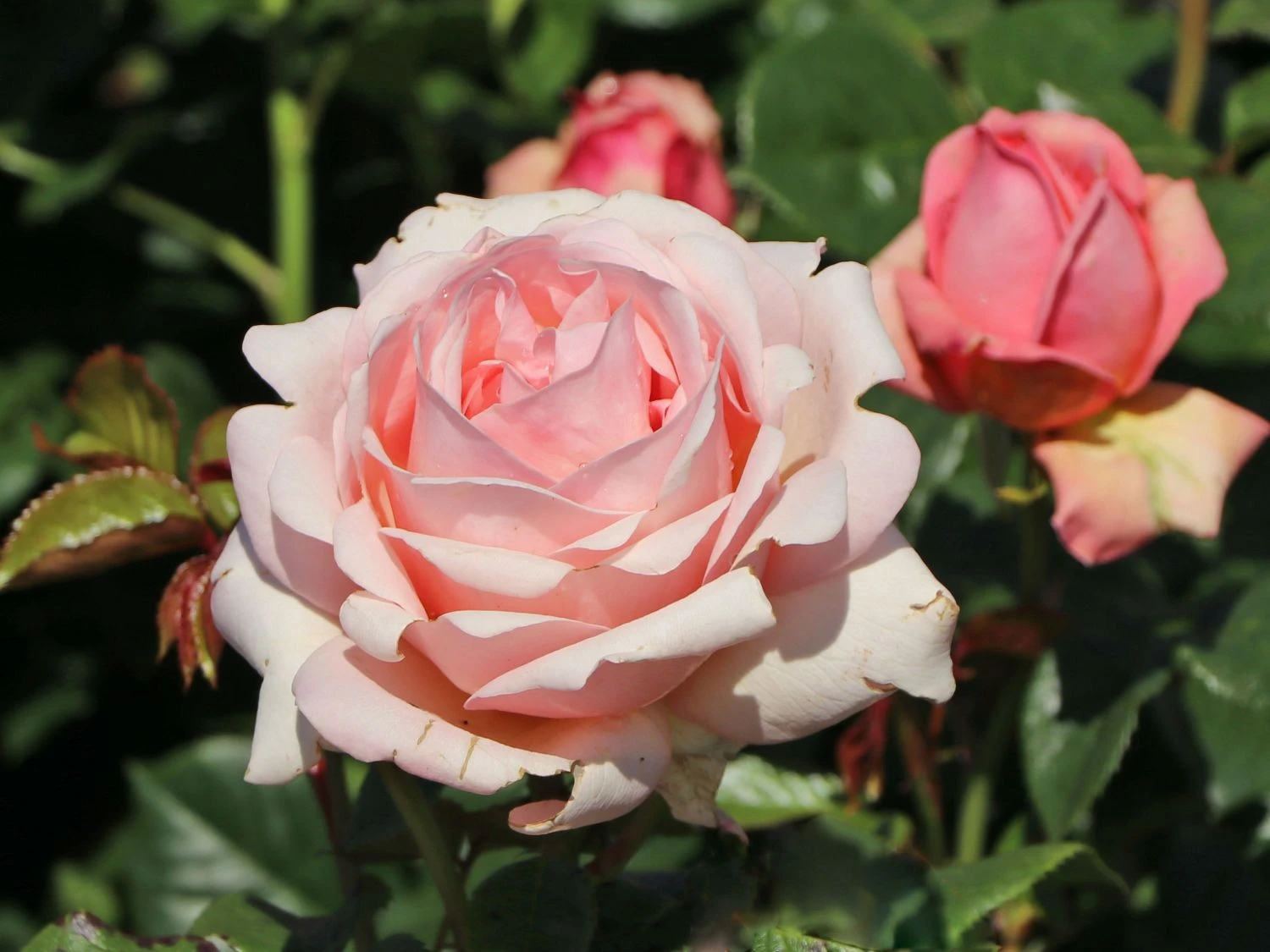 Die Edelrose ‚Aphrodite‘ ® bezaubert mit ihren nostalgischen, auffällig großen Blüten. Die schalenförmigen, geviertelten Blüten in cremigem Rosa erreichen eine Größe von 10 bis 12 cm und sind stark gefüllt. Die Blüten von (bot.) Rosa ‚Aphrodite‘ ® sind regenfest und lange haltbar. Sie setzen sich schon aus der Ferne optisch sehr schön von dem dunkelgrünen, gezahnten und leicht glänzenden Laub ab. Abgerundet wird das Gesamtbild der Edelrose ‚Aphrodite‘ ® durch den zarten und angenehm würzigen Duft.