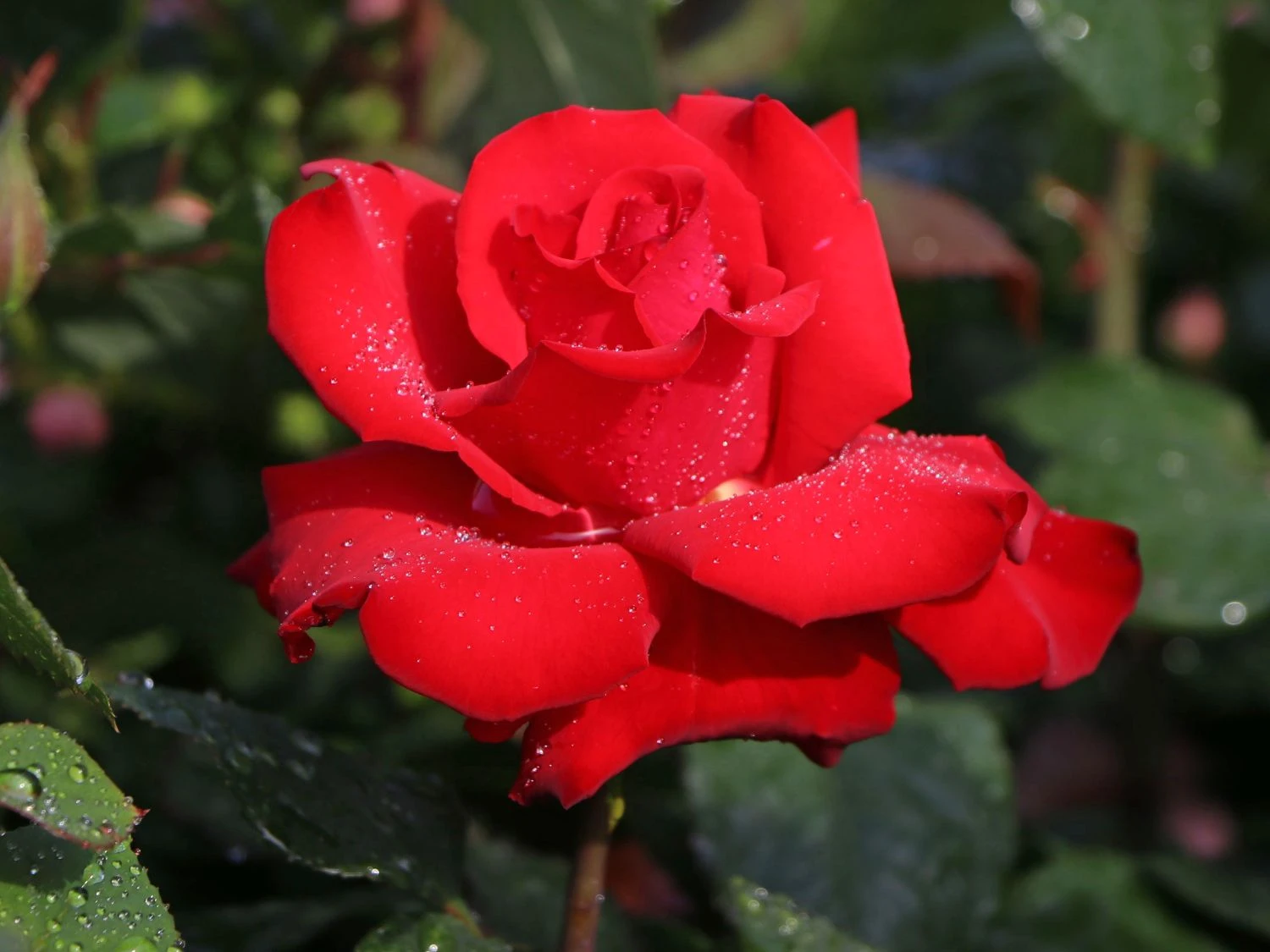 Optische Höhepunkte setzt Rosa ‚Grande Amore‘ ® in Kübeln auf Balkonen und Terrassen. Hervorragende Bedingungen findet die Pflanze in tiefgründigen und nährstoffreichen Böden. Die Erde rund um die Wurzeln ist am besten frisch bis feucht und gut durchlässig. Dünger braucht die schöne Edelrose ‚Grande Amore‘ ® zweimal im Jahr. Die erste Gabe erfolgt im März. Kompost oder Hornspäne sind eine gute Wahl. Ende Mai, spätestens im Juli, legt der Gärtner einen Rosendünger nach. Mit dem richtigen Schnitt sorgt der Rosenfreund für die beste Pflege der Edelrose ‚Grande Amore‘ ®. Über den Sommer hinweg entfernt der Gärtner regelmäßig abgeblühte Knospen und vertrocknete Blätter. Das regt die Pflanze zur kräftigen Nachblüte an. Im Herbst bekommt die Pflanze ihren Winterschutz. Die Erde rund um die Pflanze ist auf bis zu 20 Zentimeter anzuhäufeln. Optimal ist Reisig oder trockenes Laub. Im frostfreien Frühjahr entfernt der Gärtner diesen Schutz. Rosa ‚Grande Amore‘ ® bedankt sich für diese Mühe mit herrlicher Blüte.