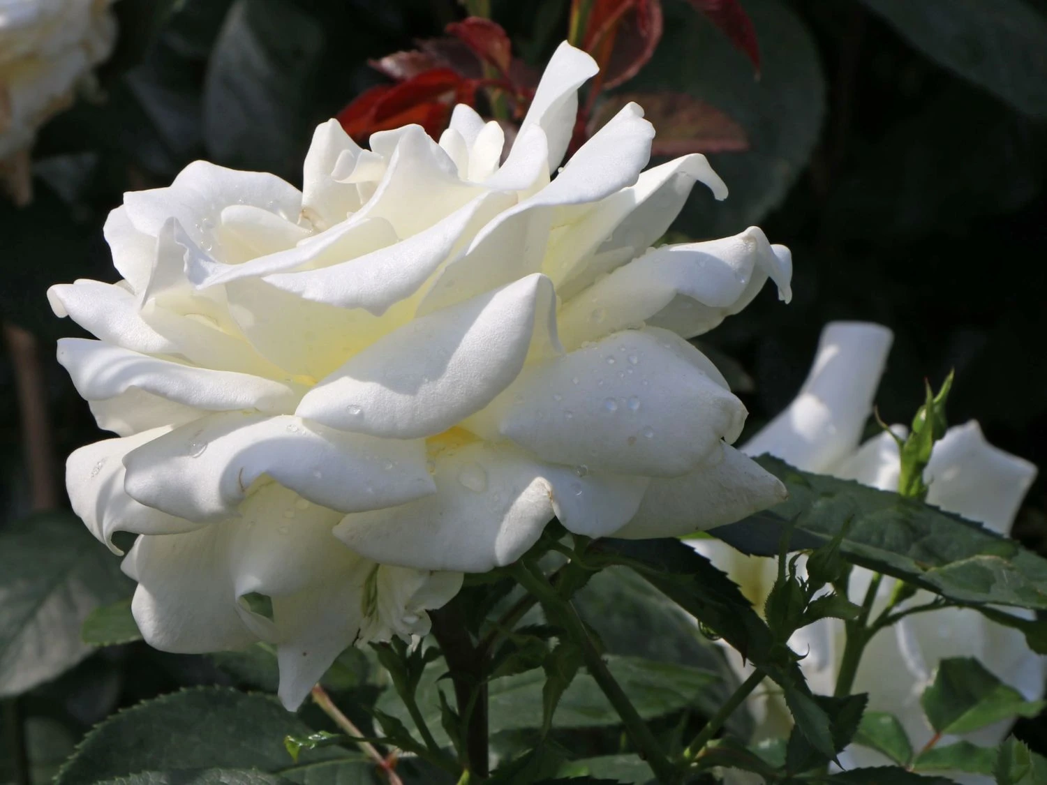 Im Garten wirkt diese Rose als Solitär traumhaft. Mit ihrem buschigen, kräftigen Wuchs empfiehlt sie sich als Blickfang in Beeten und Rabatten. Die Edelrose ‚Memoire‘ ® erreicht eine Wuchshöhe von bis zu 80 cm sowie einen Durchmesser von bis zu 50 cm. In einer Gruppe von bis zu fünf Pflanzen pro Quadratmeter erstrahlt das weiße Blütenmeer als Mittelpunkt des Gartens. Bereits im Juni erblüht Rosa ‚Memoire‘ ® und die Pflanze zeigt sich bis in den September hinein sehr blühwillig. Das dunkelgrüne, glänzende Laub setzt sich optisch kontrastreich von den romantisch-eleganten Blüten der Edelrose ‚Memoire‘ ® ab. Dieses aparte Ziergehölz bevorzugt kalkarme, durchlässige und nährstoffreiche Böden. An einem sonnigen Standort ist die Rose gut aufgehoben.