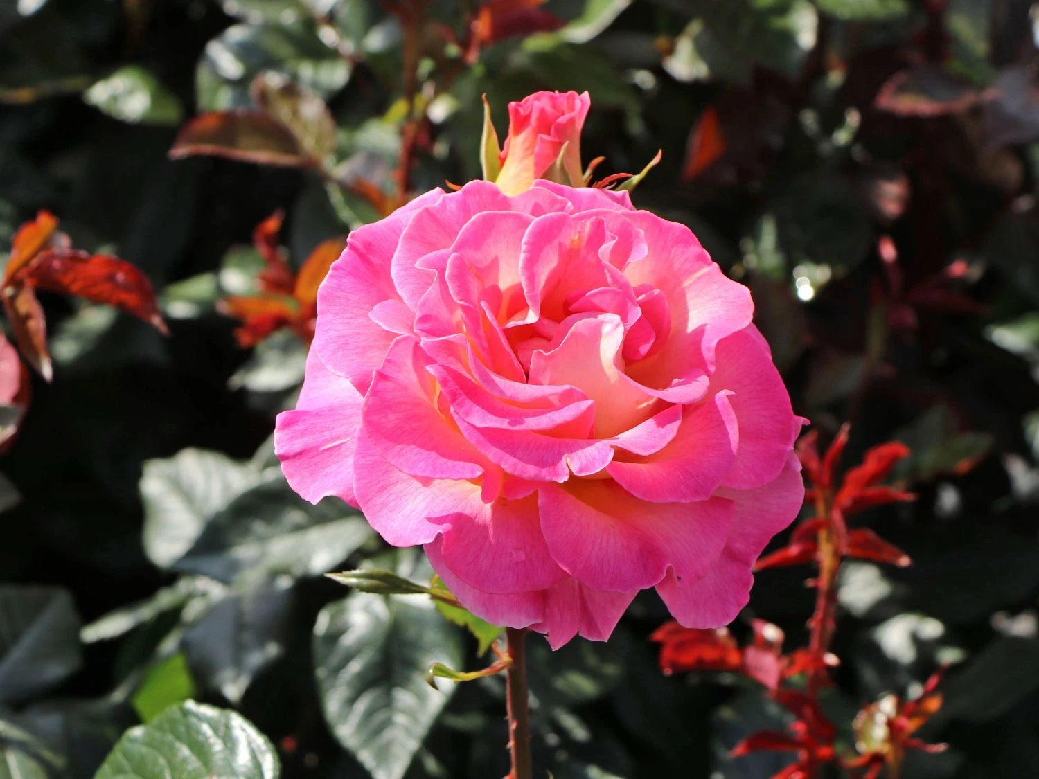 Die Edelrose ‚Pink Paradise‘ ist eine wundervolle Pflanze mit prächtige Blüten in einem intensiven Pink. Die Pflanze begeistert mit ihrem außergewöhnlichen Aussehen und einem betörenden Duft. Die Blüten der Edelrose leuchten in einem kräftigen Pink, das sich zur Mitte hin in ein feuriges Orange bis helles Gelb verwandelt. Das gesunde und kräftige Blattwerk von (bot.) Rosa ‚Pink Paradise‘ ADR-Rose schafft dank der dunkelgrünen Farbe optisch einen schönen Kontrast zu der auffälligen Farbe der Blüten. Die Edelrose verströmt einen starken Duft, der sich besonders bei strahlendem Sonnenschein an warmen Tagen optimal entfaltet. Von Juni bis Oktober lässt es sich an dem farbenfrohen Spektakel der blühenden Edelrose ‚Pink Paradise‘ erfreuen. Die Blüten der winterharten Pflanze bleiben bis zu den ersten leichten Frösten erhalten. Auch diversen Krankheiten tritt die Pflanze mit Widerstandskraft entgegen.