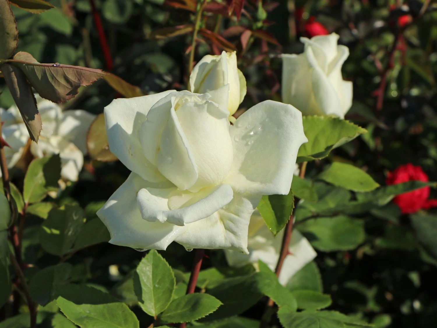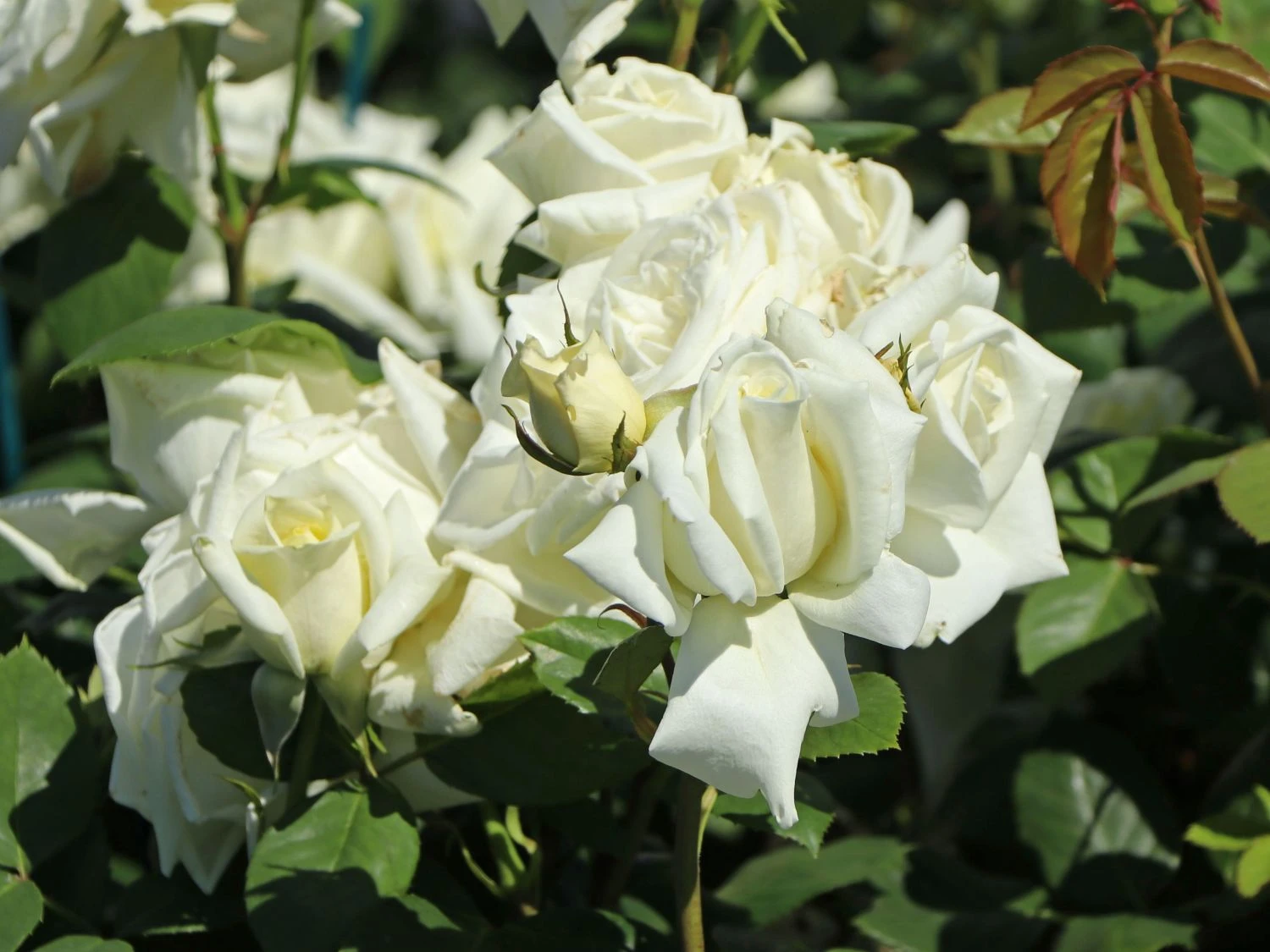 An sonnigen Standorten entwickelt die Edelrose ‚Polarstern‘ ® ihr volles Potenzial. In halbschattiger Lage lässt die Blühfreude gegebenenfalls etwas nach. Als Untergrund wünscht sich das Gewächs einen lockeren, durchlässigen sowie mit Humus und Nährstoffen durchsetzten Boden. Für gesundes Wachstum empfiehlt sich regelmäßiges Gießen. Staunässe ist jedoch zu vermeiden. Im Freiland reichen die natürlichen Niederschläge für gewöhnlich aus. Lediglich längere Trockenperioden verlangen nach zusätzlichen Wassergaben. Rosa ‚Polarstern‘ ® erfreut Gartenbesitzer, die das elegant angehauchte Ambiente eines ausschließlich mit weißen Blüten bestückten Grünareals lieben. Andererseits fügt sich die Pflanze hervorragend in ein buntes Vielerlei ein. Zu der Edelrose ‚Polarstern‘ ® passen Lavendel, Salbei, Indianernessel, Prachtkerze und Phlox.