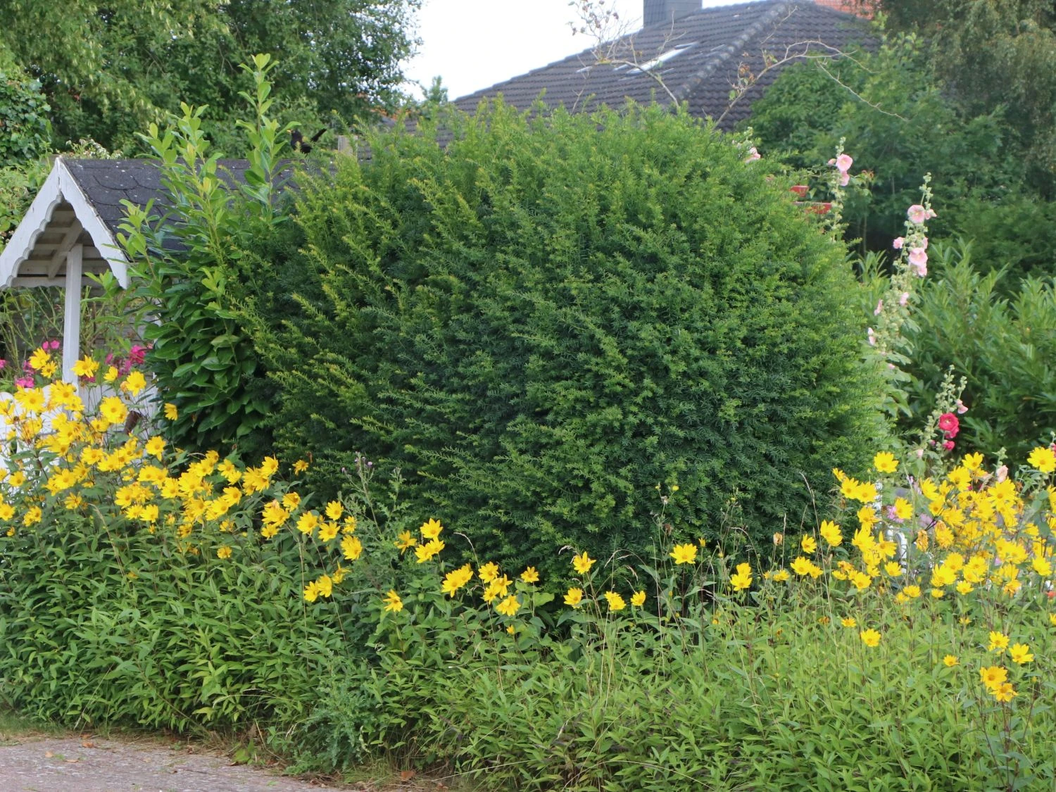 Die Eibe ist eine immergrüne Heckenpflanze und kommt an schwierigen Standorten gut zurecht. Die Eiben sind schon immer wegen ihrer hervorstechenden Eigenschaften beliebte Formgehölze. In größeren und kleineren Gartenanlagen kamen die (bot.) Taxus baccata zum Einsatz. Ohne in Form geschnittene Eiben sind königliche Schlösser oder Barockgärten nicht vorstellbar. Immer schon waren diese pflegeleichten Nadelbäume in Privatgärten als absolut blickdichte Hecken geschätzt. Relativ schnell erreicht die Europäische Eibe eine Höhe von zwei bis drei Meter. Jährlich legt sie zwanzig bis dreißig Zentimeter an Umfang und Höhe zu. In der Breite erreicht sie 70 bis 150 Zentimeter. Ohne Schnitt wird die Eibe 10 bis 15 Meter hoch. Die immergrüne Pflanze zeigt sich absolut anspruchslos. Sie genießt ihr Leben ebenso in der Sonne wie im Schatten. Auch an den Boden stellt sie keine besonderen Ansprüche. Nur Staunässe ist zu vermeiden. Die Taxus baccata zeigt eine vielseitige Art, die sich andere Nadelhölzer wünschen. Sie eignet sich solitär gestellt als frei wachsender Baum, als wunderschöne Hecke und für jegliche Arten von Formschnitten. Seit Jahrhunderten ist die Eibe in der Gartenkultur allgegenwärtig. Die Eibe zieht einen halbschattigen bis schattigen Platz einem sonnigen Standort vor. Trotz ihrer Winterhärte leiden Eiben in schneearmen, bitterkalten Wintern. Die Wintersonne und austrocknende Ostwinde setzen den schönen Gehölzen zu. Der Gärtner schneidet in solchen Fällen die vertrockneten Triebe heraus. Die Eibe erholt sich schnell davon.