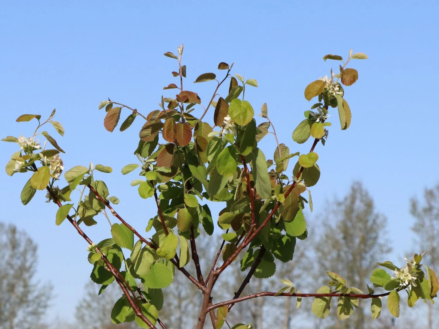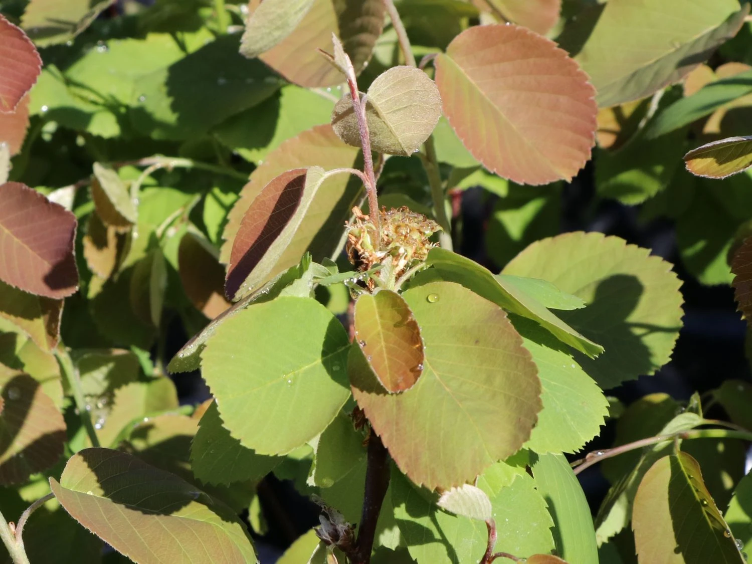 Diese tolle Sorte der Felsenbirne ist gut fruchtbar und erfreut durch ihre frühe Blüte. Die köstlichen Früchte der Erlenblättrigen Felsenbirne ‚Northline‘ bieten sich zum vielfältigen Verwenden in der Küche an. Sie sind für die Leckermäuler zum direkten Verzehr geeignet oder lassen sich weiterverarbeiten. Als straff-aufrecht wachsender und mehrstämmiger Strauch erreicht (bot.) Amelanchier alnifolia ‚Northline‘ eine Höhe von zwei bis vier Metern. Der Durchmesser beläuft sich auf 130 bis 350 Zentimeter. Die laubabwerfende Felsenbirne trägt im Sommer ein grünes Blätterkleid, das sich im Herbst in die schönsten Farben verwandelt. Es schimmert von gelb über orange bis hin ins schönste Rot. Nach dieser farblich spektakulären Zeit, wirft der Zierstrauch seine Blätter zum Winter hin ab.