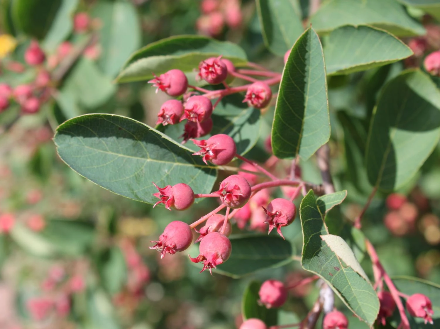 Die Essbare Felsenbirne ‚Ballerina‘ begeistert im Frühjahr als Zierstrauch mit strahlend weißen Blüten und einem bronzefarbenem Laubaustrieb, im Herbst mit leuchtender Laubfarbe. Weniger bekannt ist die (bot.) Amelanchier laevis ‚Ballerina‘ als Obstbaum, dessen süße, essbare Früchte zum Naschen verlocken. Sie bringt nicht nur eine unglaubliche Farbenpracht in den Garten, sie versüßt dem Gärtner das Leben. Verführerisch zeigen sind die leckeren Früchte der Essbaren Felsenbirne ‚Ballerina‘. Nach der Blüte erscheinen kleine, rot-schwarze Beeren zwischen den Blättern. Mit ihrem Kirsch-Mandel-Aroma verführen die erntereifen Früchte im Juli zum Naschen. Mit ihrer leicht weichen Konsistenz, wandern sie vom Strauch direkt in den Mund. Ihr Genuss verlängert sich durch das Verarbeiten der vitaminreichen Beeren zu köstlichen Marmeladen, Säften und Desserts. Auch einheimische Vögel sind von den Früchten der Amelanchier laevis ‚Ballerina‘ begeistert. Wer von den leckeren Früchten profitieren möchte, hüllt die Felsenbirne in ein Vogelschutznetz ein.