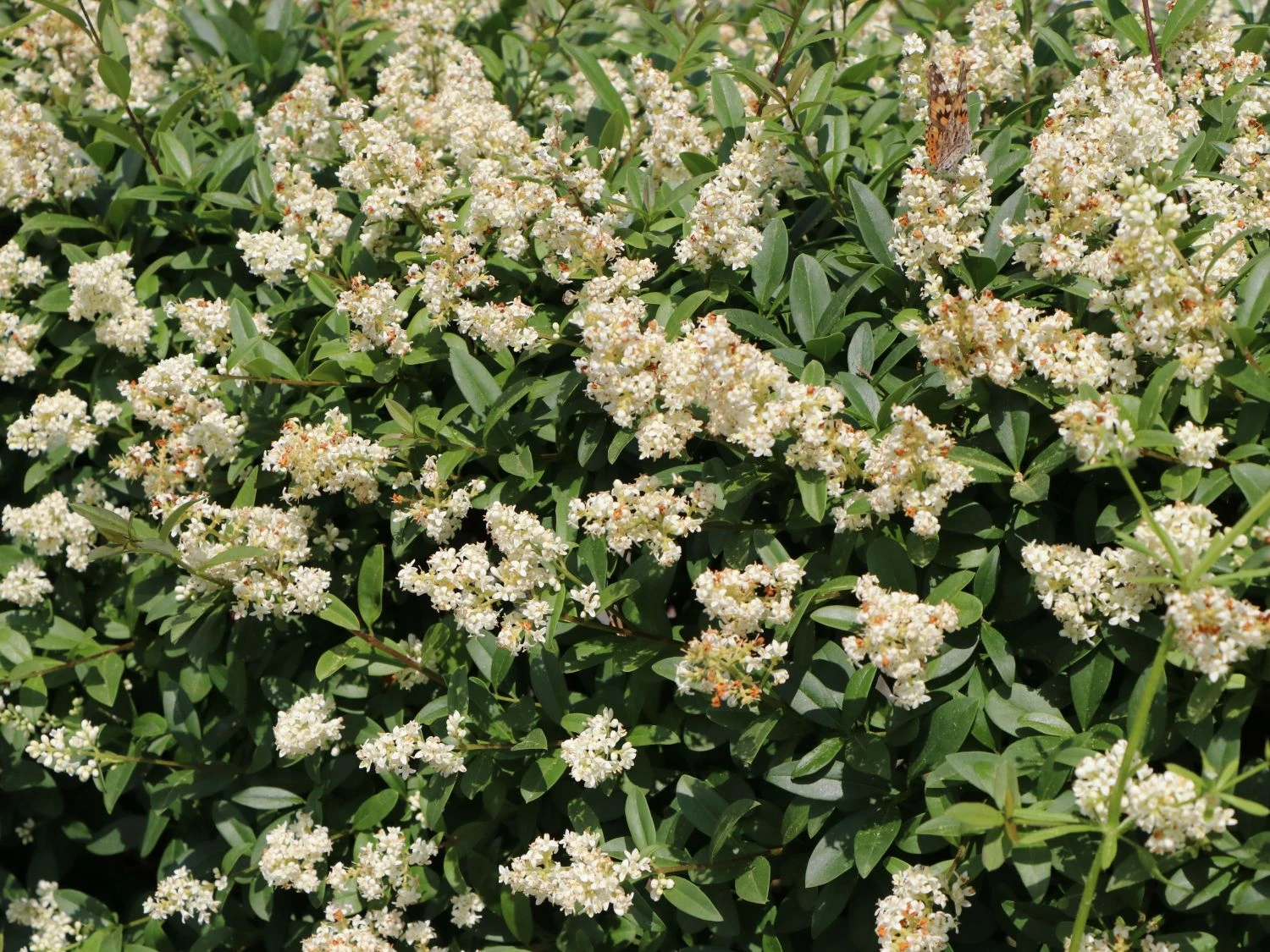 Aus diesem schnell wachsenden Liguster lassen sich natürliche Grundstücks- und Gartengrenzen formen. In unterschiedlichsten Wuchsformen begegnet uns der Ligustrum vulgare. Zu einem straff-aufrechten Großstrauch entwickelt er sich an einem freien Standort. Kleiner bleibt er im Schatten größerer Gehölze. Mehr in die Breite wachsend, entwickelt er sich hier als dichtes Unterholz. Der Nektar der Ligusterblüten lockt unzählige Fliegen- und Bienenarten in den Garten. Furchenbienen, Sandbienen und verschiedene Arten von Honigbienen nutzen die reichhaltige Pollenquelle. Das gehaltvolle Pollenbuffet ist ganztags im Angebot. Allerdings ist die Bestzeit zwischen sechs und acht Uhr morgens. Auch verschiedene Schmetterlingsarten suchen fröhlich flatternd die duftenden Blüten des Gemeinen Ligusters / Gewöhnlichen Ligusters auf. Etwa 20 Vogelarten und verschiedene Nagetiere sind glücklich über das Angebot der im Herbst reifen Früchte. Oft bis in den Spätwinter hinein, verzehren sie die Beeren. Durch das Ausscheiden erfolgt das natürliche Ausbreiten der Pflanze. Frost fördert das Keimen der Samen.