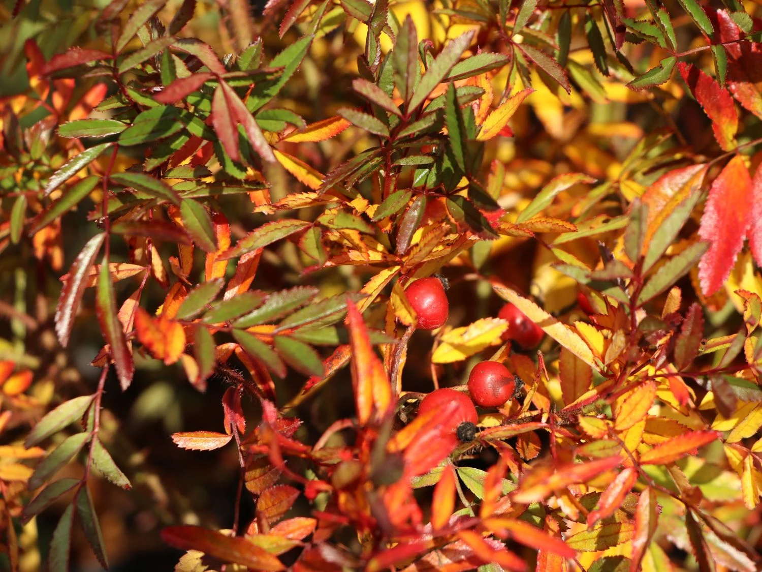 Auch nach der Blütezeit bleibt die Pflanze dekorativ und das schafft sie dank der kleinen scharlachroten, kugeligen Hagebutten, die im Herbst erscheinen. Die Glanzblättrige Rose wird ca. 70 cm hoch und kann dank ihrer Ausläufer gut Hänge und Böschungen befestigen. Wie alle Rosen liebt sie sonnige Standorte mit tiefgründigem, nährstoffreichem Boden.